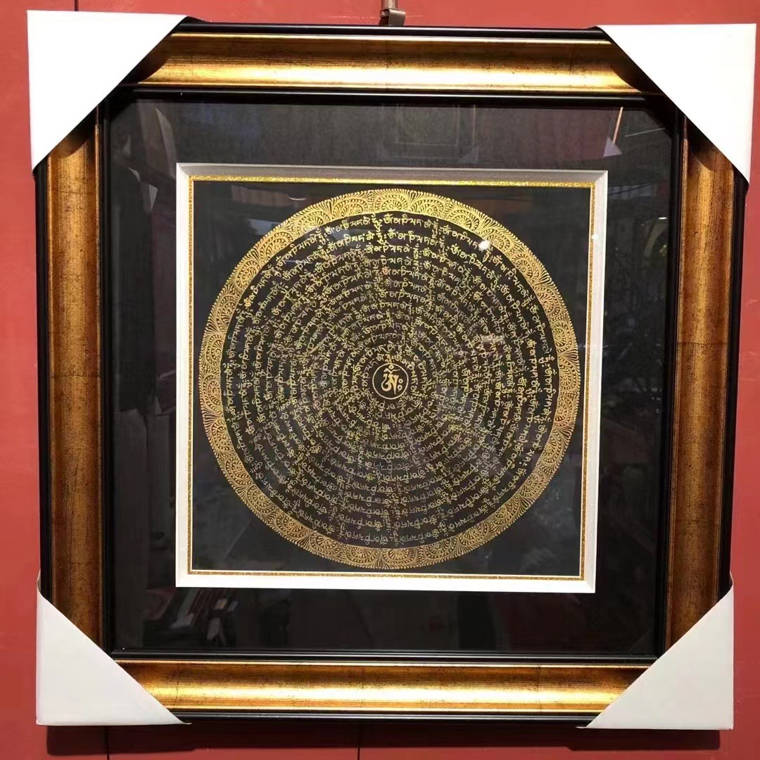 纯手绘彩金六字真言坛城