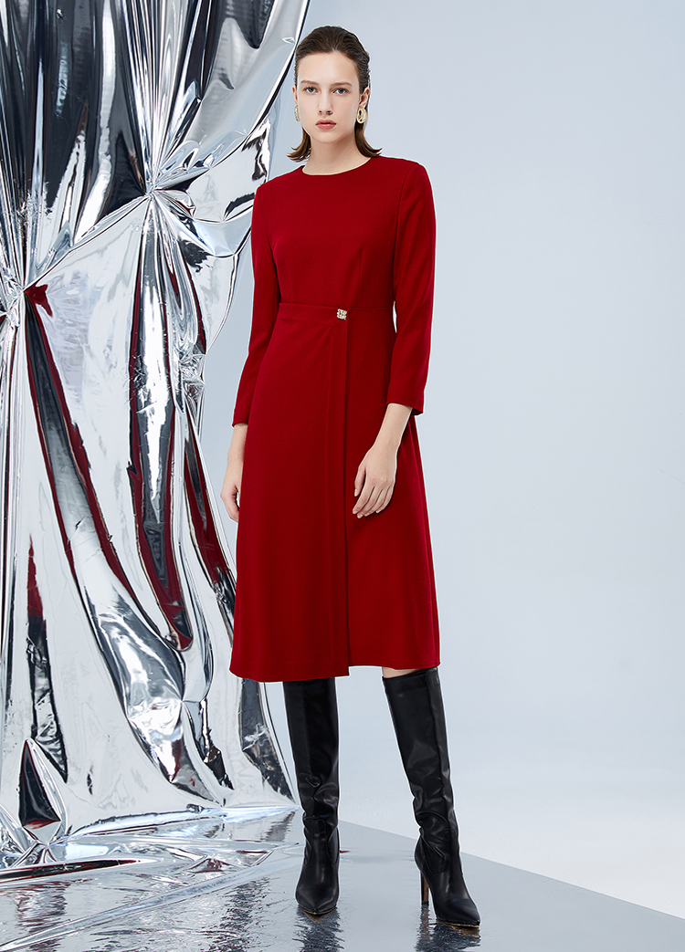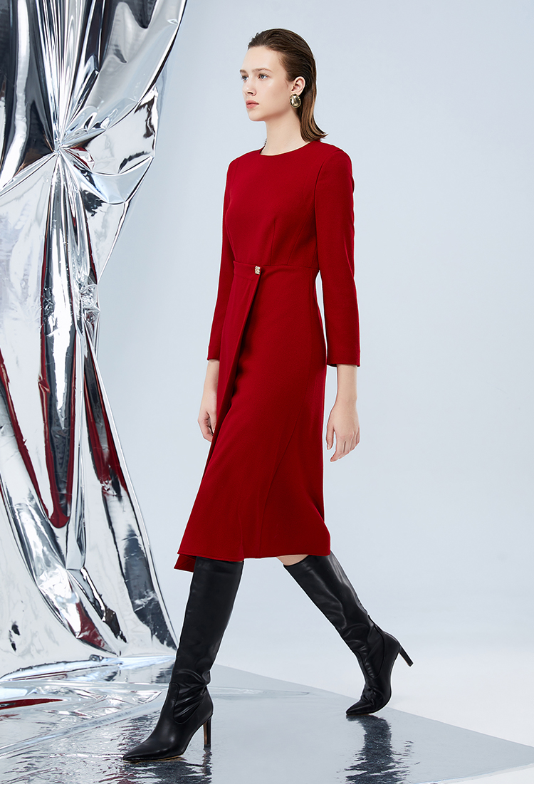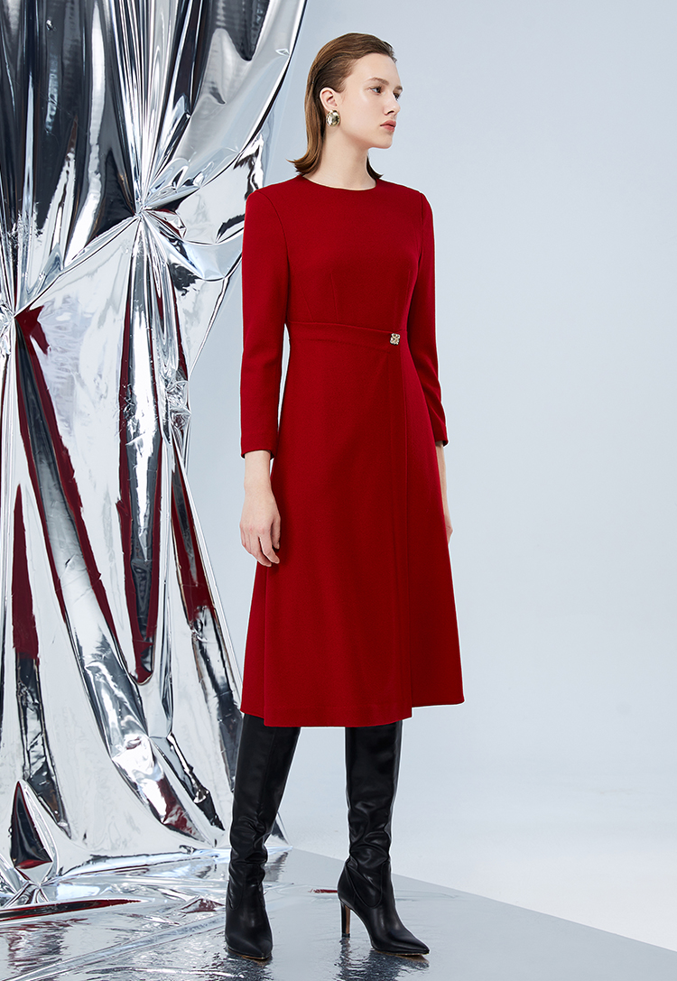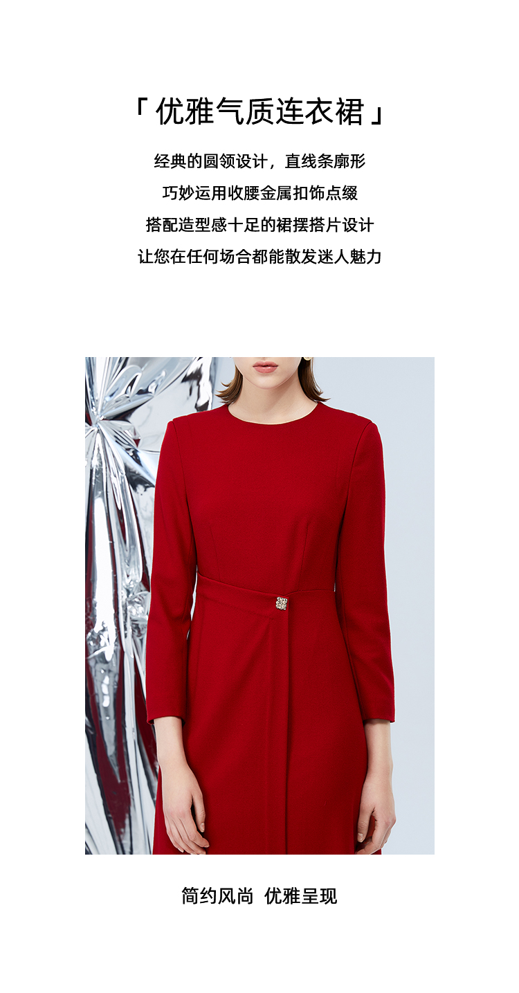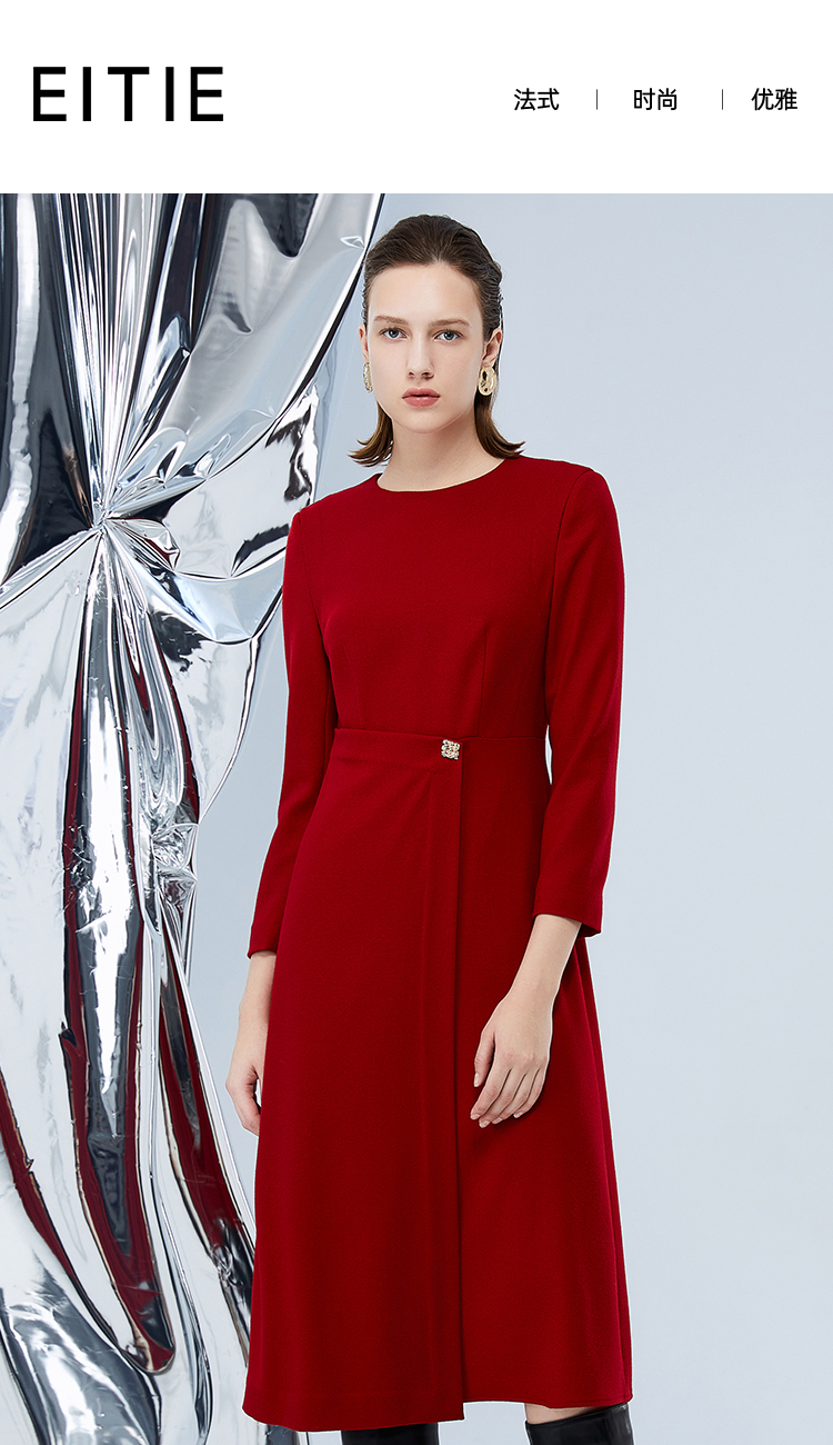 EITIE爱特爱冬季新款腰部精致装饰时尚优雅连衣裙7607303