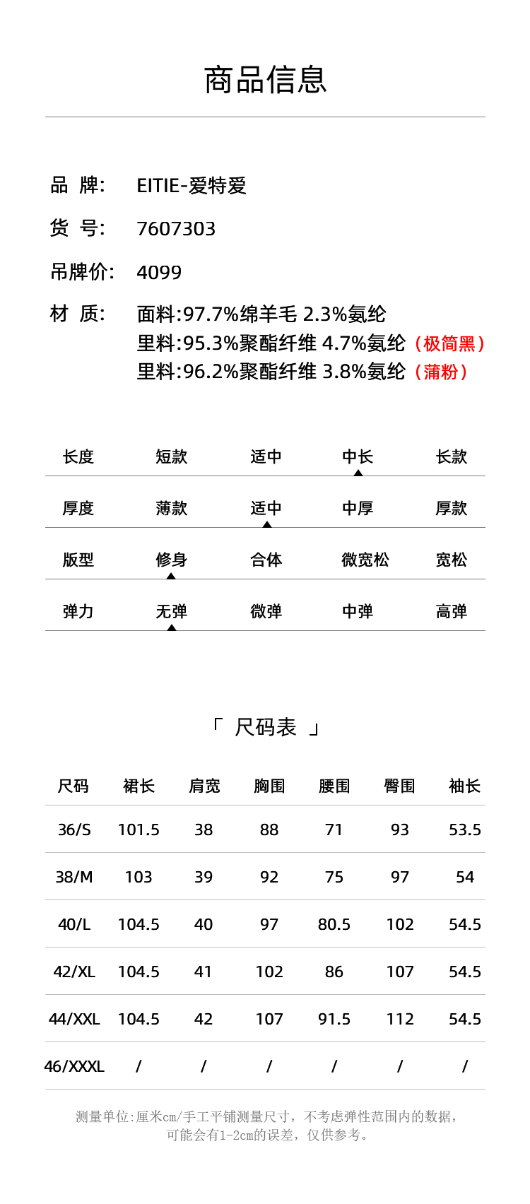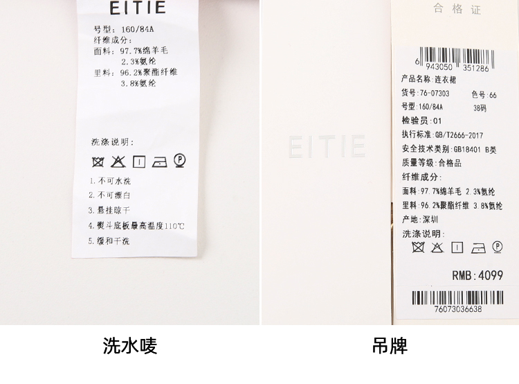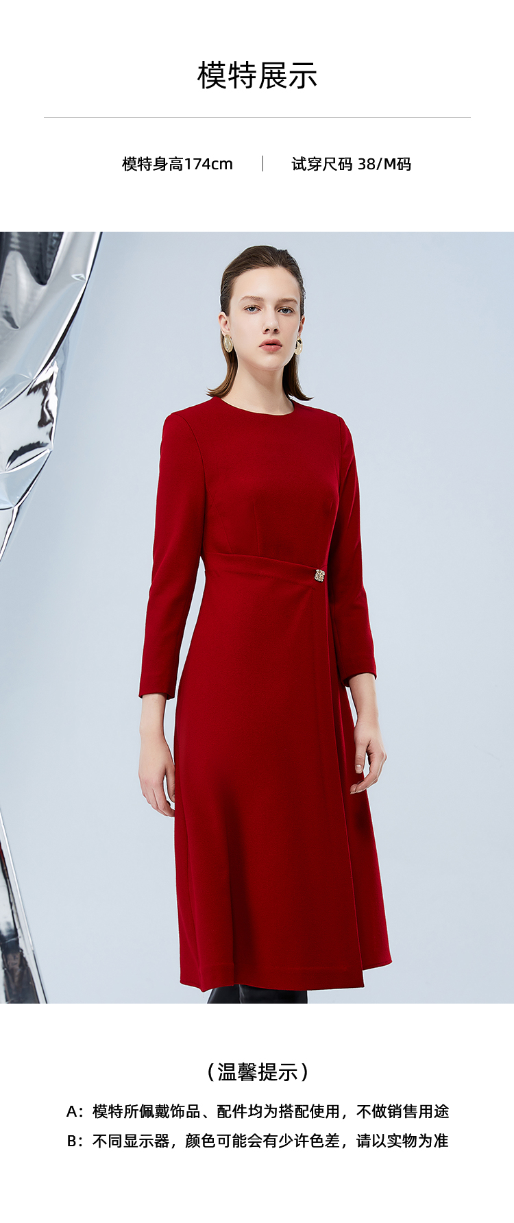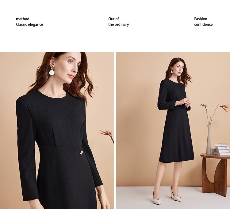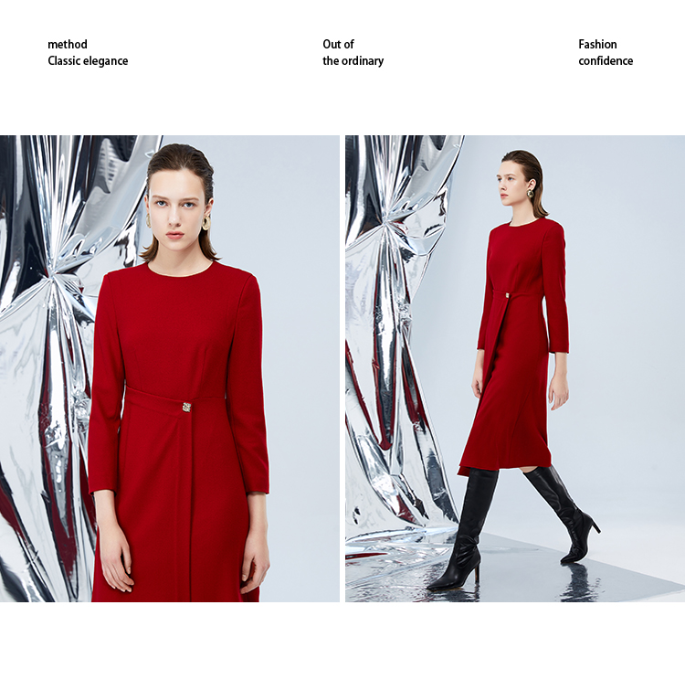 EITIE爱特爱冬季新款腰部精致装饰时尚优雅连衣裙7607303