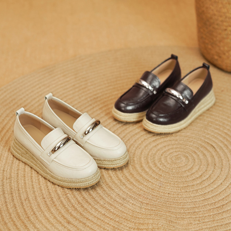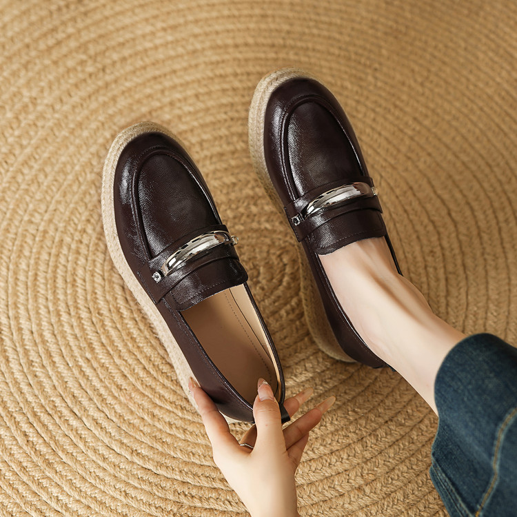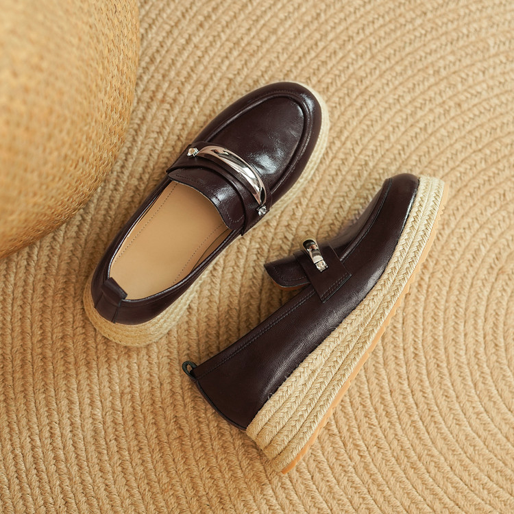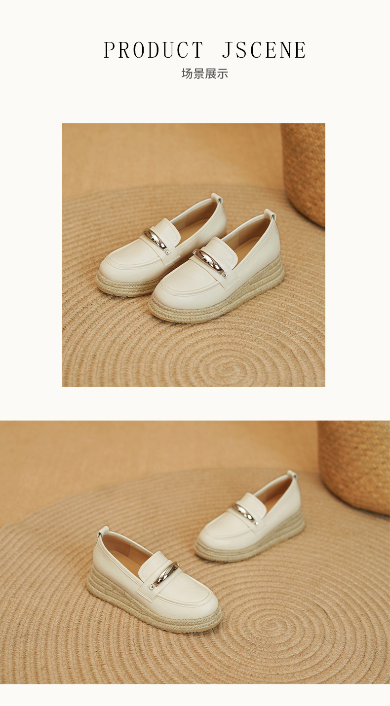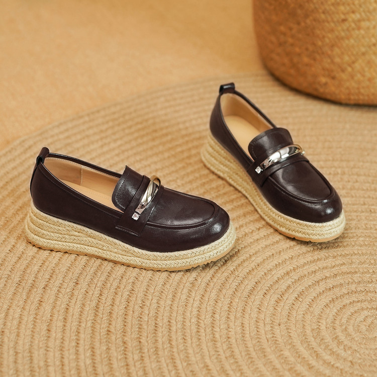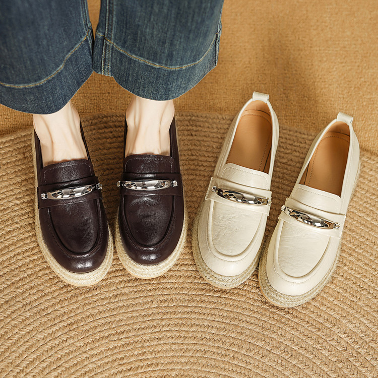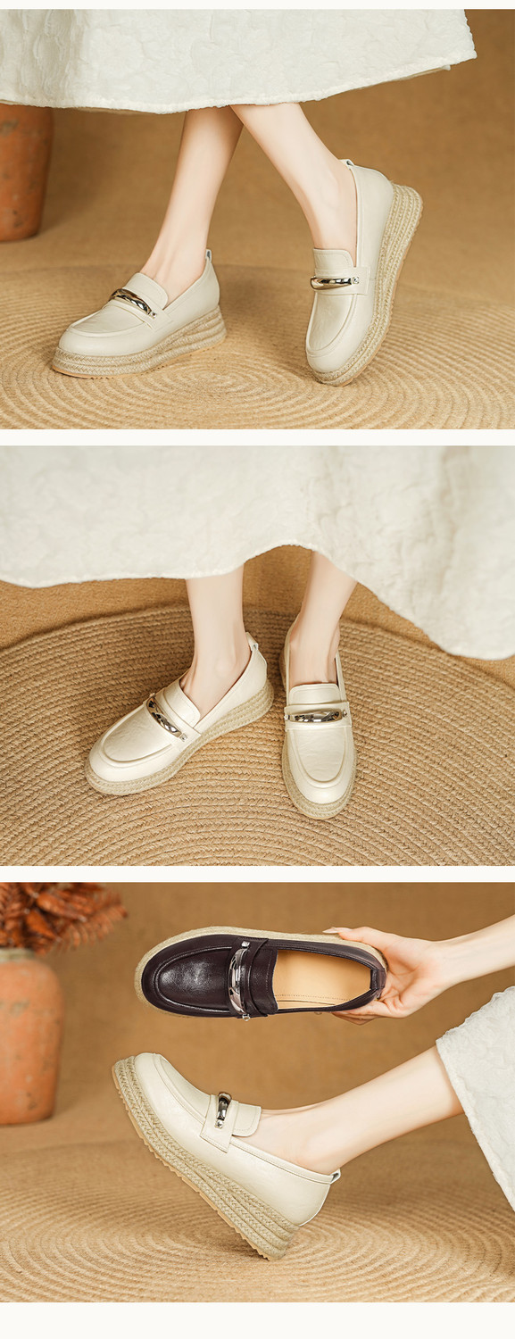 【预售5天】高颜值法式单鞋女深口春秋圆头中跟平底真皮坡跟棕色乐福鞋MLD&AM806