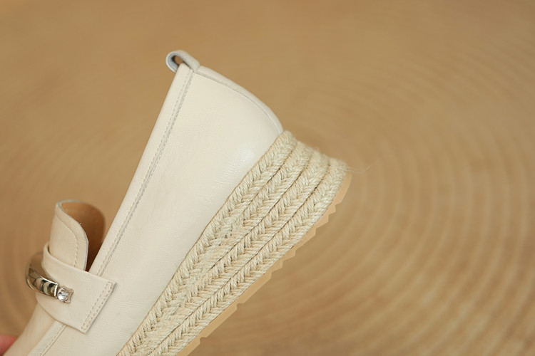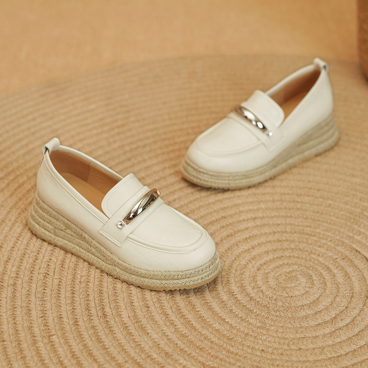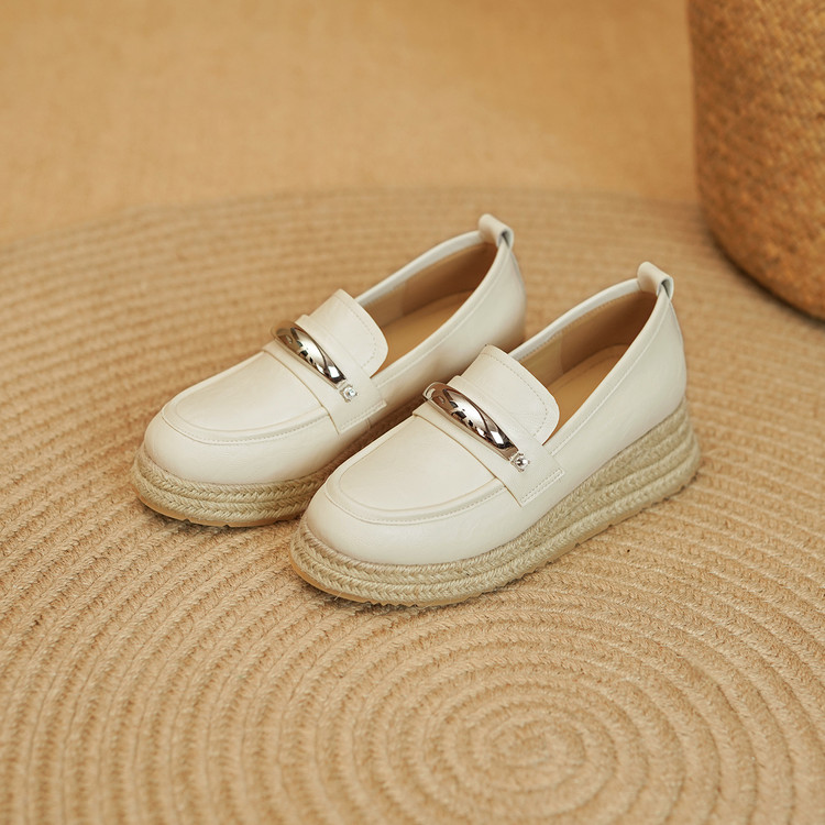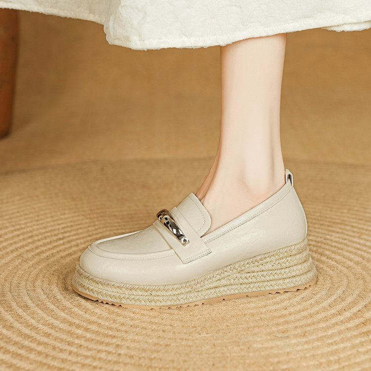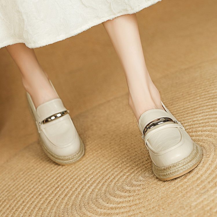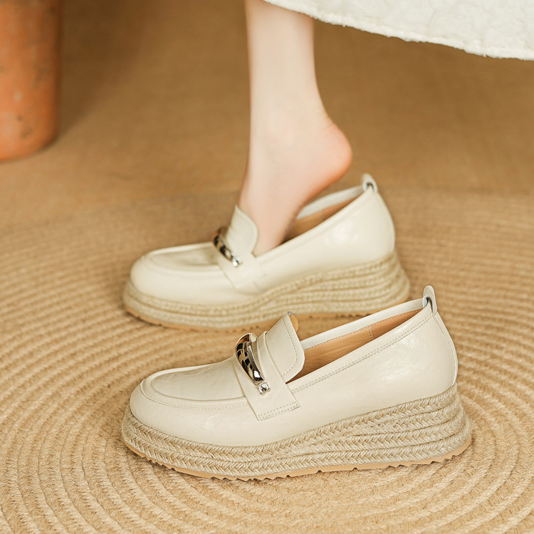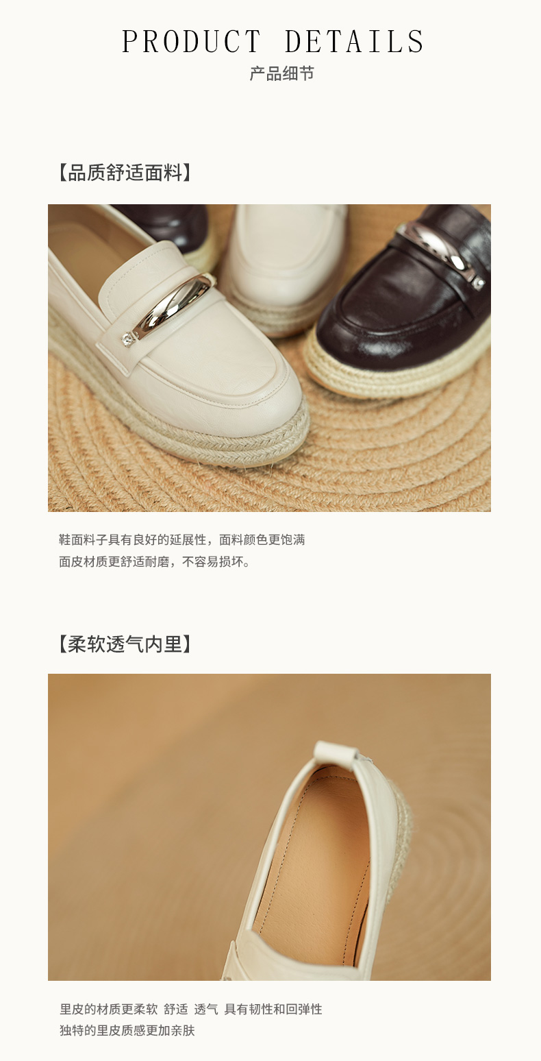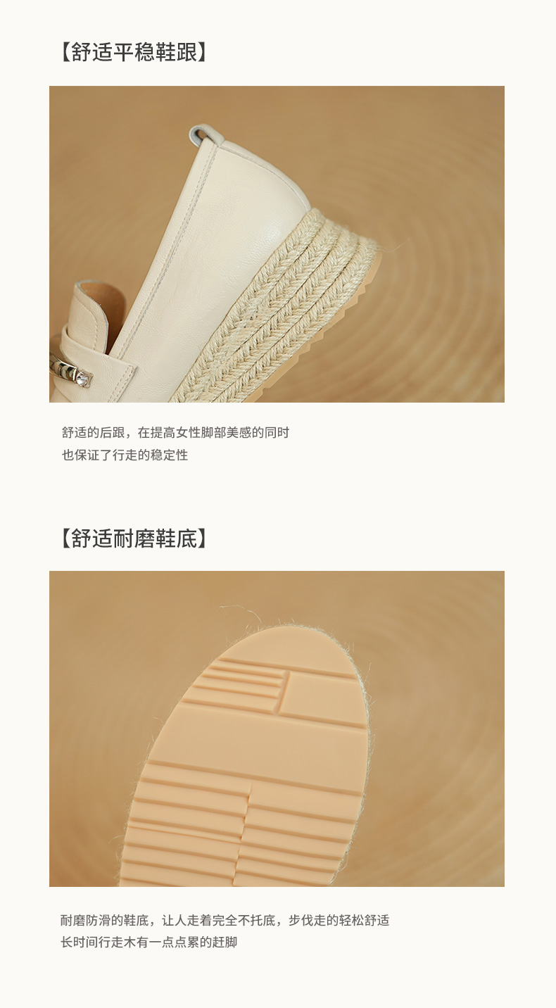 【预售5天】高颜值法式单鞋女深口春秋圆头中跟平底真皮坡跟棕色乐福鞋MLD&AM806