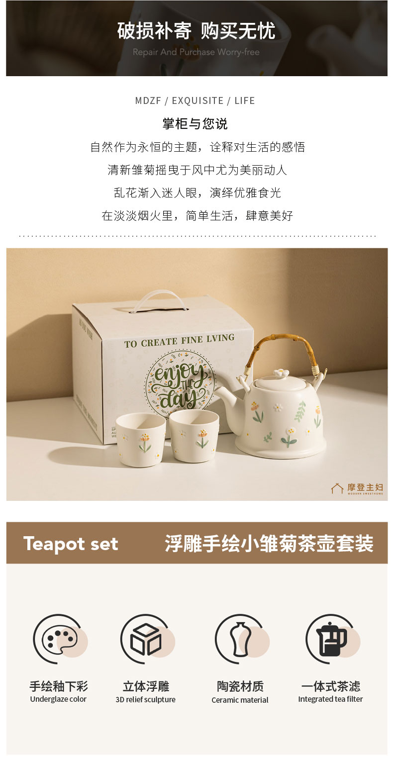 摩登主妇小雏菊泡茶壶套装2024新款结婚礼物伴手礼茶具礼盒煮茶壶
