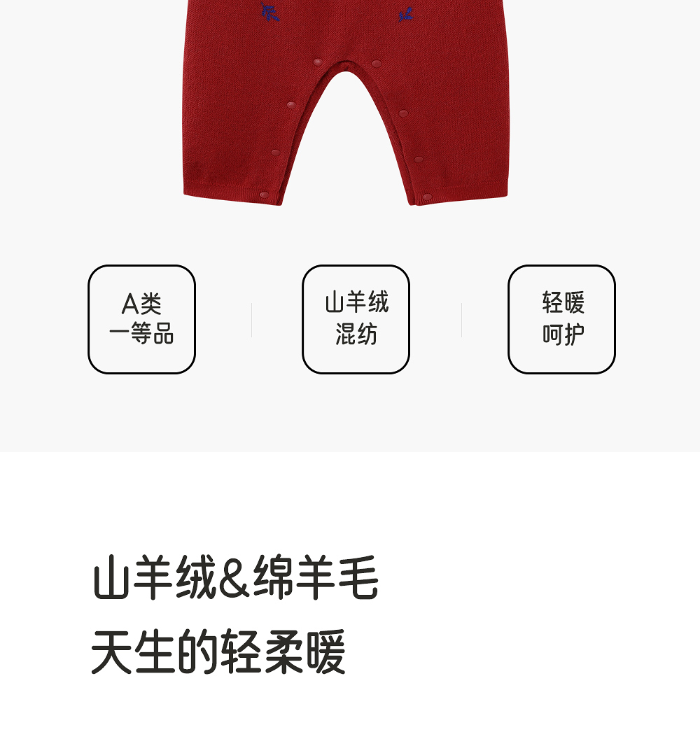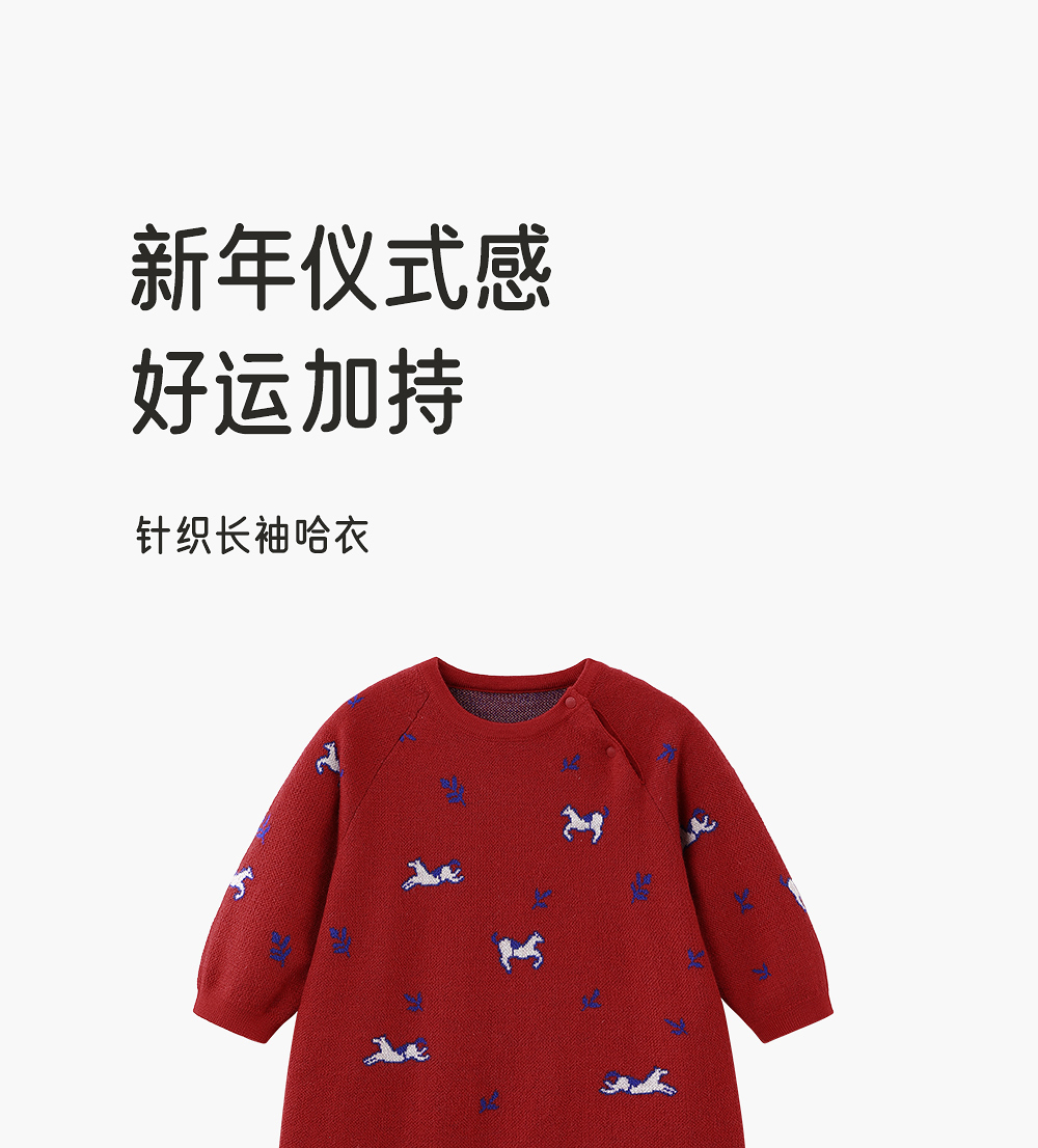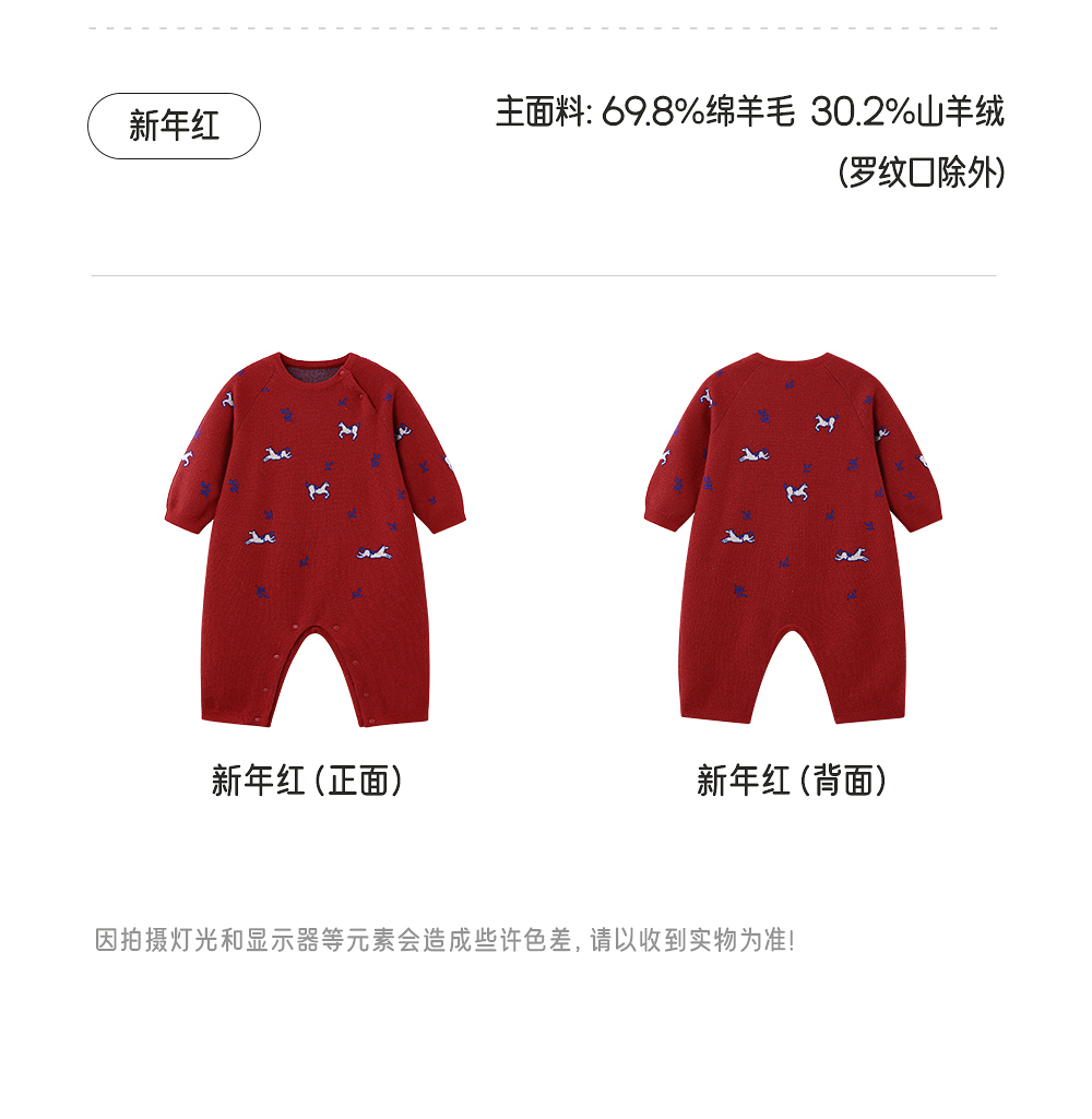 【高定系列】英氏婴儿衣服男童长袖春秋季连身衣新年装喜庆爬爬服