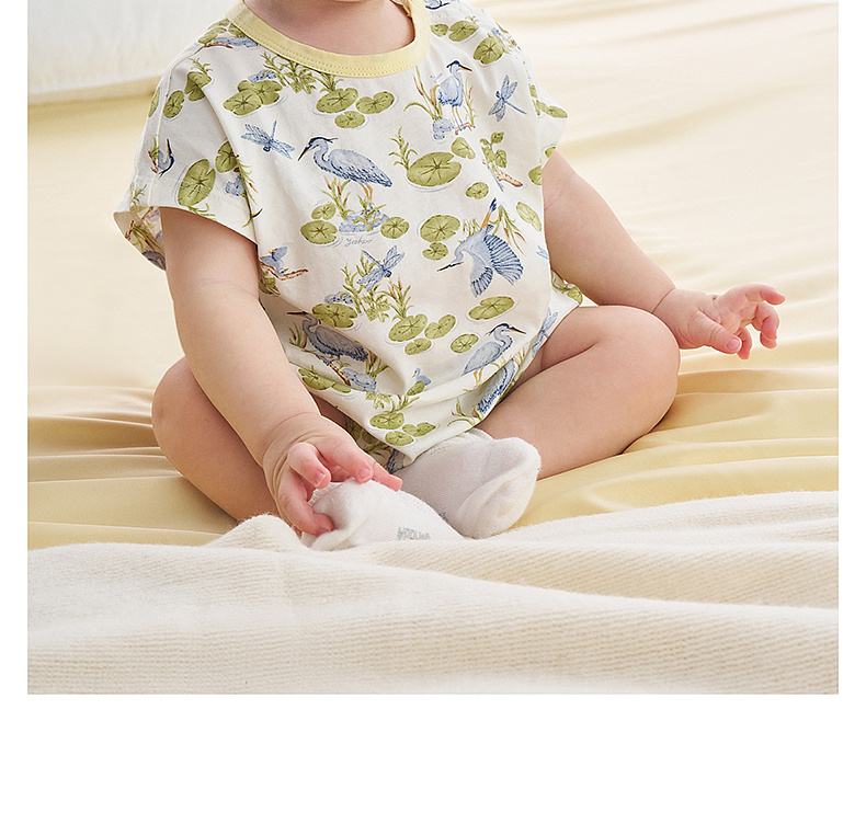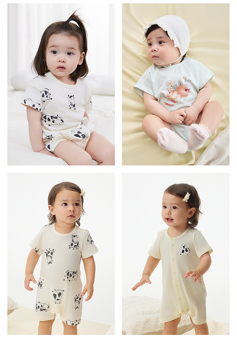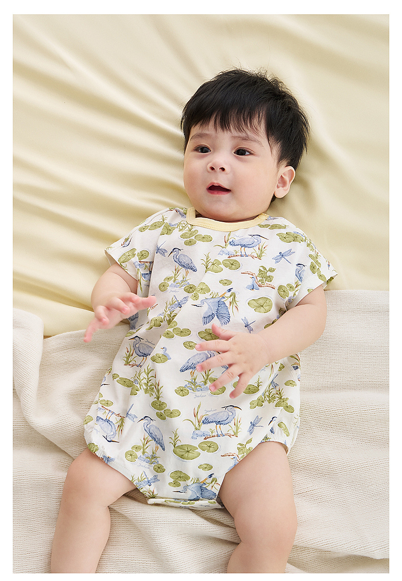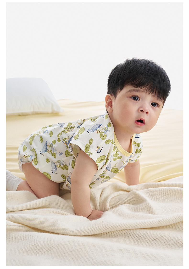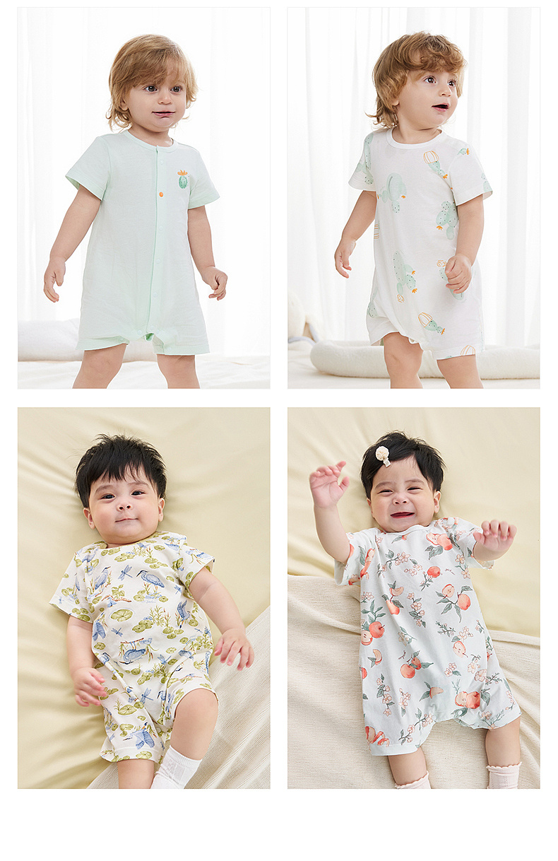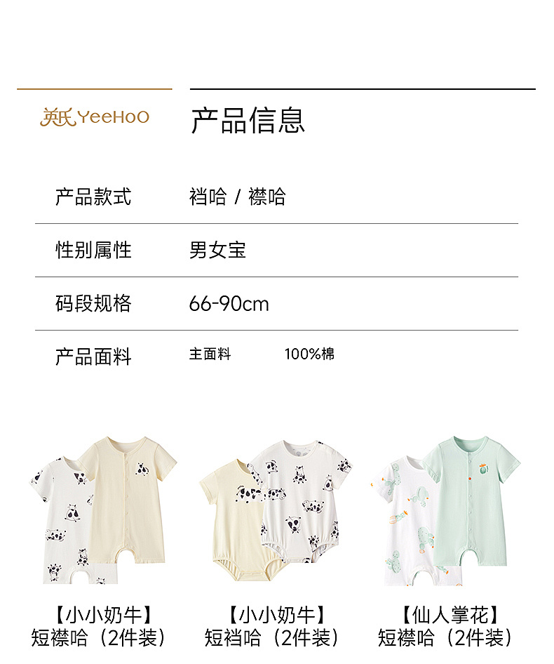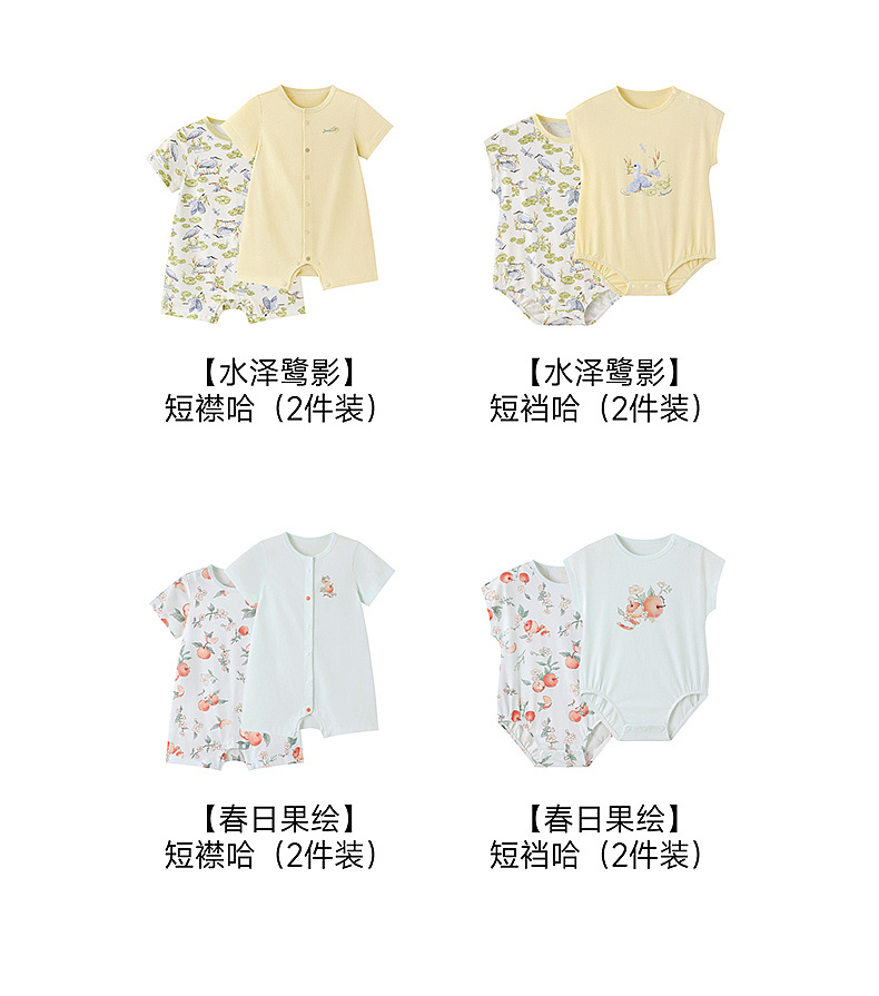 英氏婴儿家居服夏季短袖连身睡衣新生男宝宝女宝宝抗菌哈衣2件装