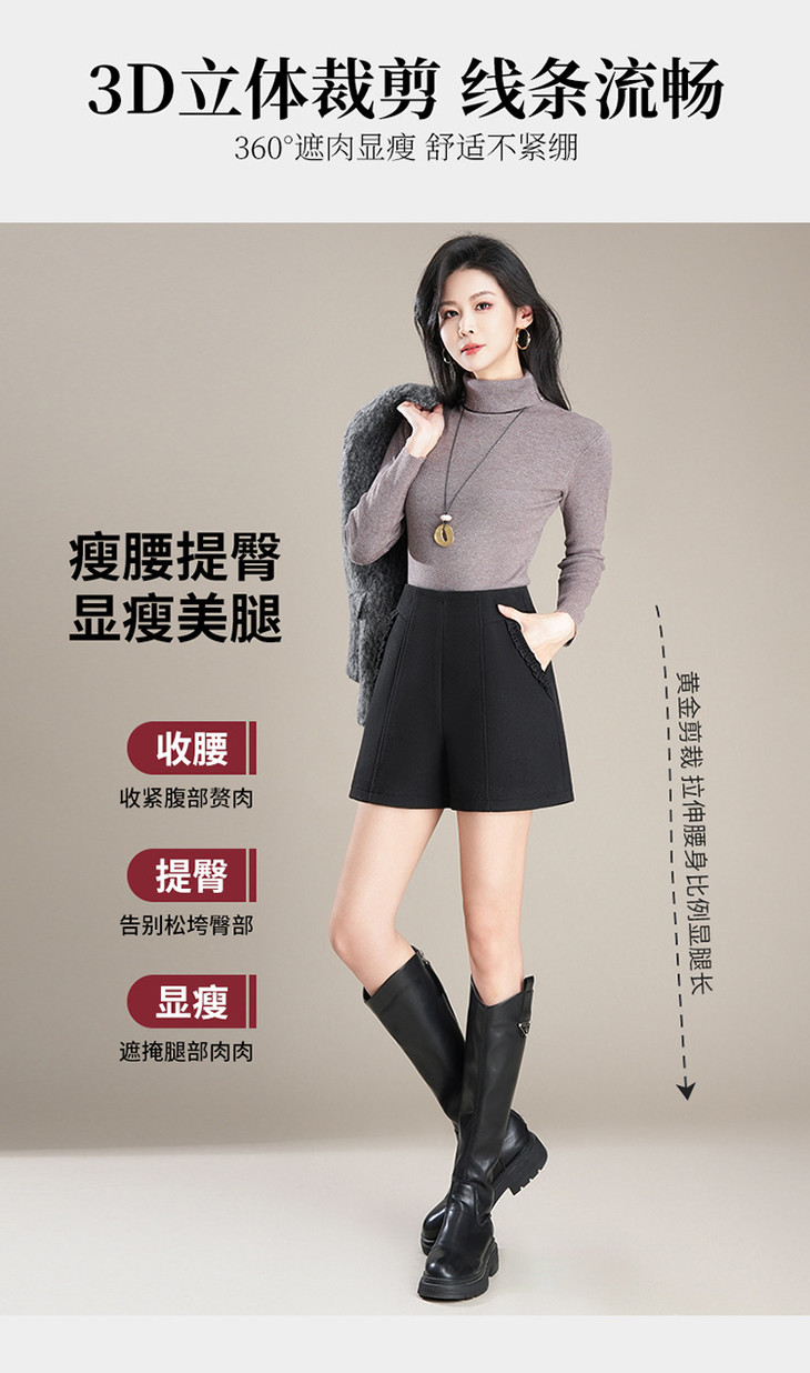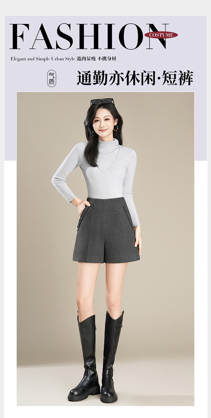 毛呢短裤高腰时尚厚款直筒裤,休闲三分外穿裤靴裤MYX-PH-1617-Y