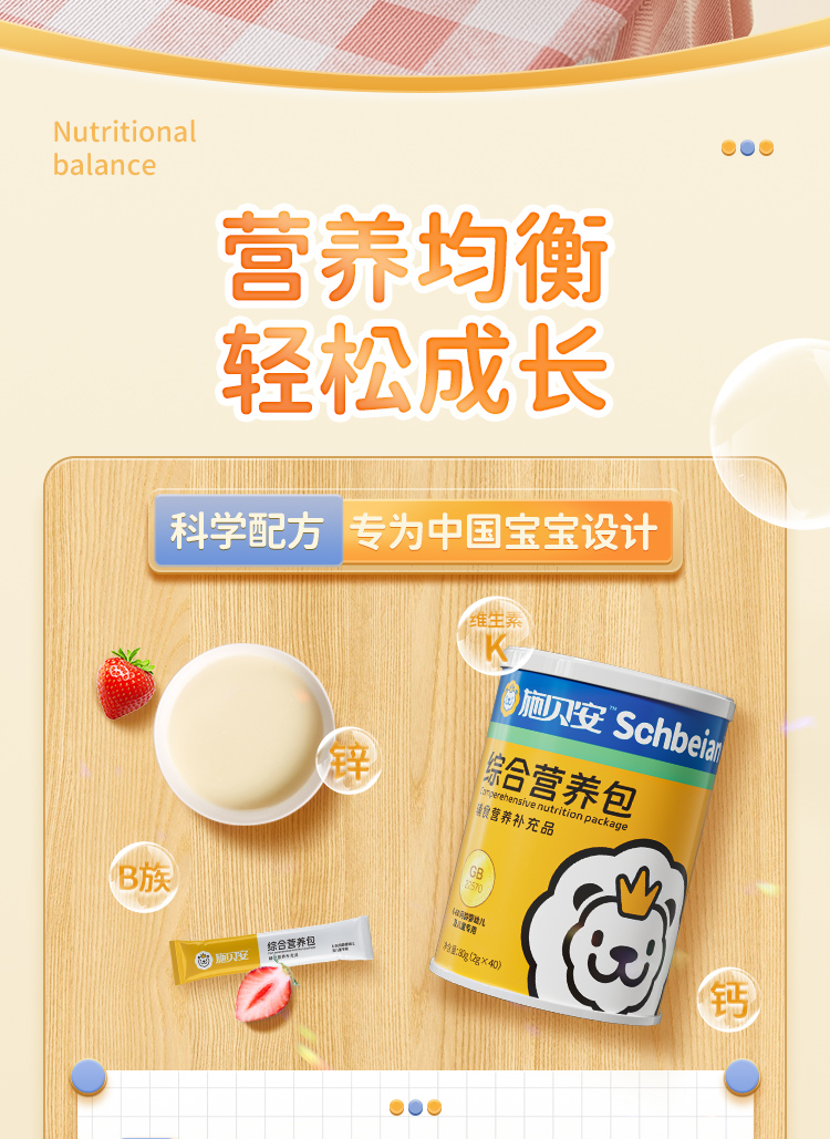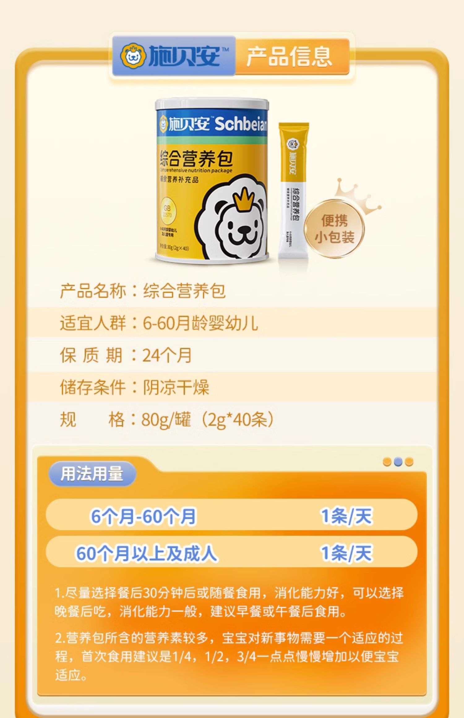 【开团】测评推荐-施贝安综合营养包 钙铁锌维生素 6个月以上的宝宝可食用 40袋/罐