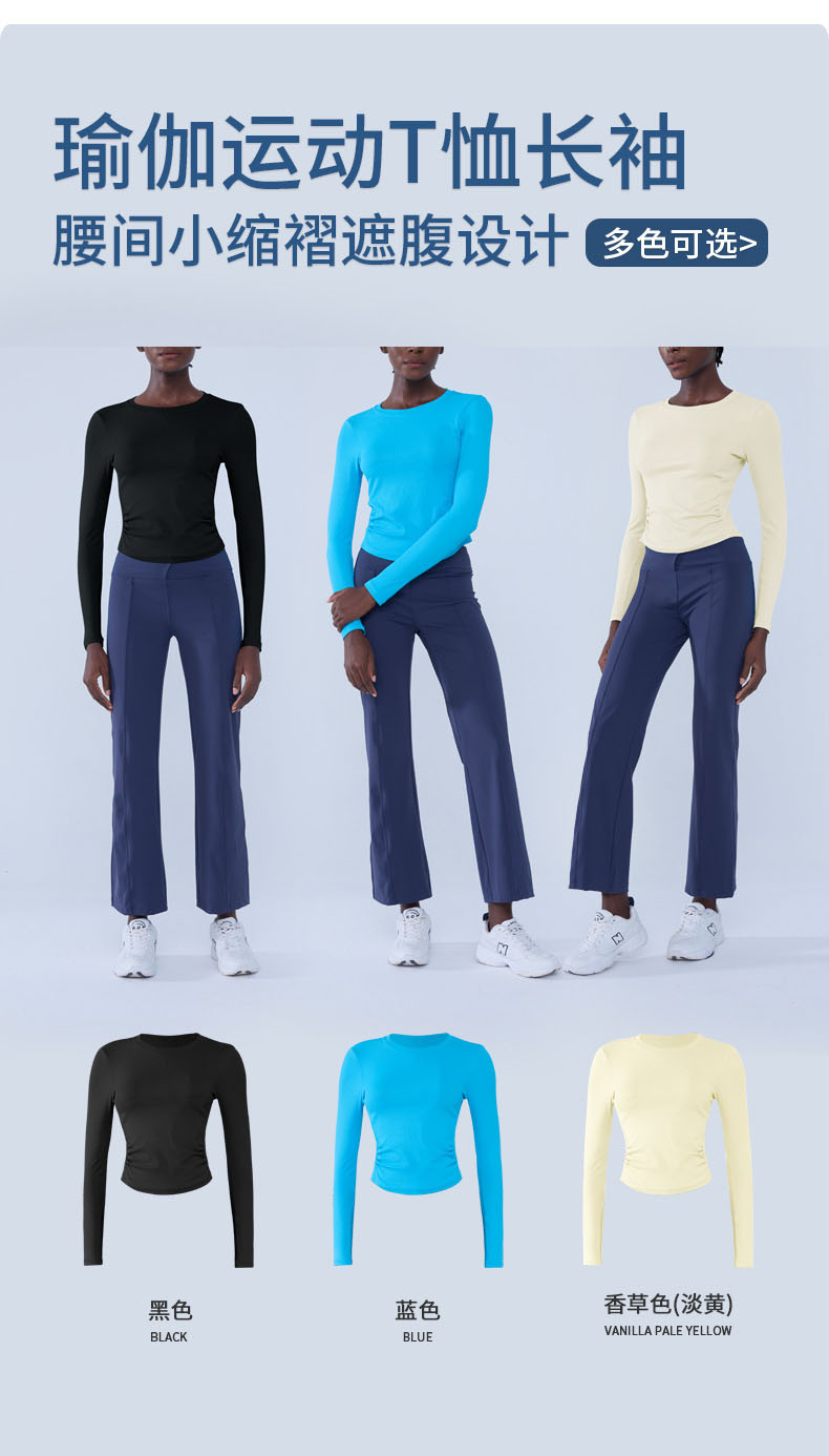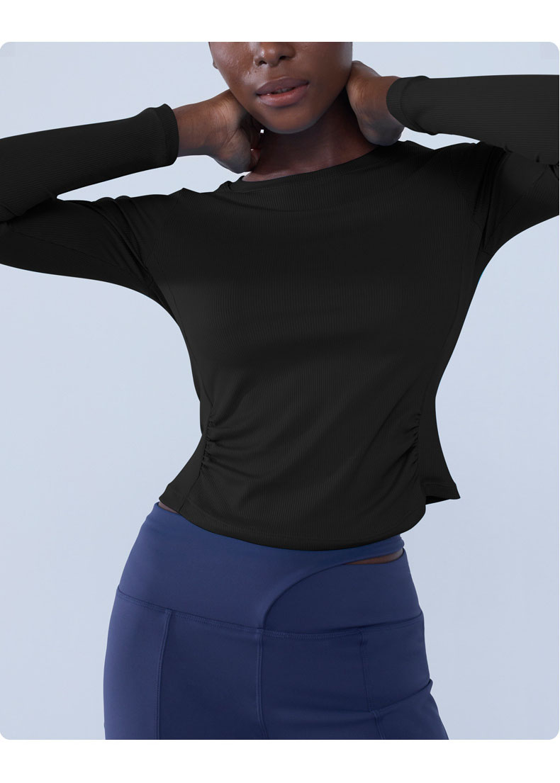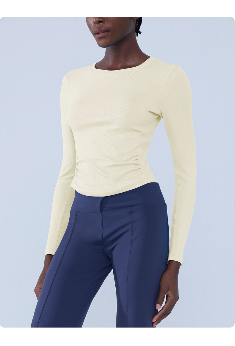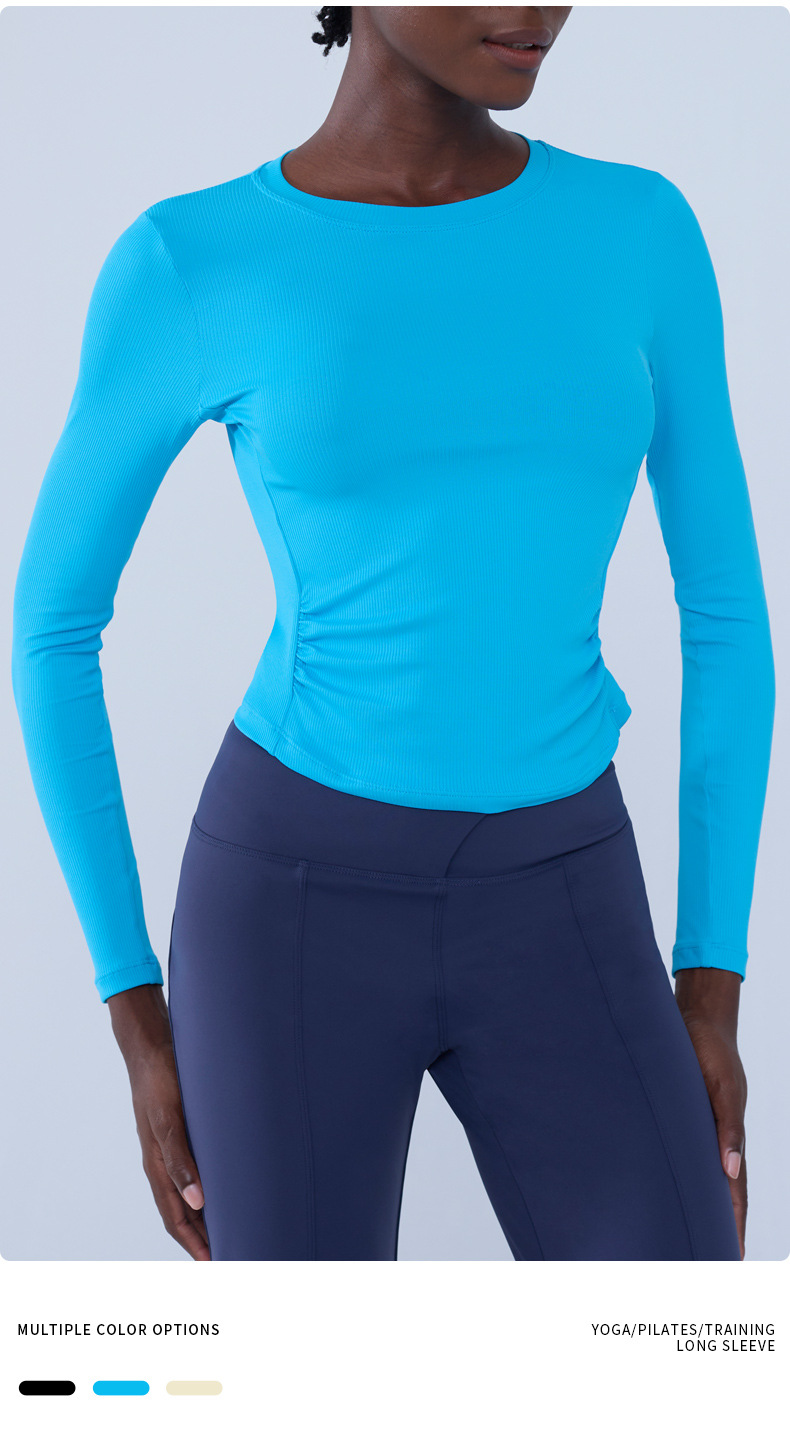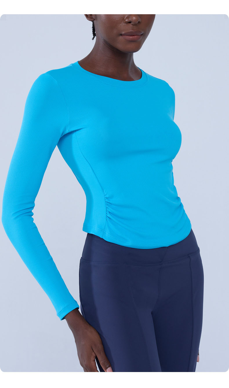 跃牌【小甜心】系列 瑜伽新款双边缩褶圆领打底修身显瘦运动长袖9072