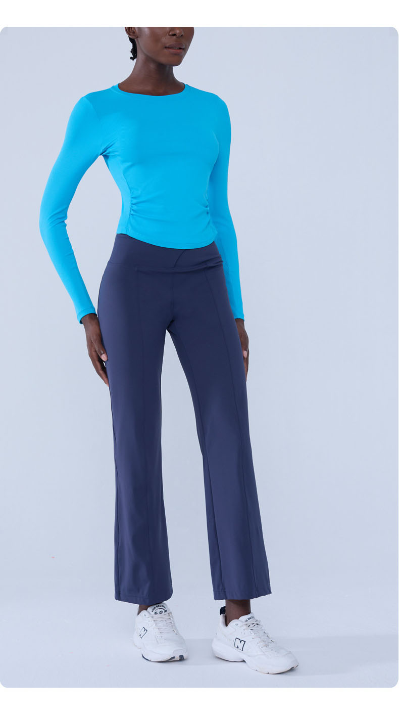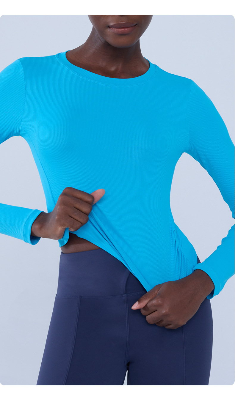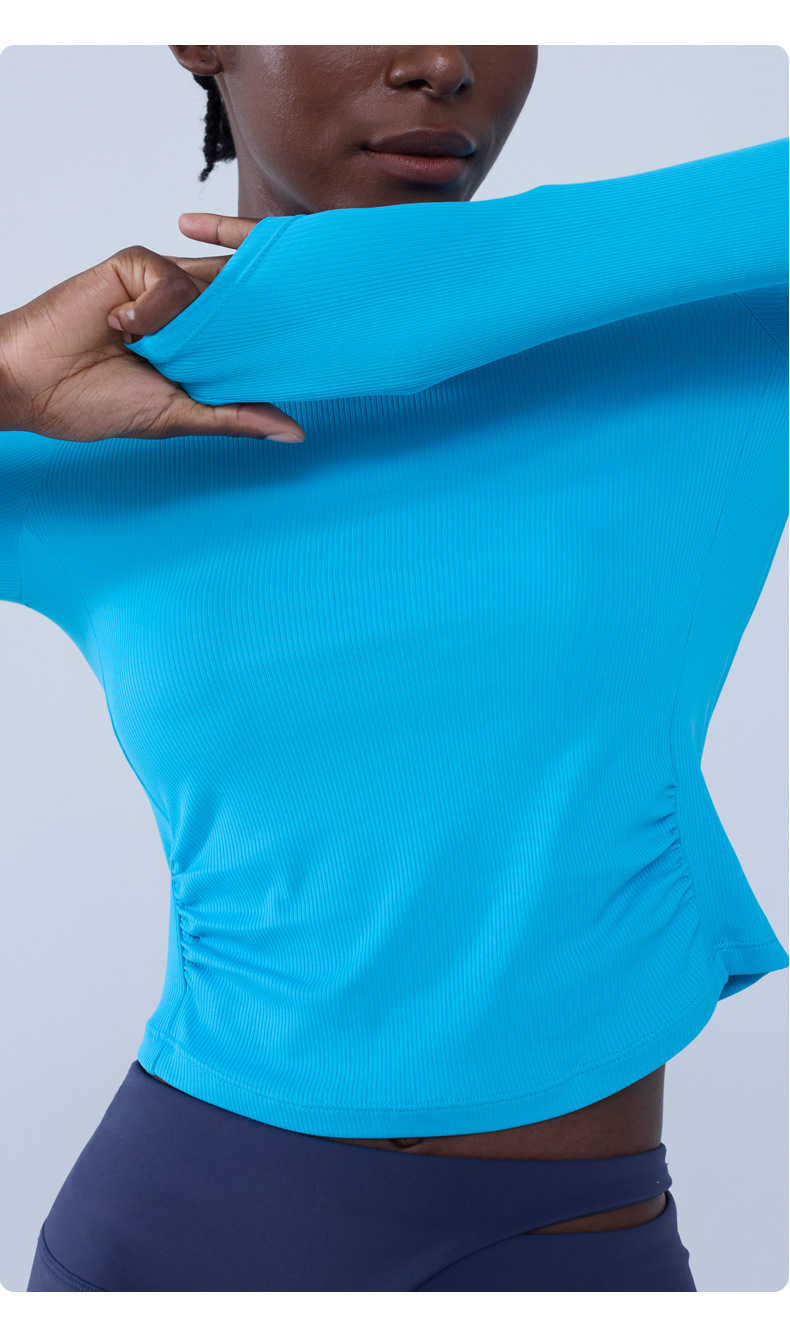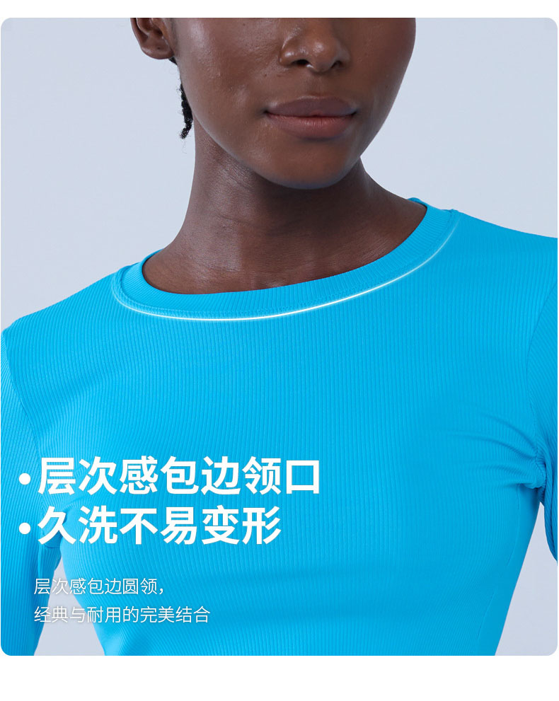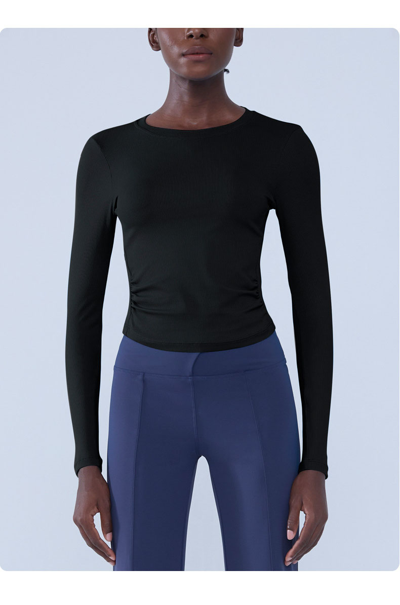 跃牌【小甜心】系列 瑜伽新款双边缩褶圆领打底修身显瘦运动长袖9072