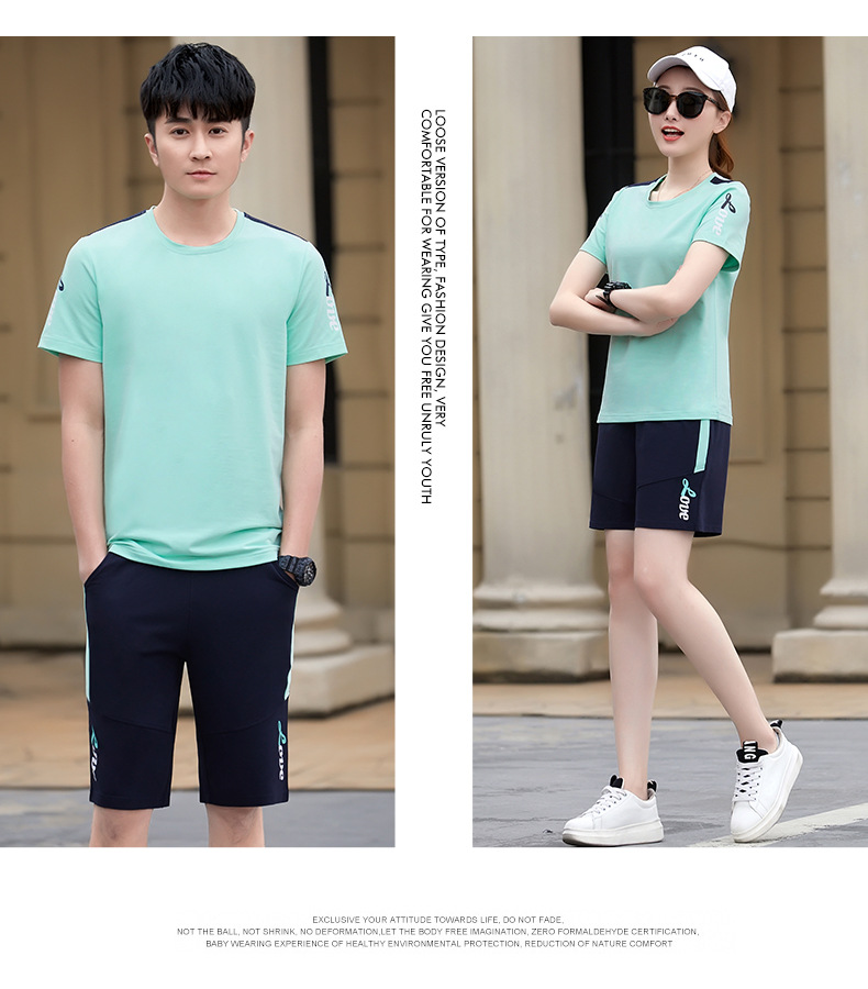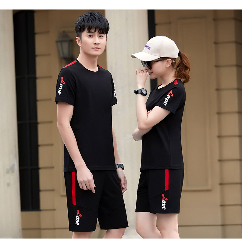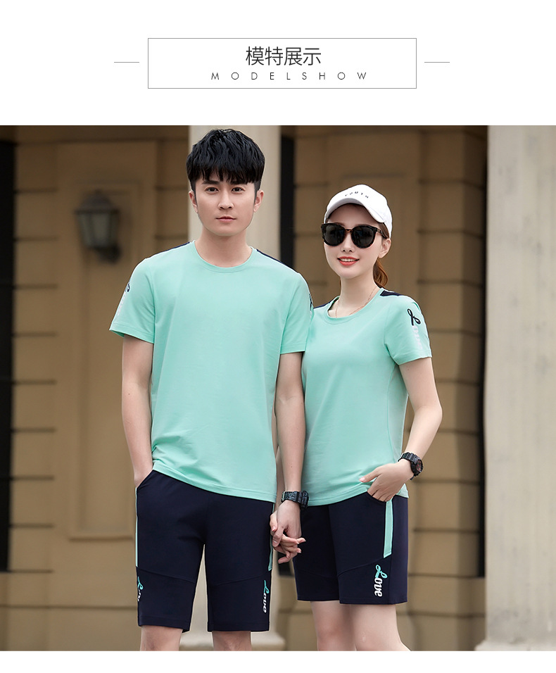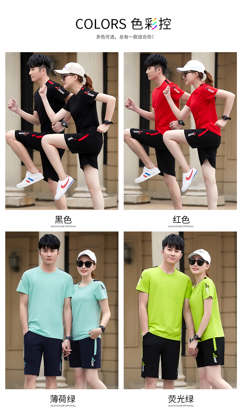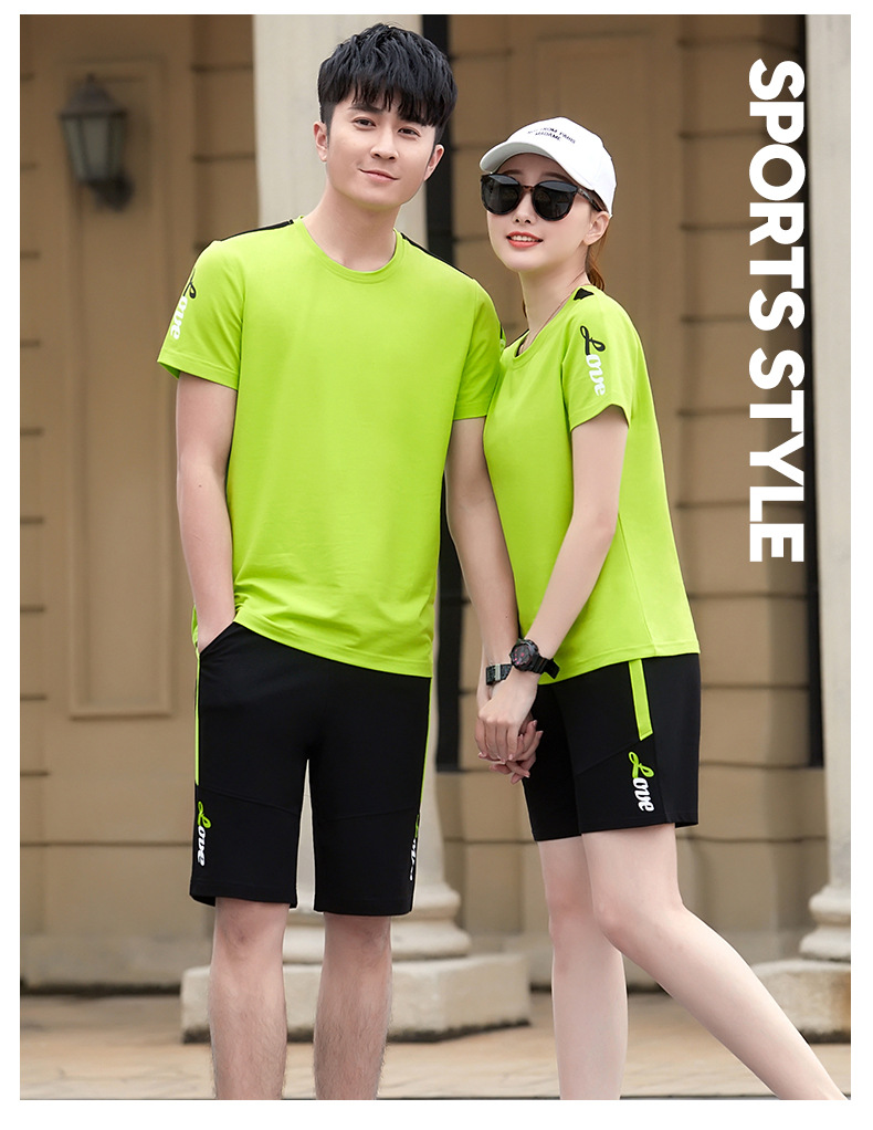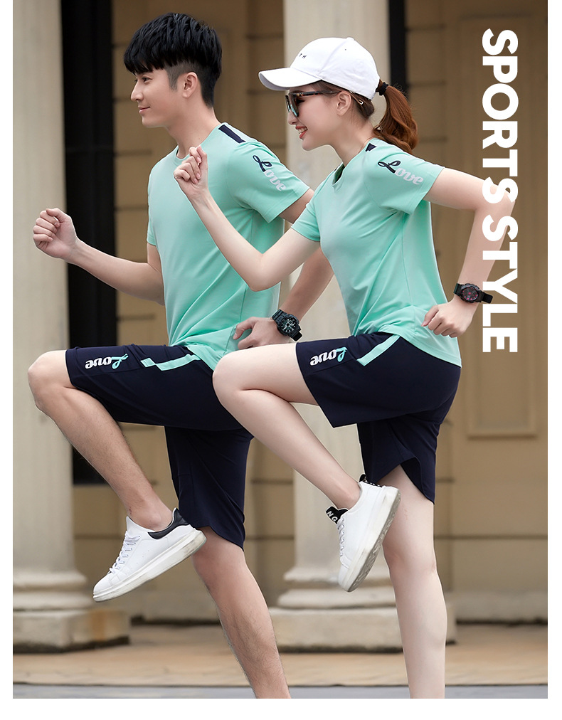 SPYG-9084VCSDF夏季圆领宽松短袖情侣休闲跑步运动服两件套