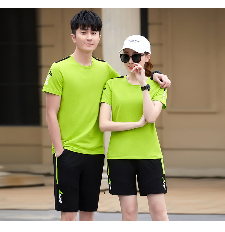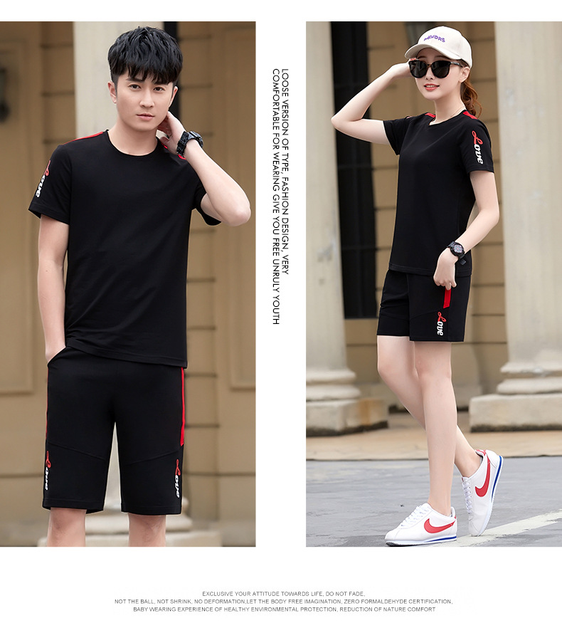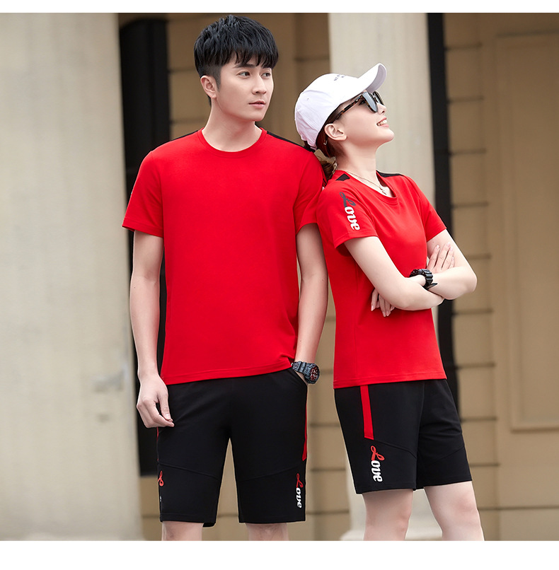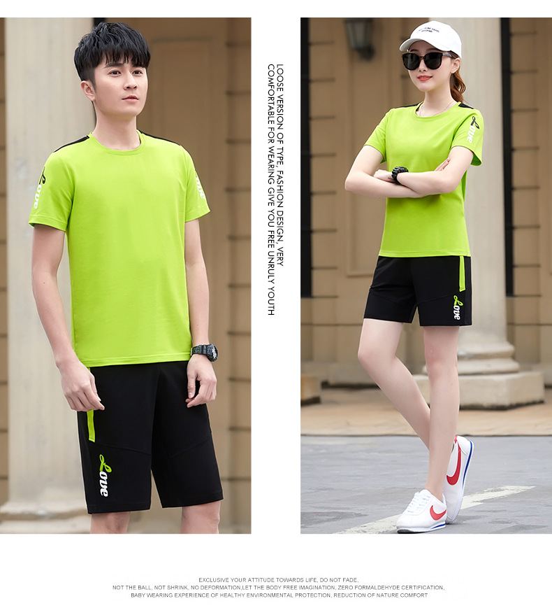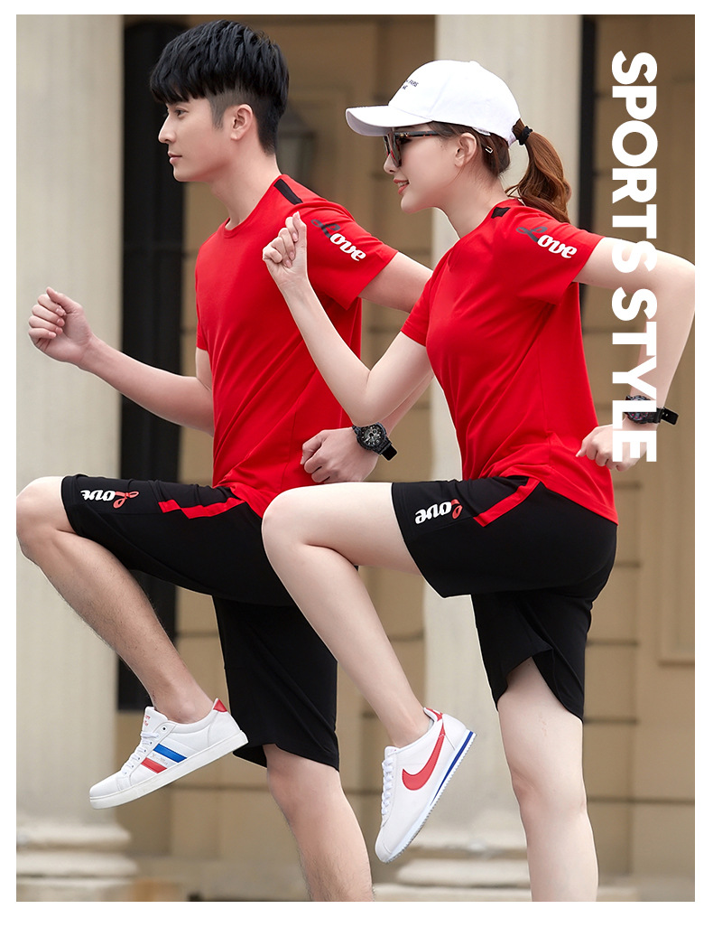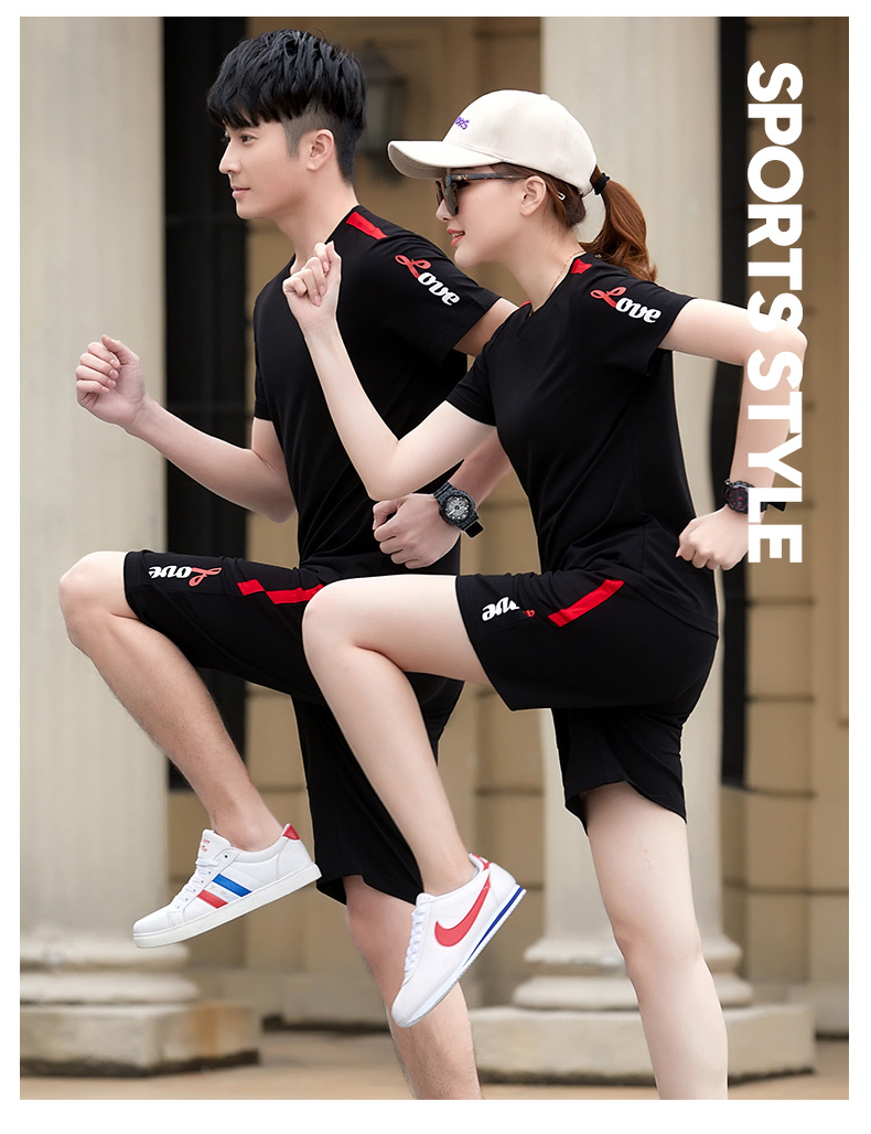 SPYG-9084VCSDF夏季圆领宽松短袖情侣休闲跑步运动服两件套