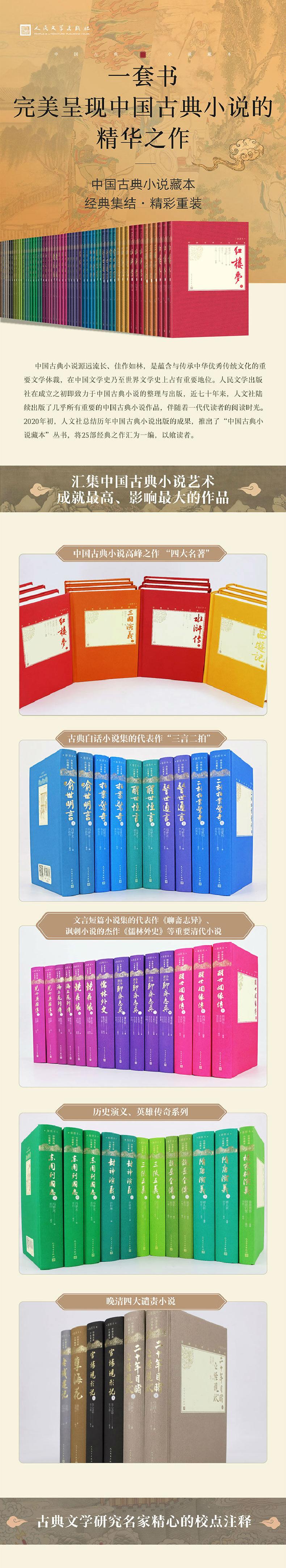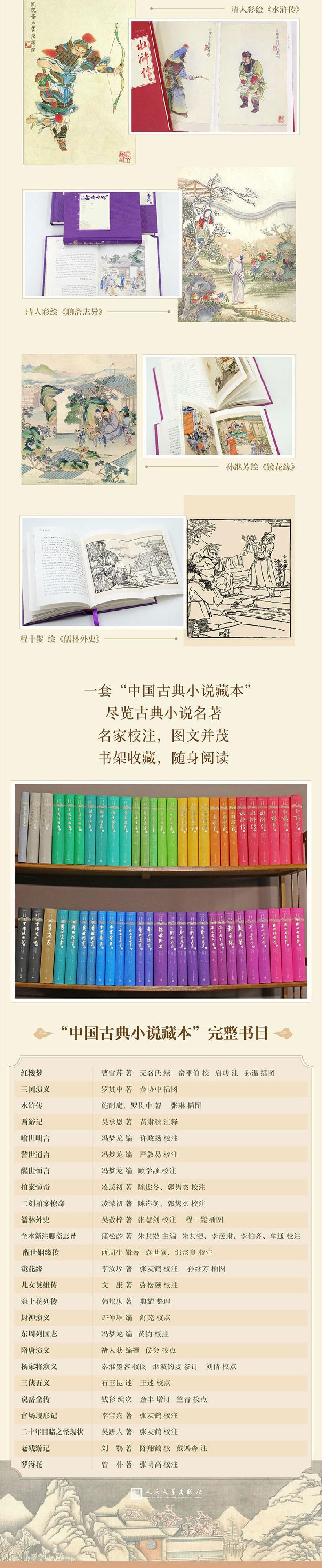 《二十年目睹之怪现状》(精装插图本)是“中国古典小说藏本(精装插图本)”中的一种。人民文学出版社在成立之初即致力于中国古典小说的整理与出版,半个多世纪以来陆续出版了几乎全部重要的中国古典小说作品。这些作品的整理者,均为古典文学研究名家,如聂绀弩、张友鸾、张友鹤、张慧剑、黄肃秋、顾学颉、陈迩冬、戴鸿森、启功、冯其庸、袁世硕、朱其铠、李伯齐等,他们精心的校勘、标点、注释使这些读本成为影响几代读者的典。“中国古典小说藏本(精装插图本)”丛书将这些优秀的典之作集结在一起,再次进行全面细致的修订和编校,以期更加完善;所选插图为名家绘画或精美绣像,如孙温绘《红楼梦》、孙继芳绘《镜花缘》、金协中绘《三国演义》、程十髮绘《儒林外史》等,以丰富读者的阅读体验。