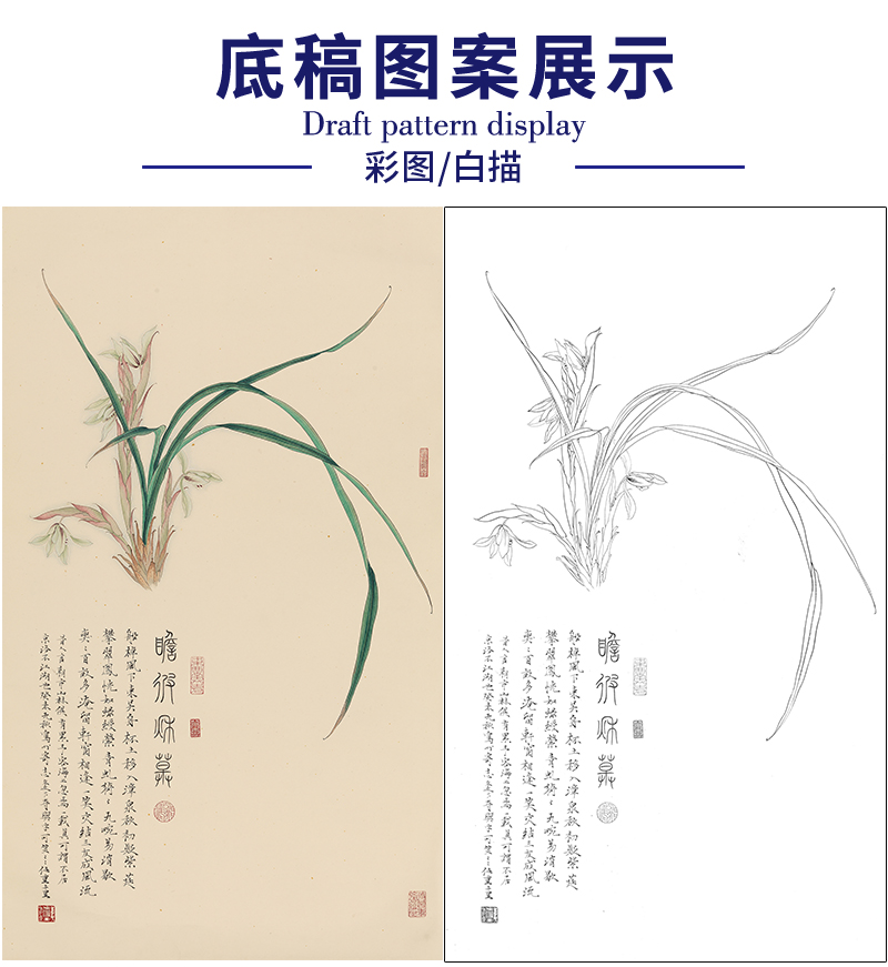 任重花鸟工笔画白描底稿《兰花》临摹勾线高清打印稿RD25