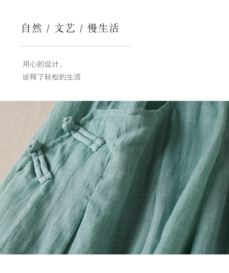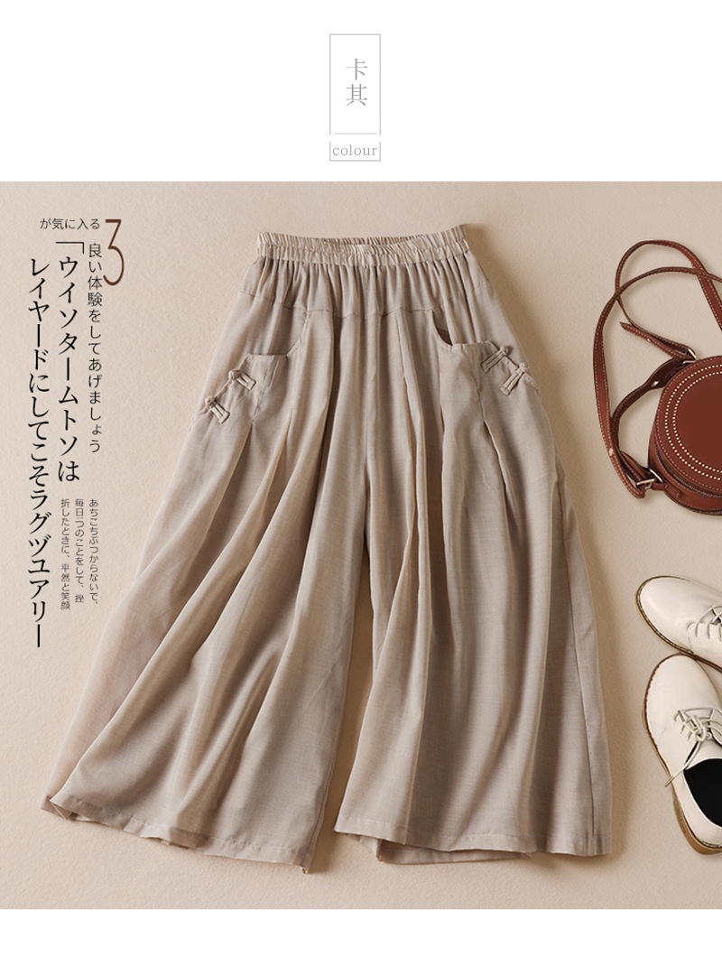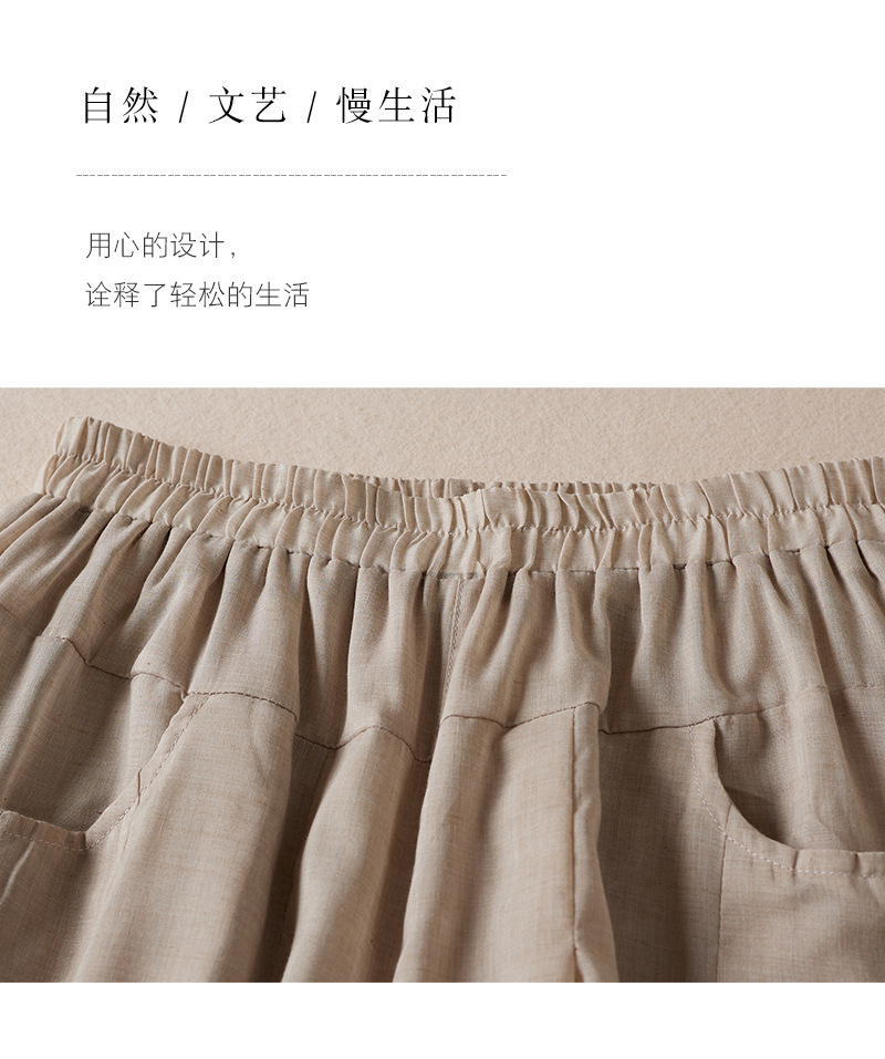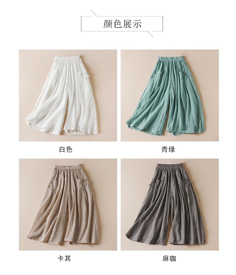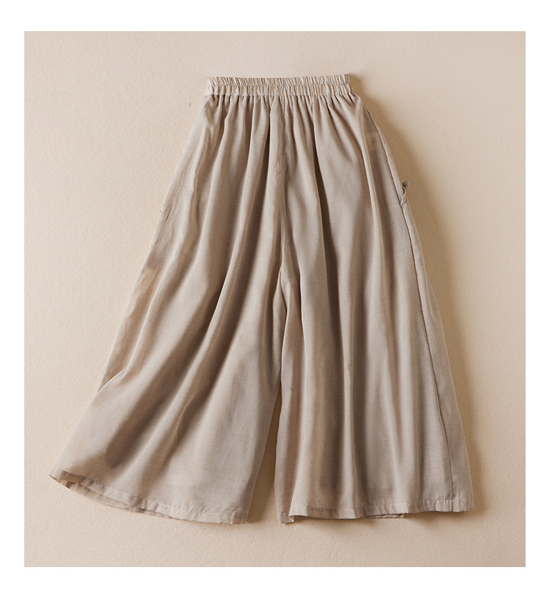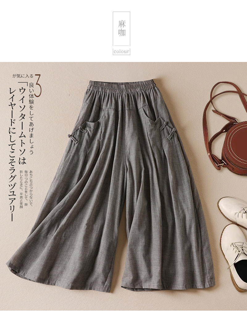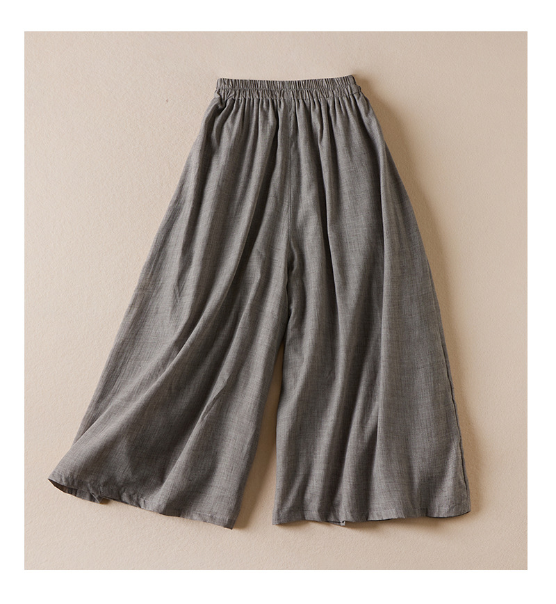 GYH 6079双层文艺复古棉麻裤裙高腰休闲大摆百褶裤裙