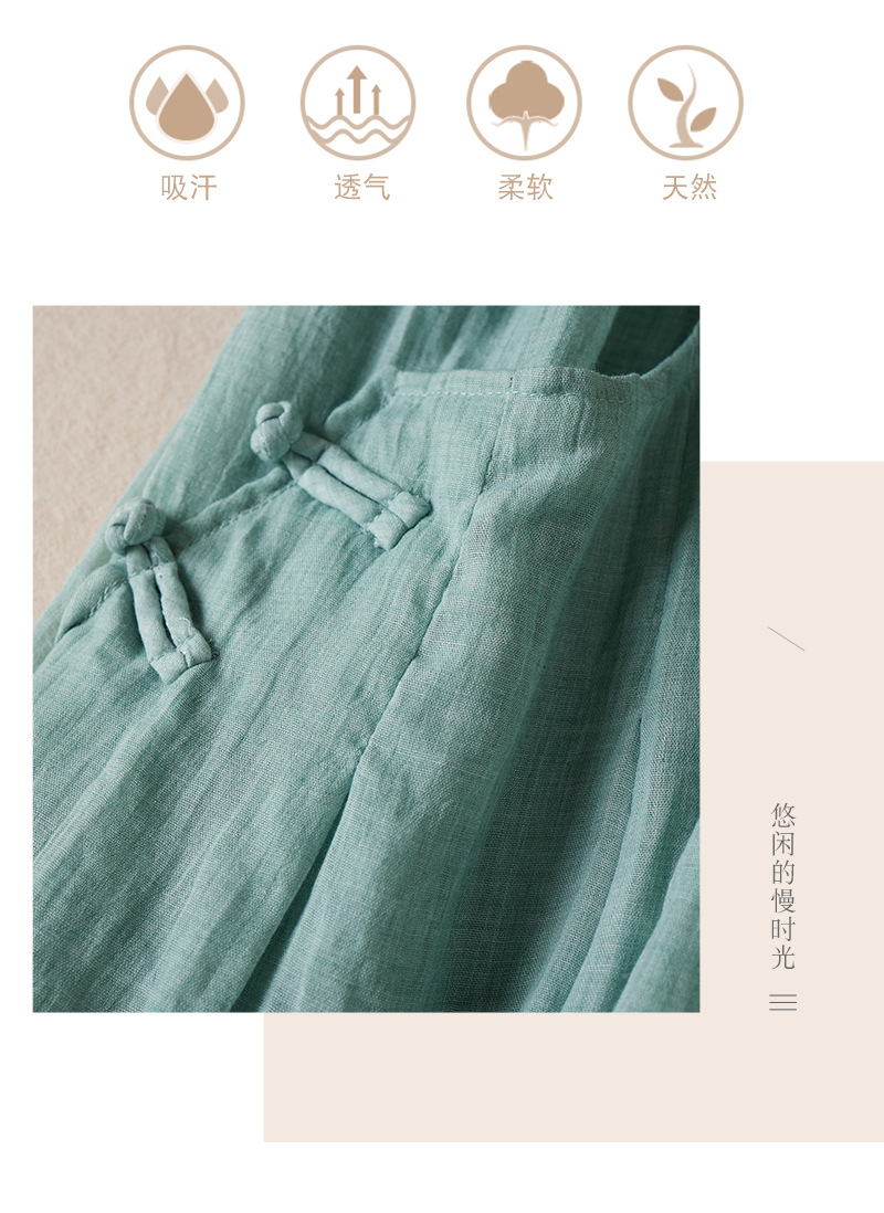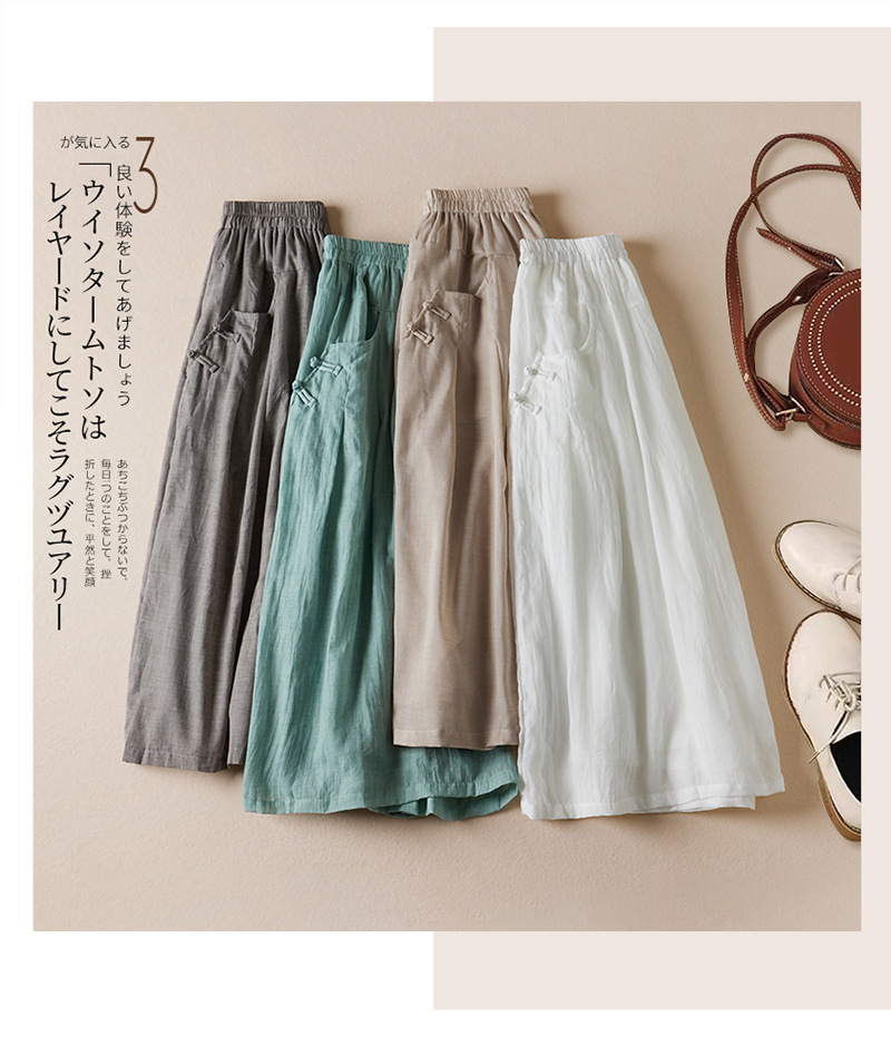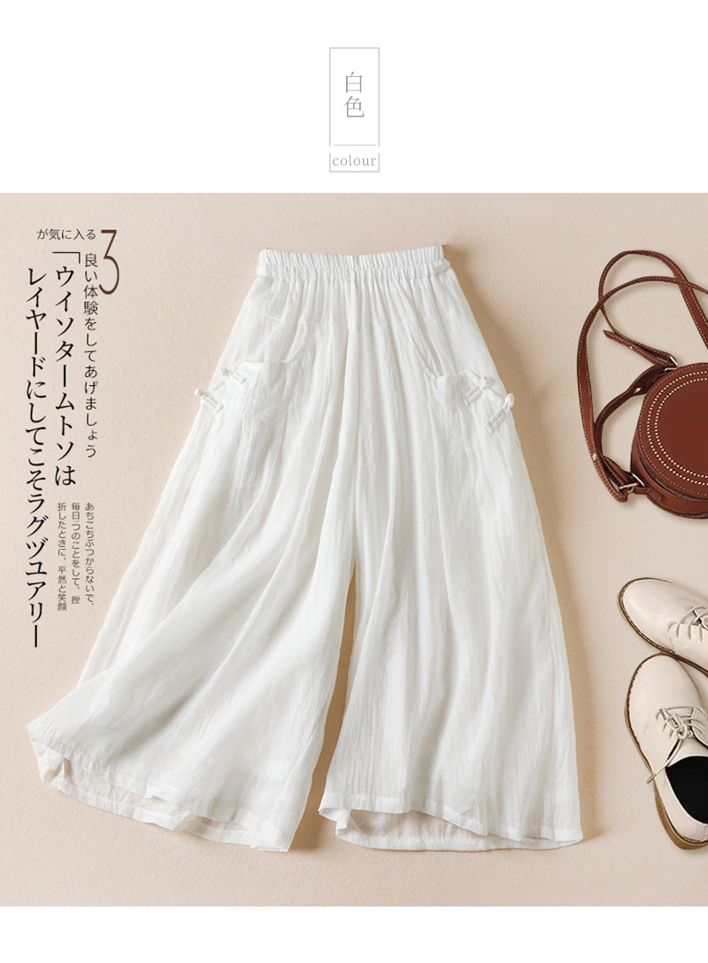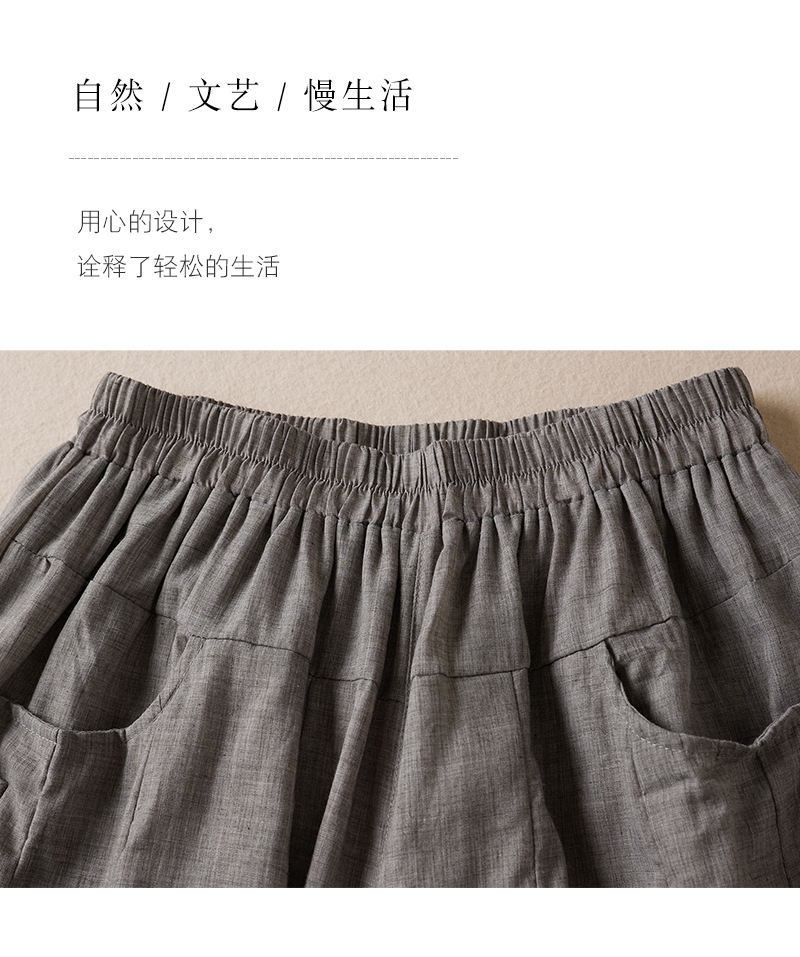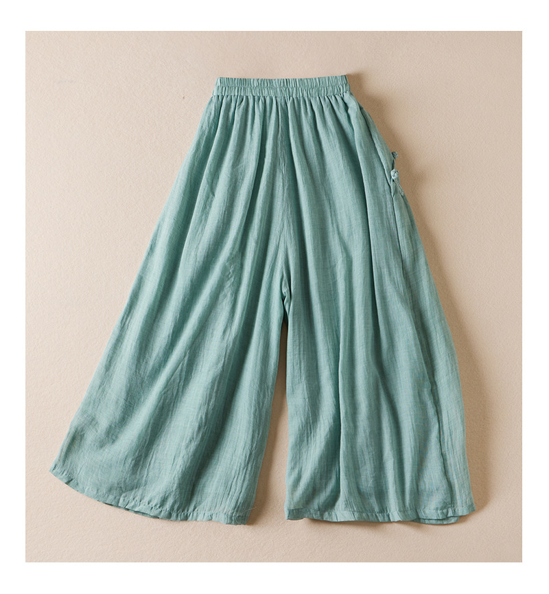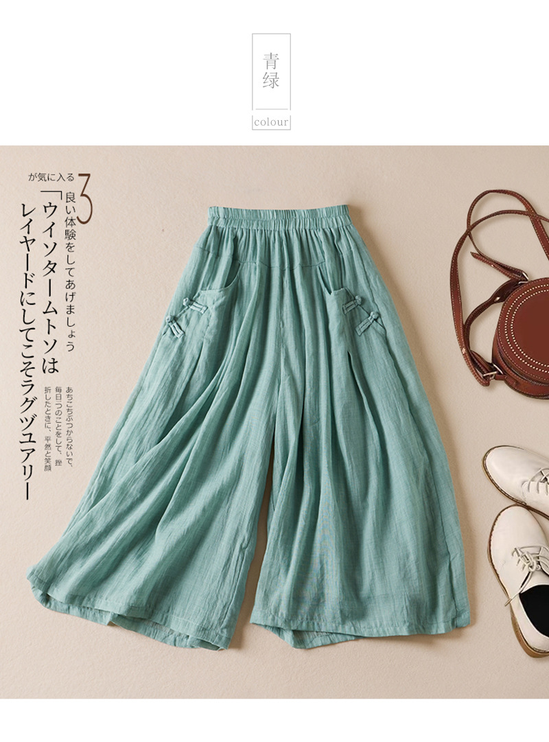 GYH 6079双层文艺复古棉麻裤裙高腰休闲大摆百褶裤裙