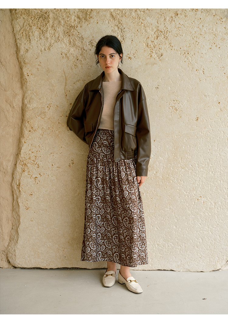 HeyDress植绒花卉提花直筒半裙