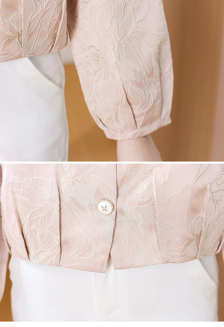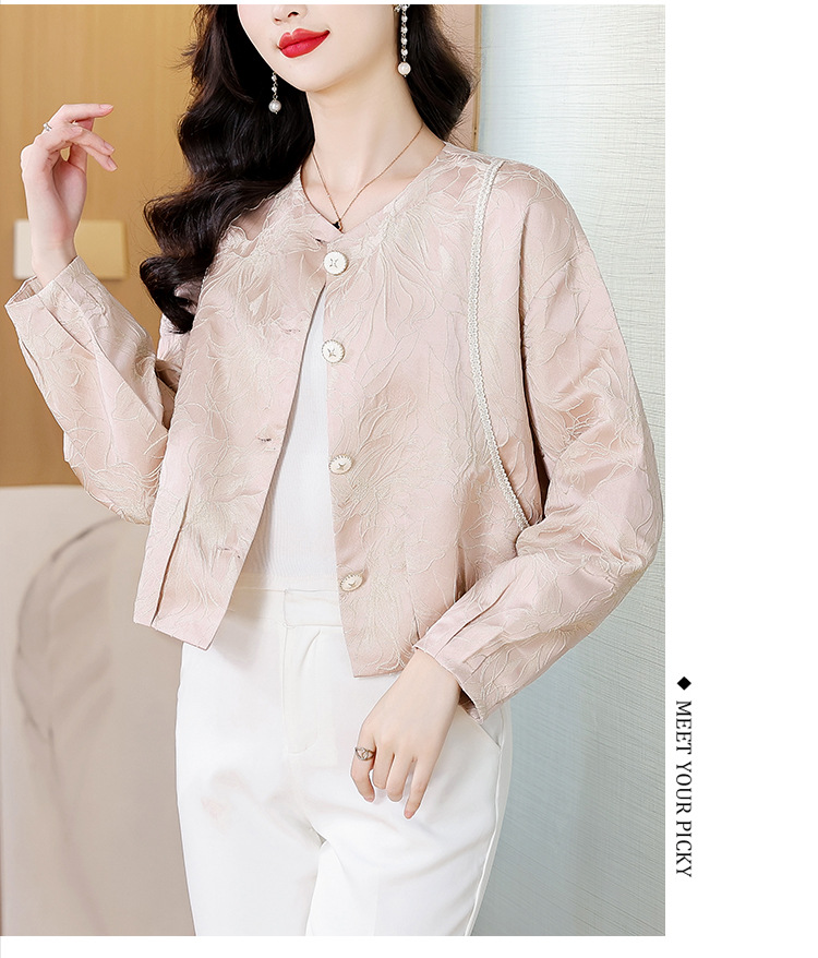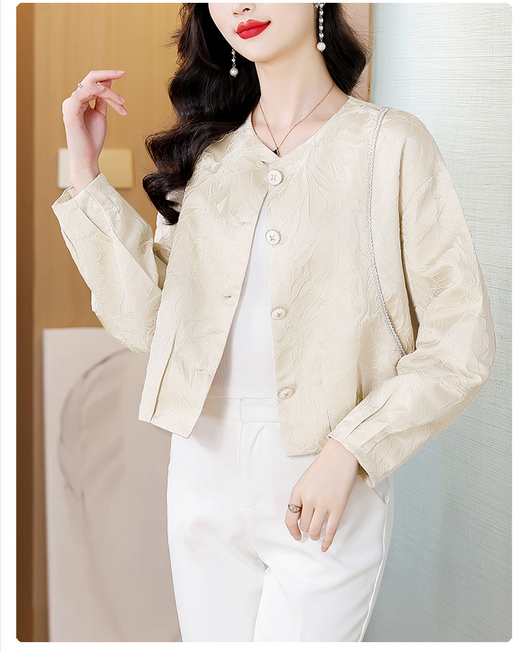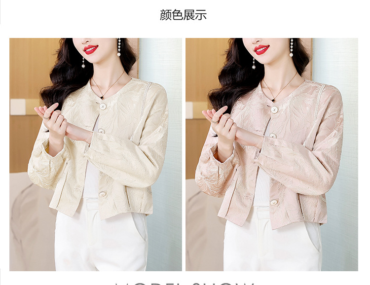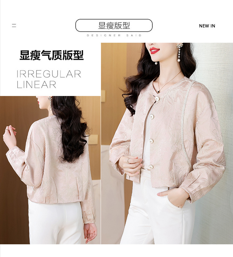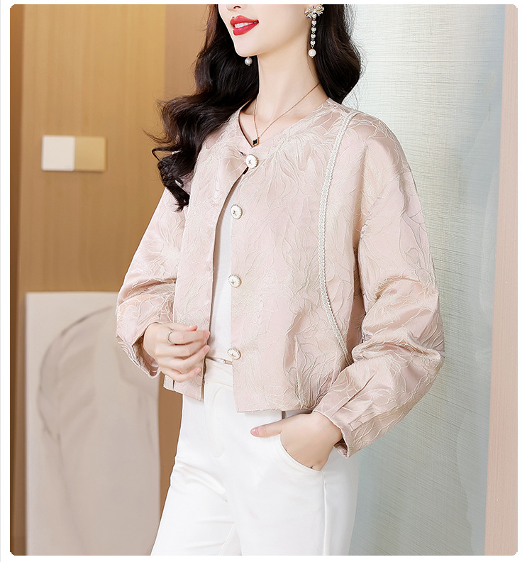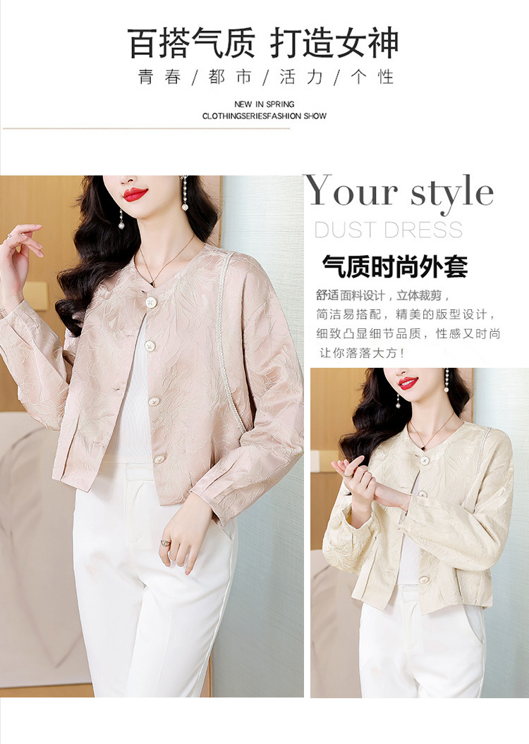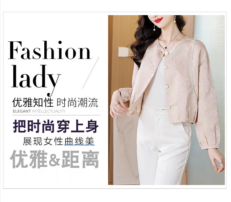 KQL百搭气质2025早秋新款新中式国风提花高级感圆领短款夹克外套女