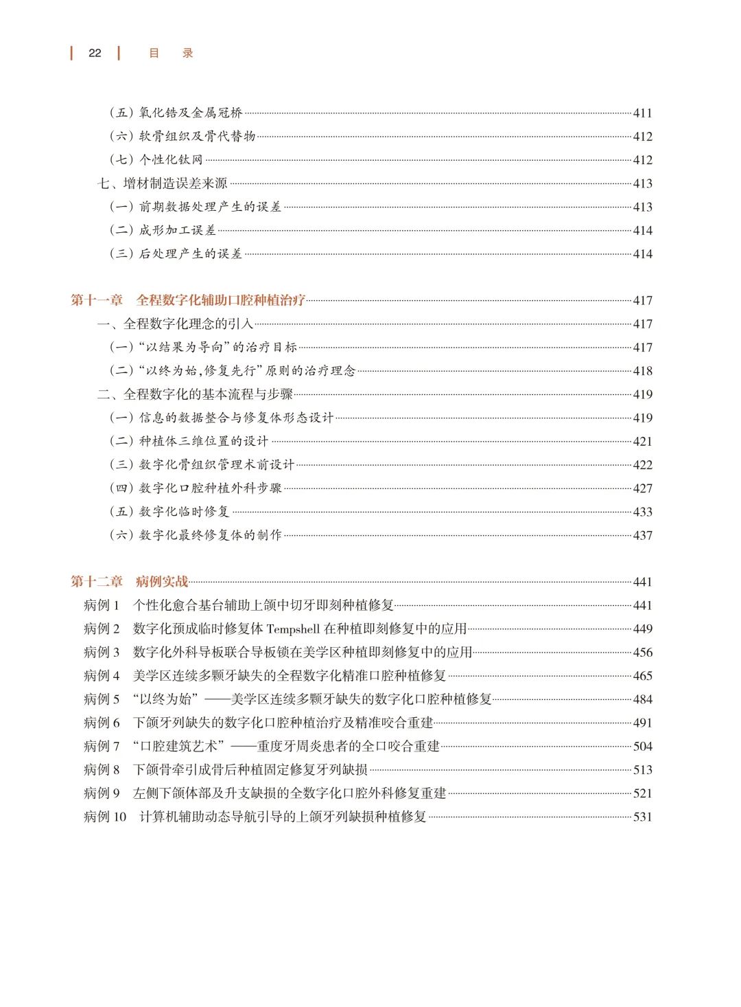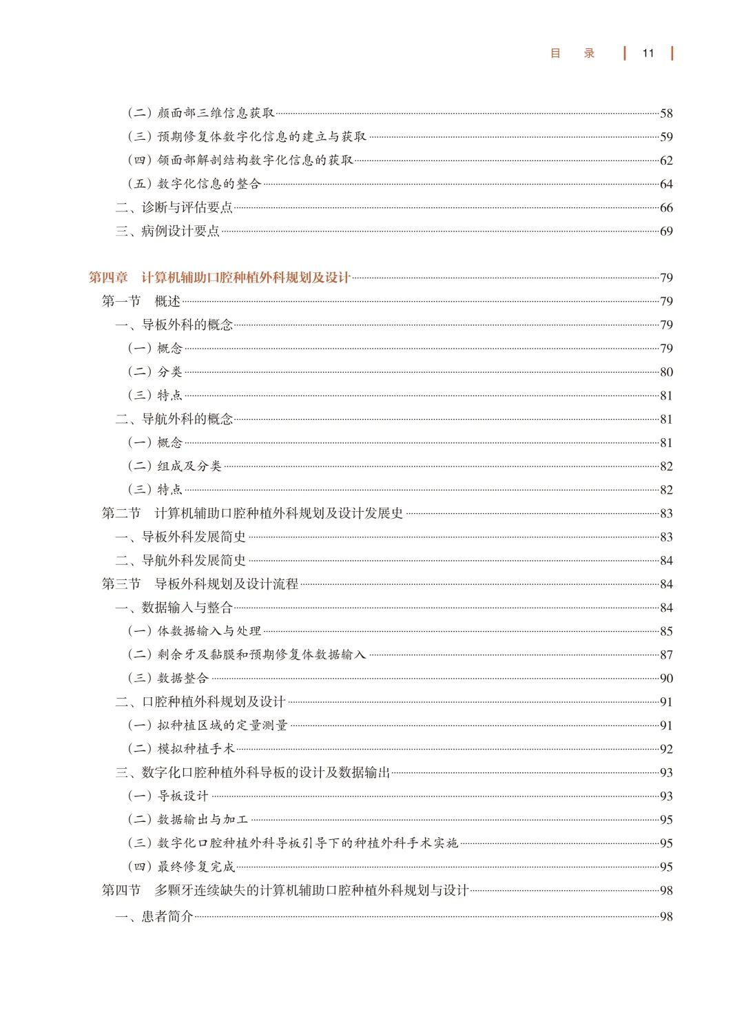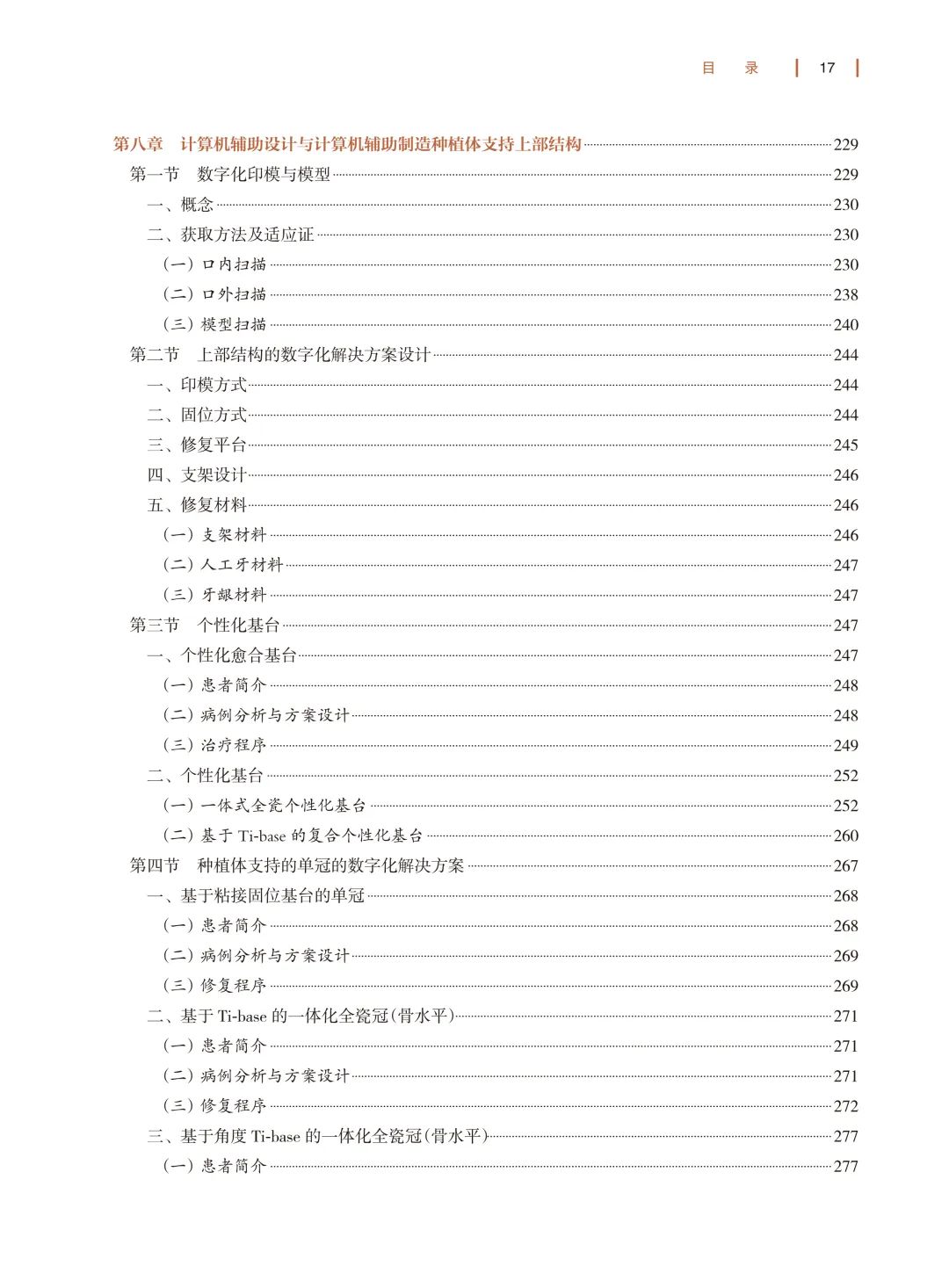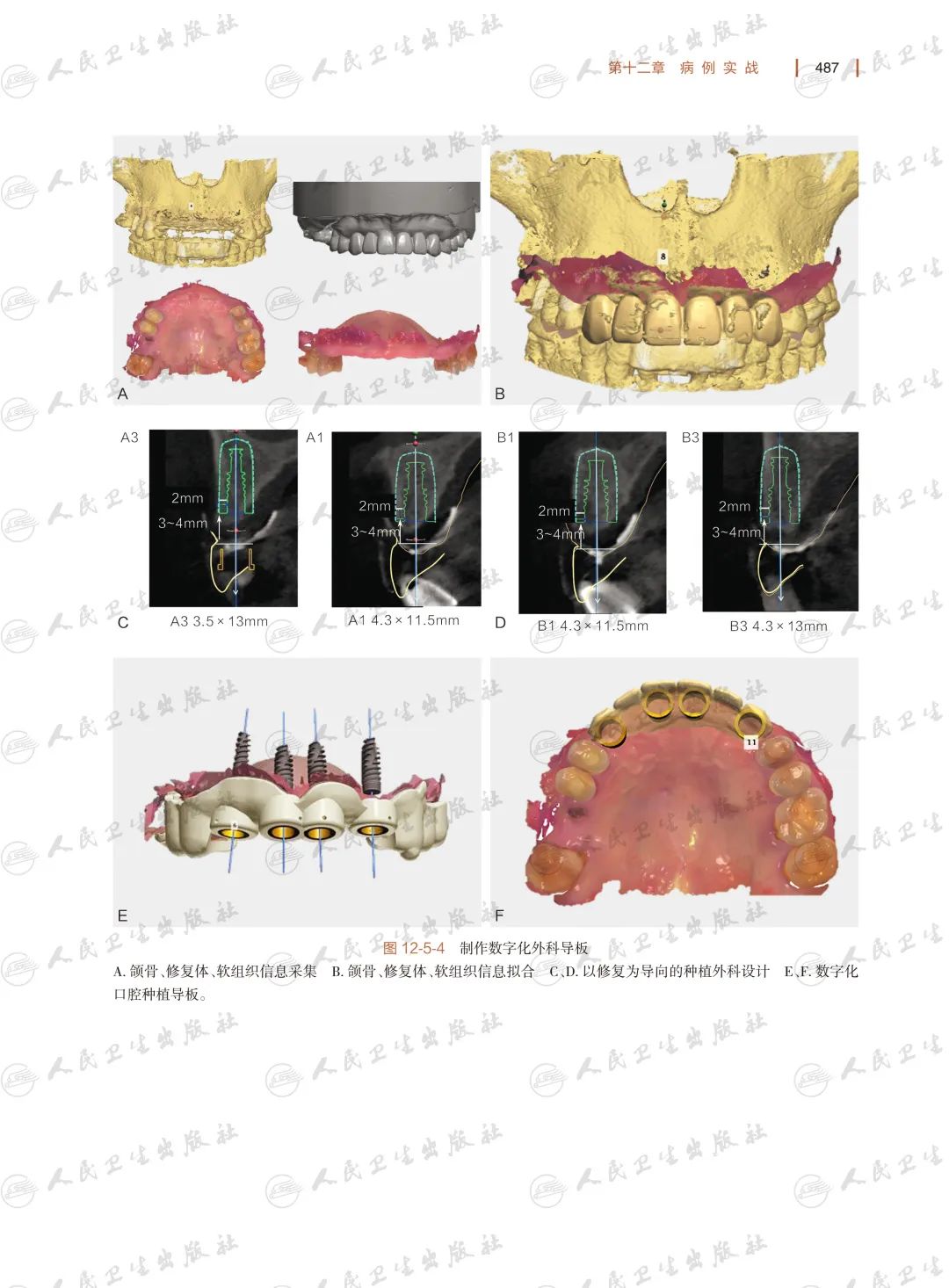 2. 全书共12章、近90万字,包括美学区种植、无牙颌种植和动态导航等热点内容,涵盖数字化诊断与设计程序、数字化外科程序、数字化修复程序和数字化技工工艺程序等治疗程序,以及技工端数据的处理、修复体的加工等步骤。