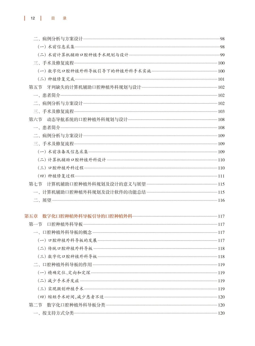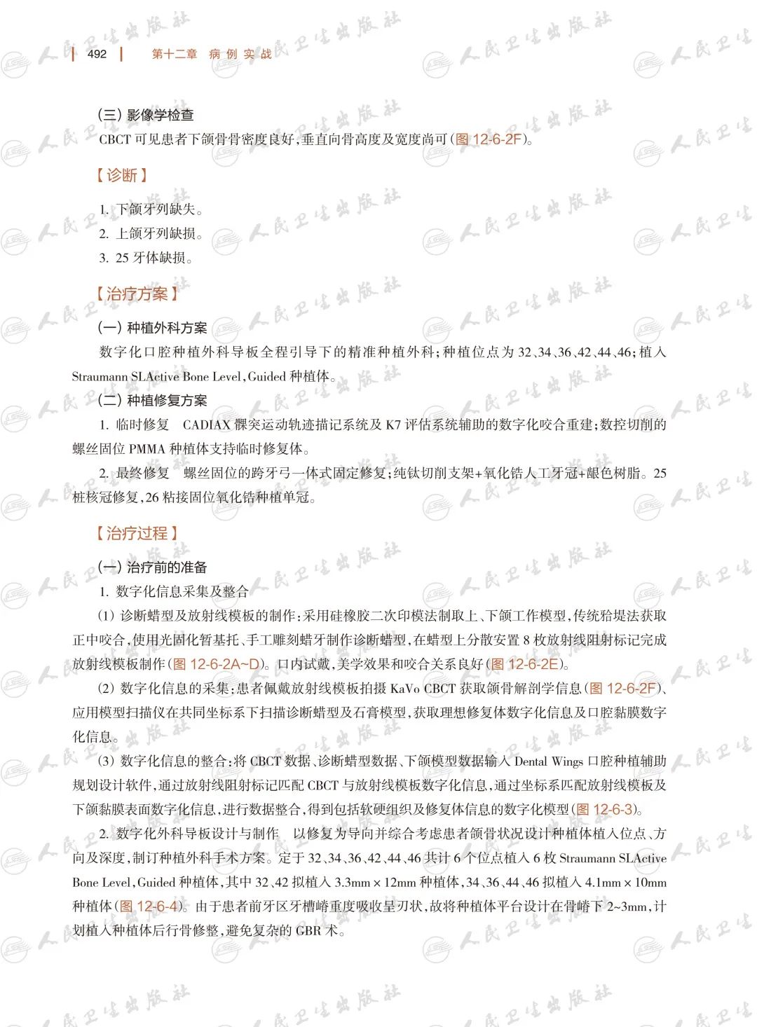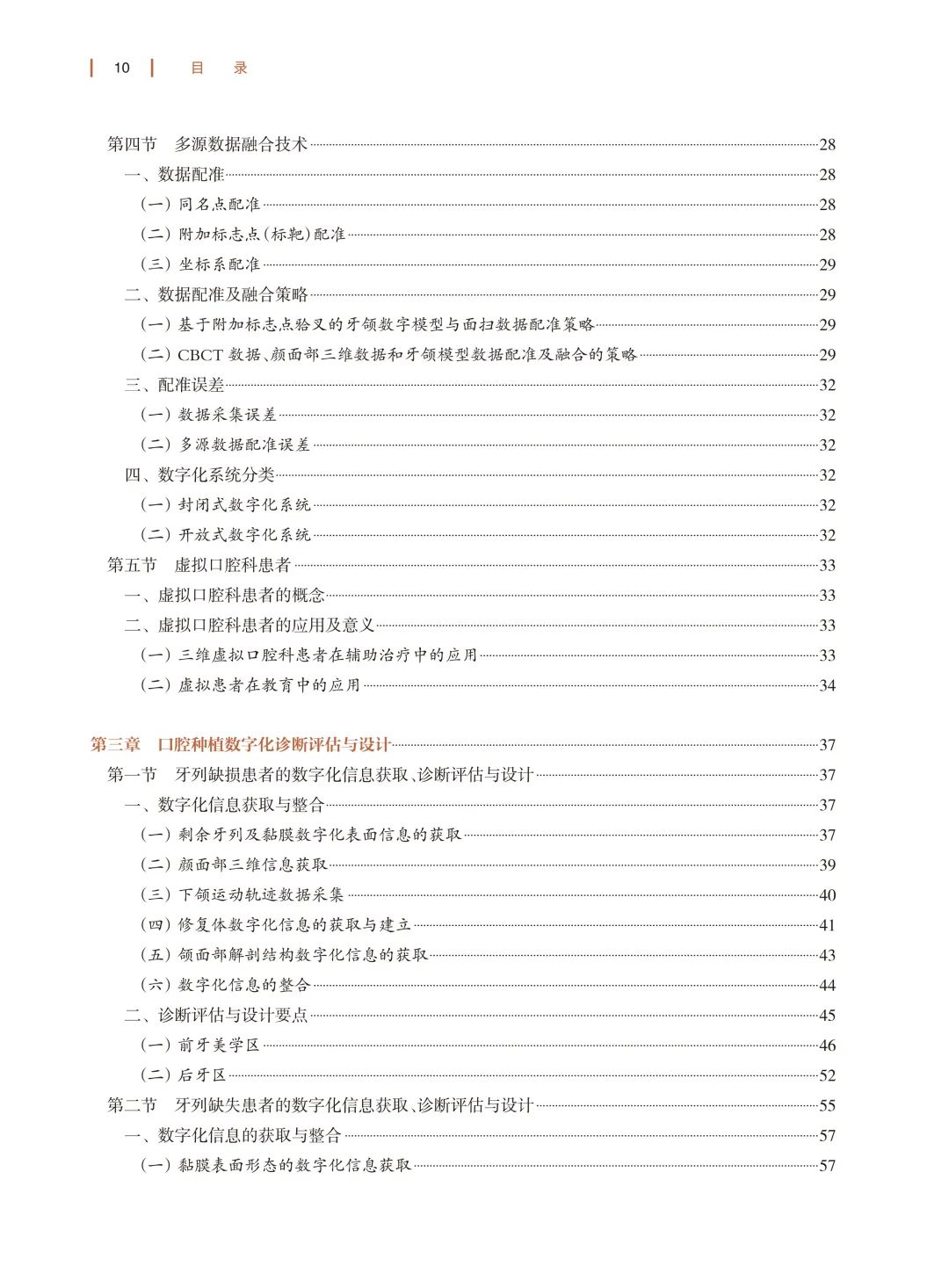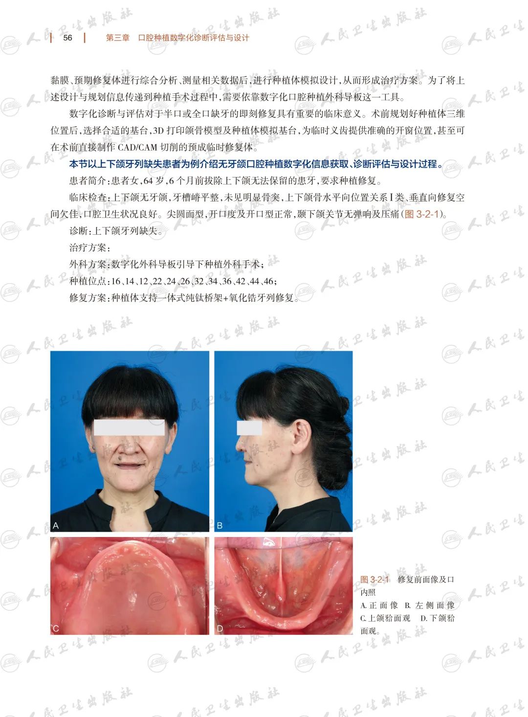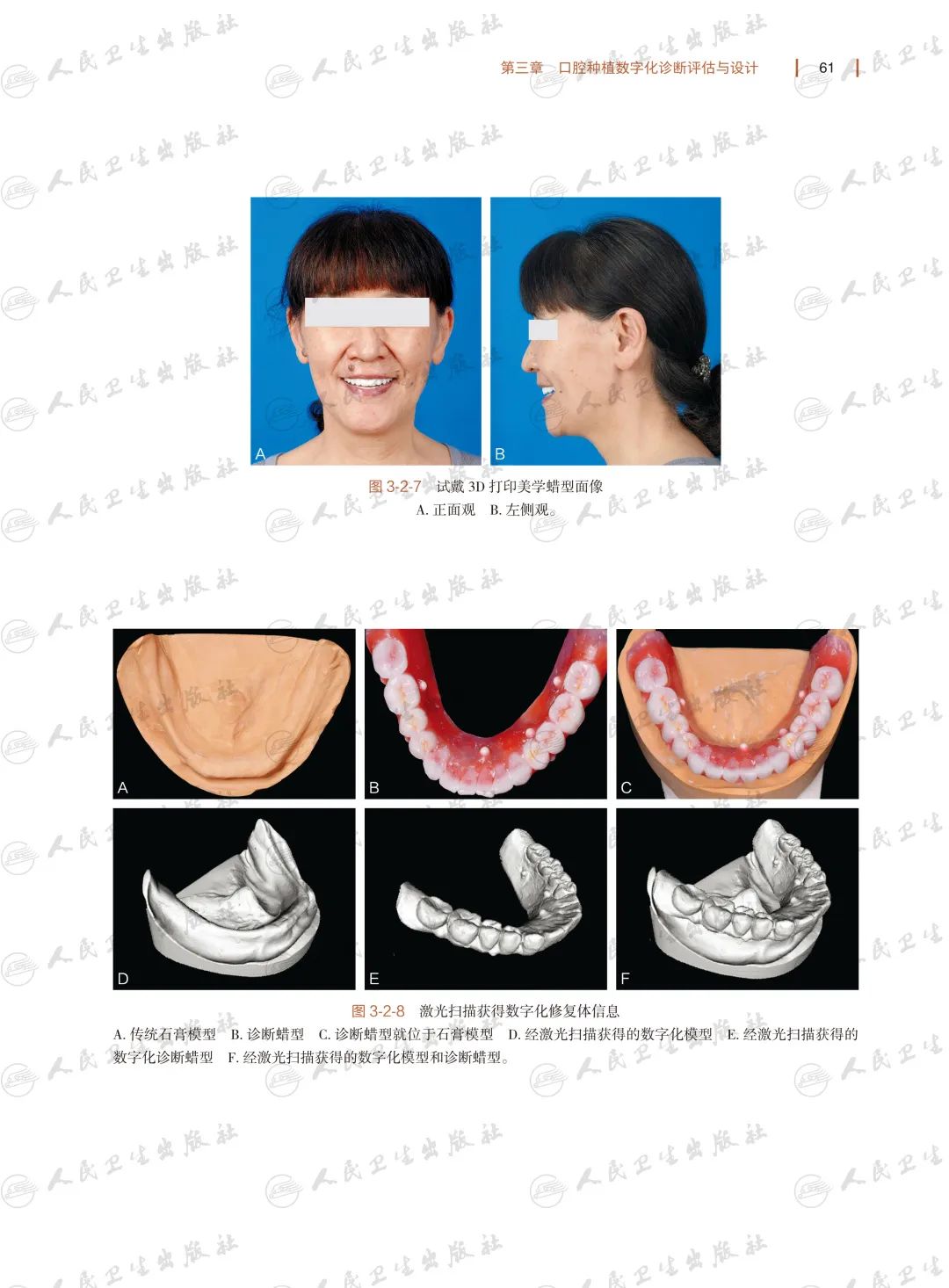2. 全书共12章、近90万字,包括美学区种植、无牙颌种植和动态导航等热点内容,涵盖数字化诊断与设计程序、数字化外科程序、数字化修复程序和数字化技工工艺程序等治疗程序,以及技工端数据的处理、修复体的加工等步骤。
