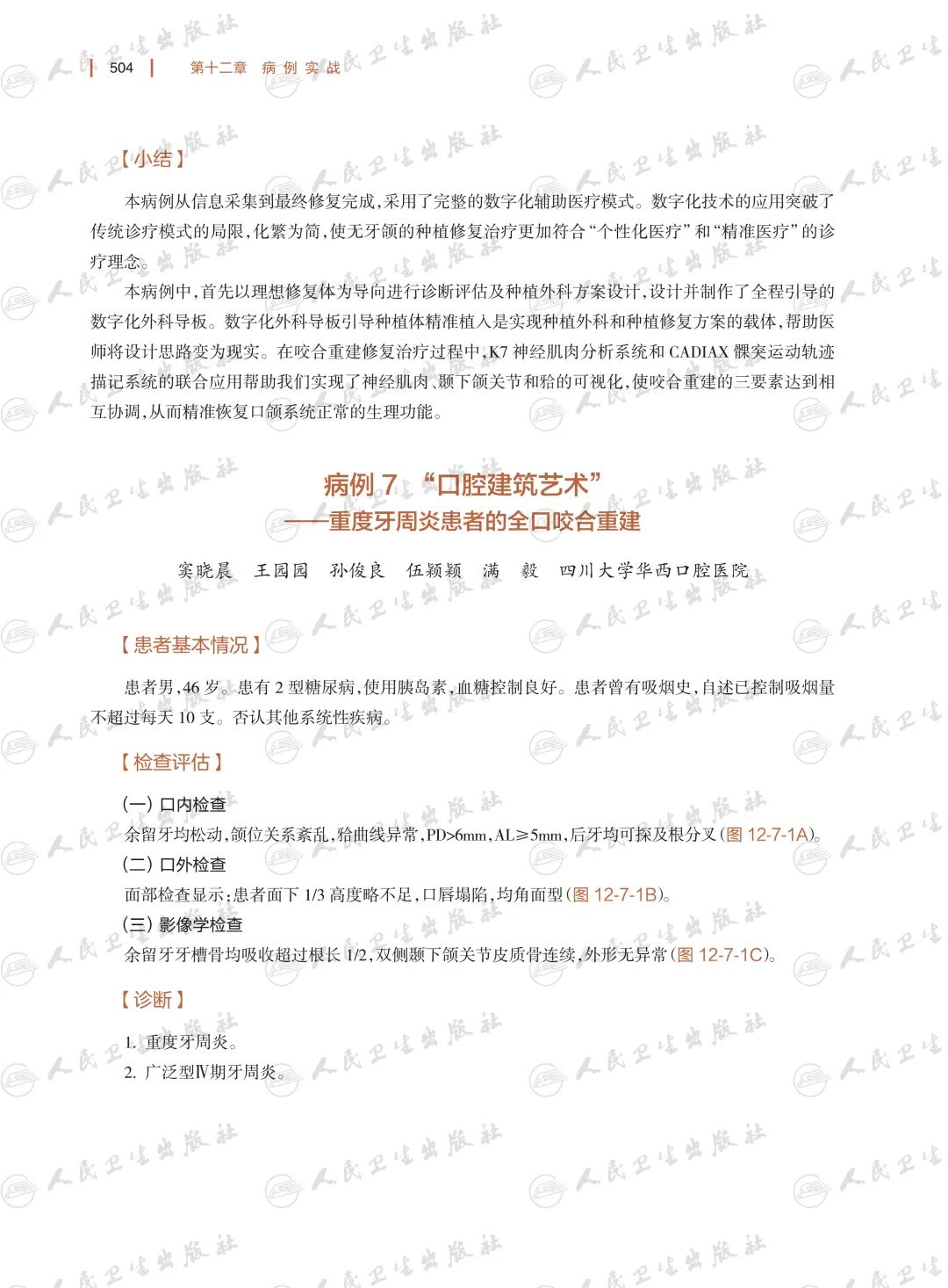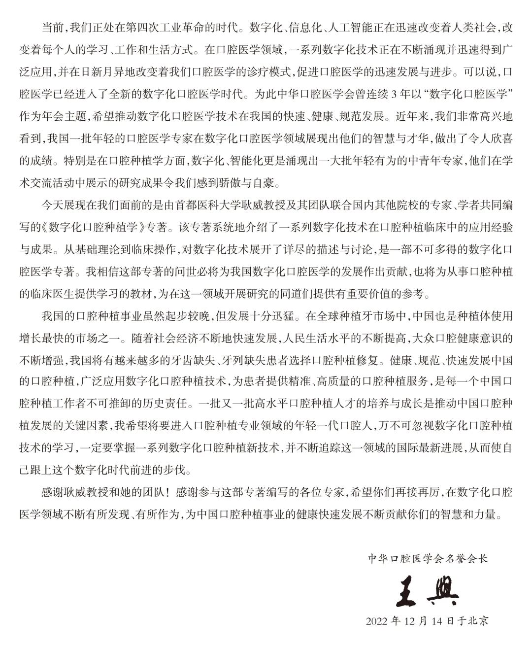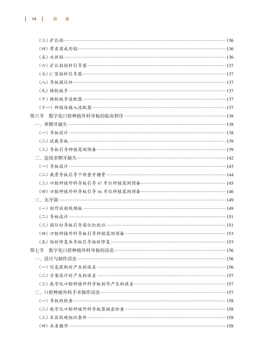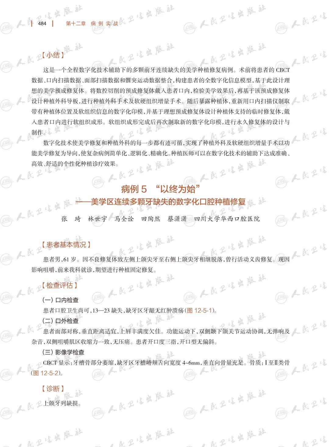 2. 全书共12章、近90万字,包括美学区种植、无牙颌种植和动态导航等热点内容,涵盖数字化诊断与设计程序、数字化外科程序、数字化修复程序和数字化技工工艺程序等治疗程序,以及技工端数据的处理、修复体的加工等步骤。