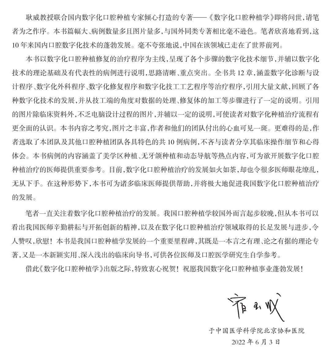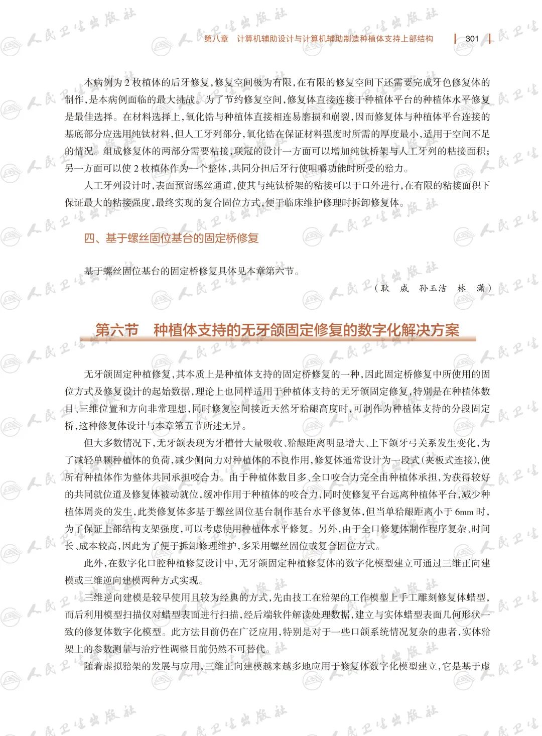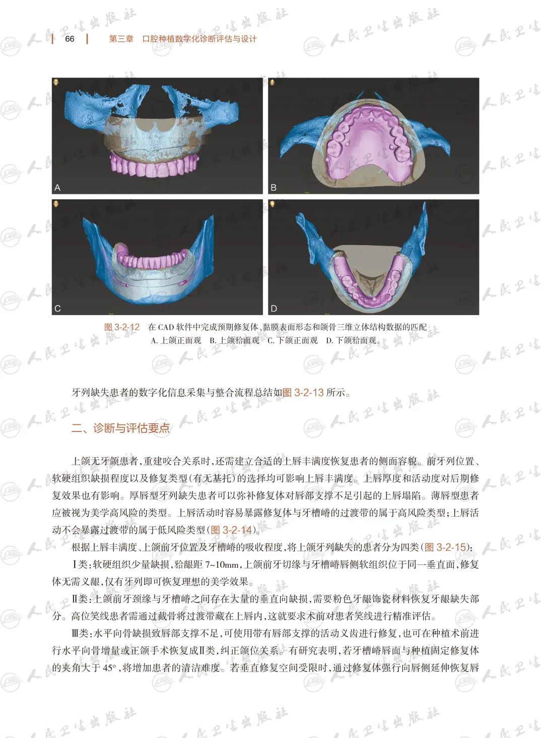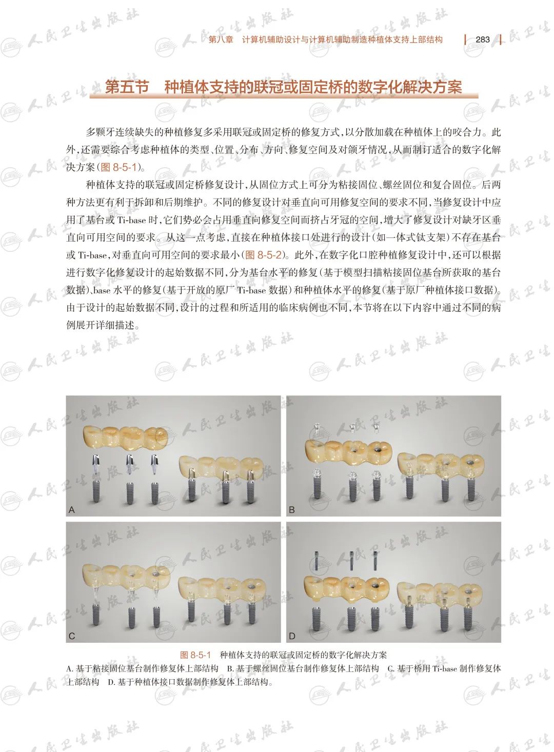 2. 全书共12章、近90万字,包括美学区种植、无牙颌种植和动态导航等热点内容,涵盖数字化诊断与设计程序、数字化外科程序、数字化修复程序和数字化技工工艺程序等治疗程序,以及技工端数据的处理、修复体的加工等步骤。