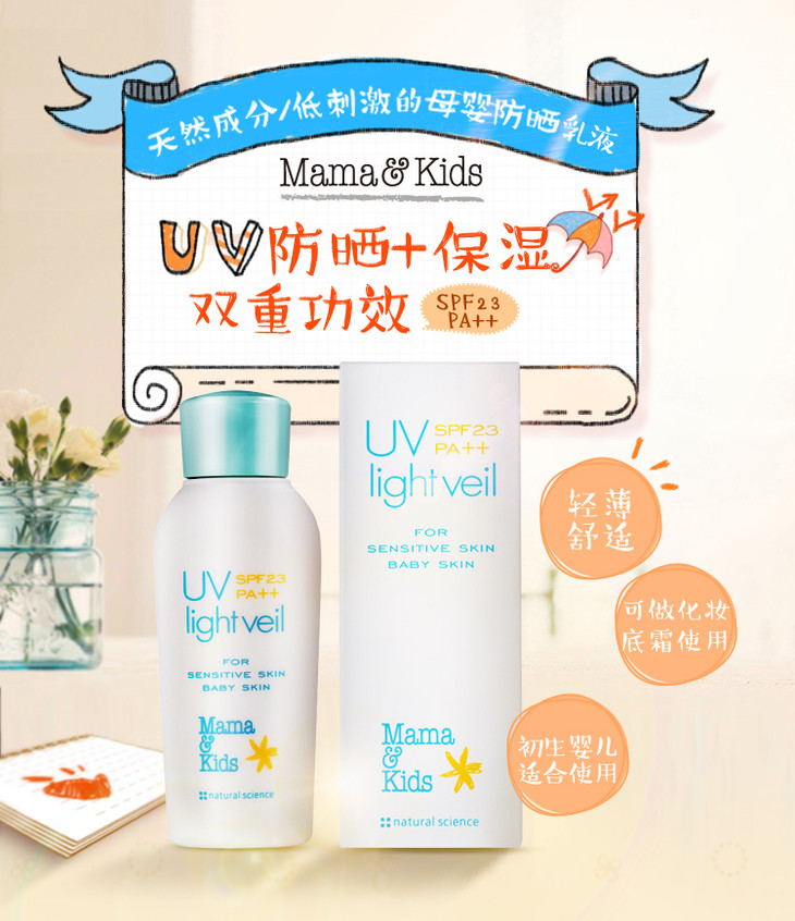 Mama & Kids UV防晒乳液婴儿补水保湿防晒霜防紫外线 SPF23 90ml