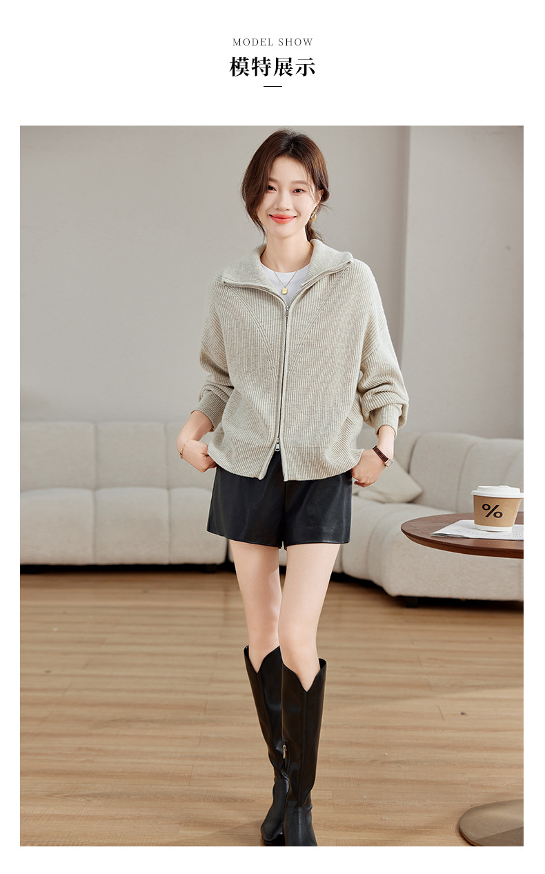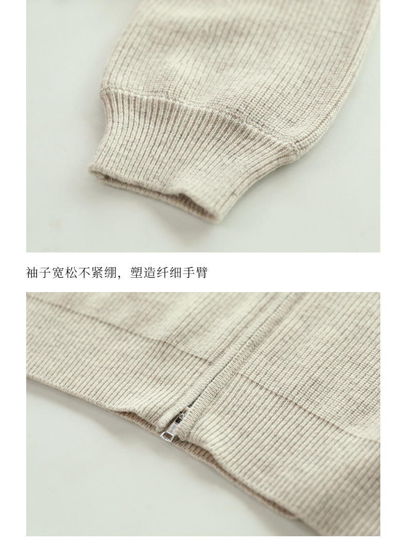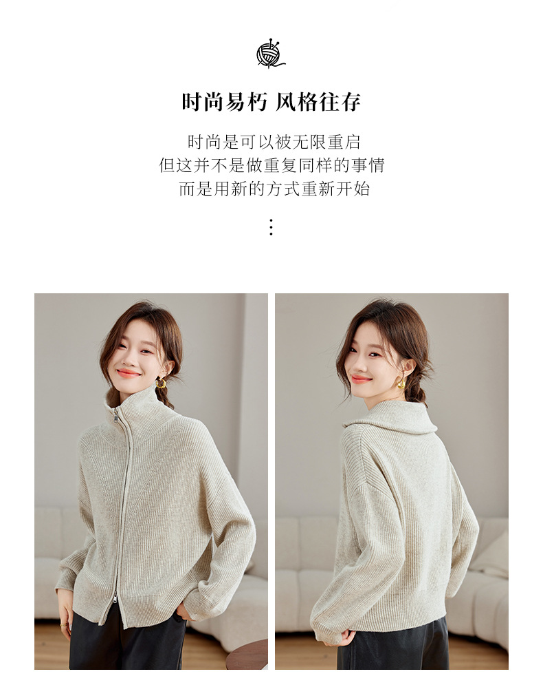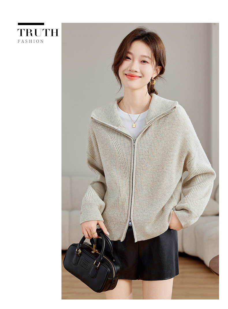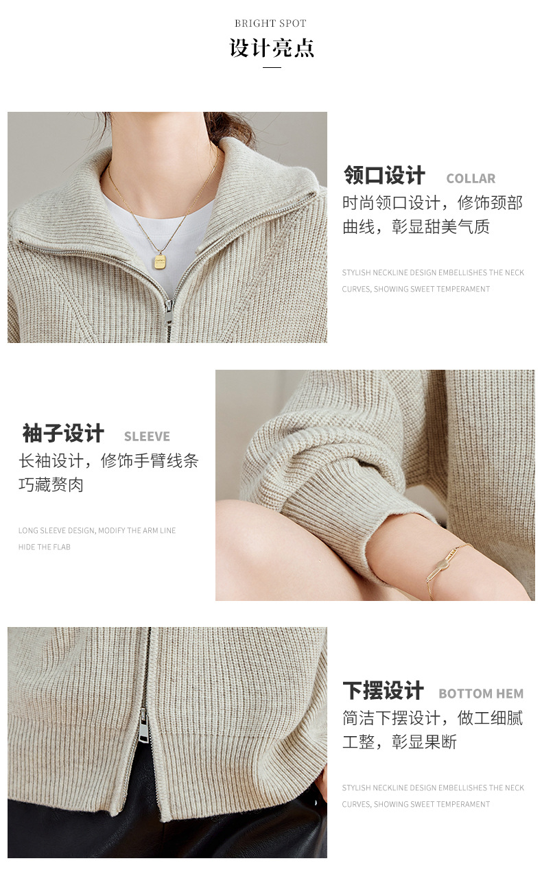 CC-SD2779羊毛衣外套女针织开衫软糯复古春秋季外穿拉链上衣通勤短款外套女