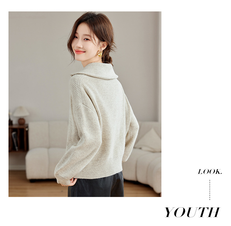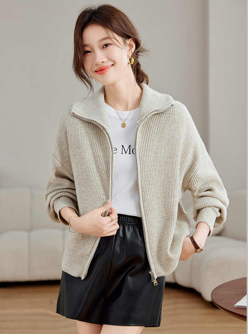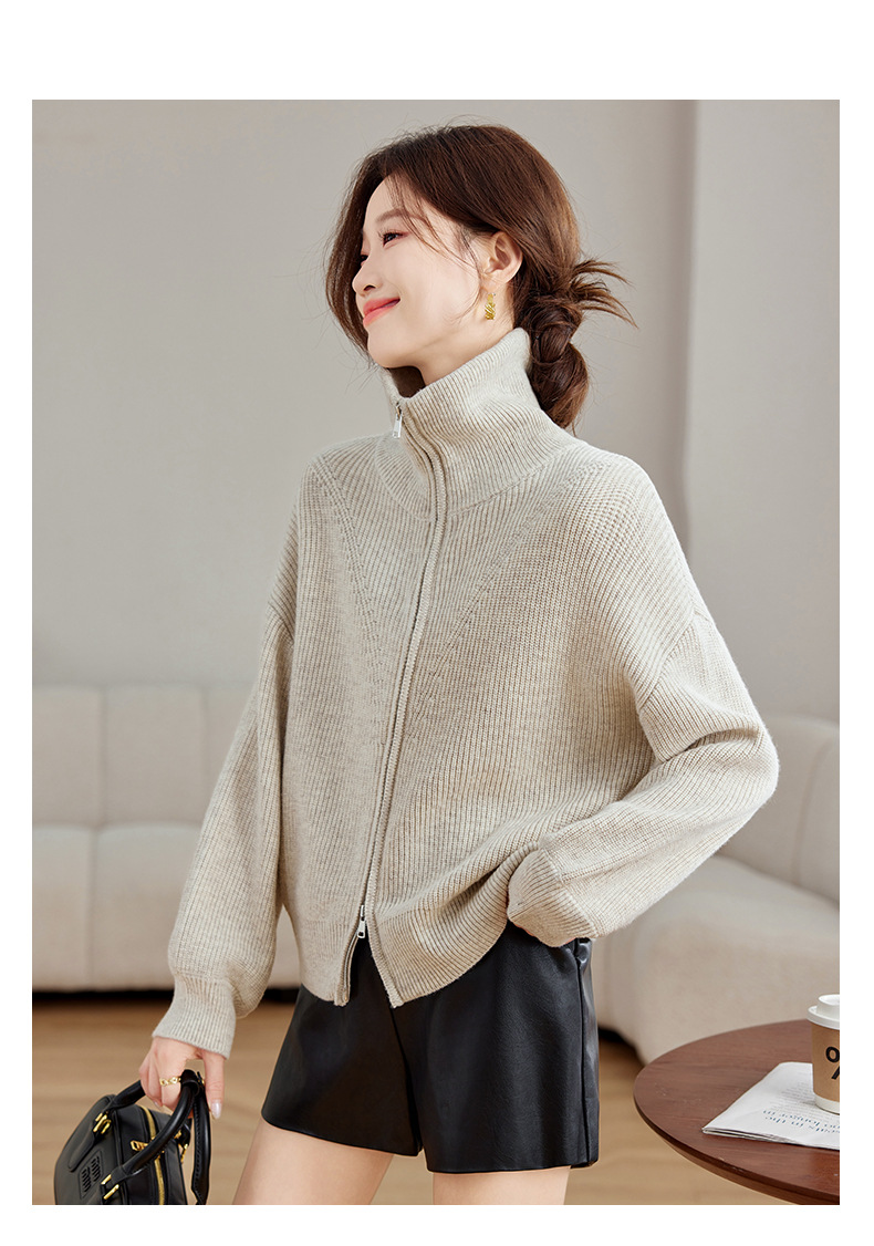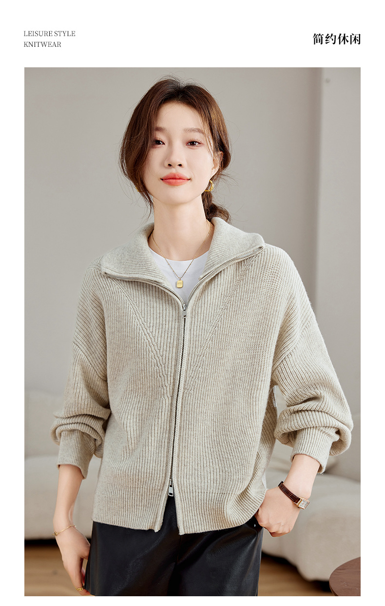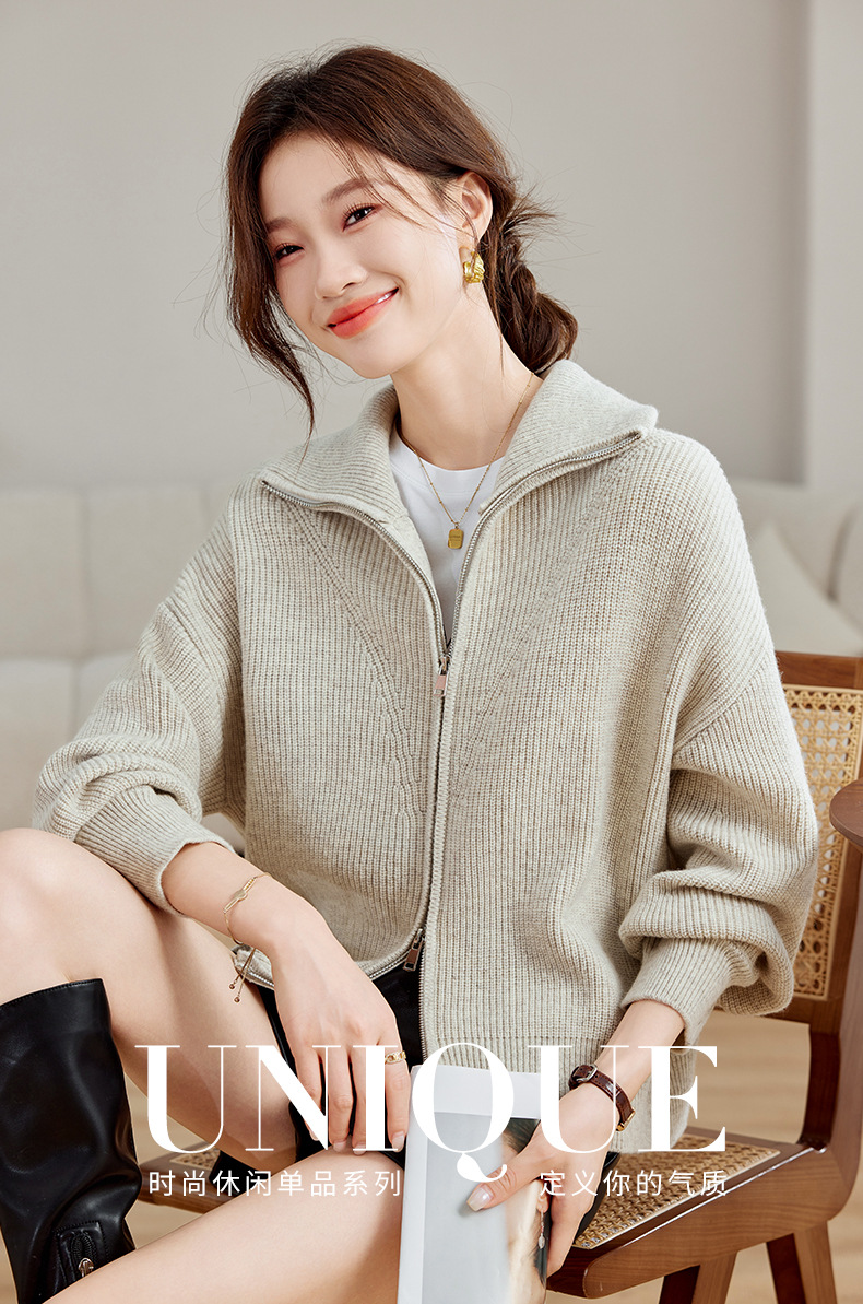 CC-SD2779羊毛衣外套女针织开衫软糯复古春秋季外穿拉链上衣通勤短款外套女
