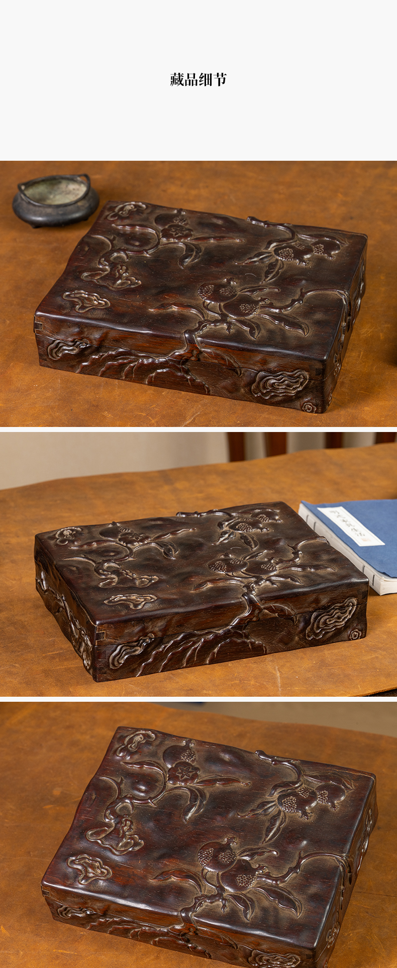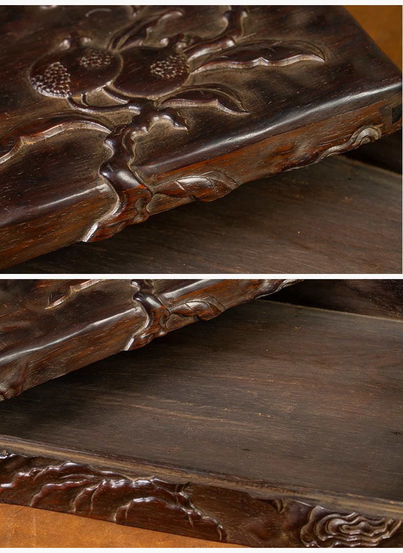 清 沈景修款端石狮纹辟雍砚(红木天地盖)