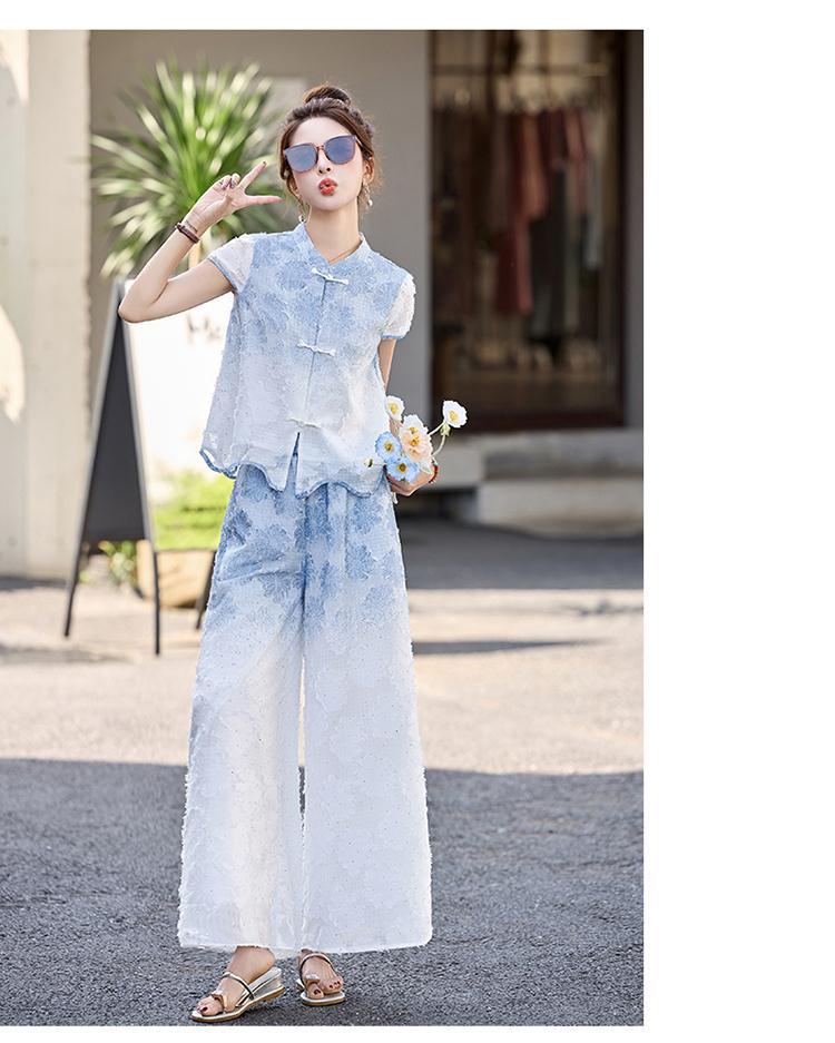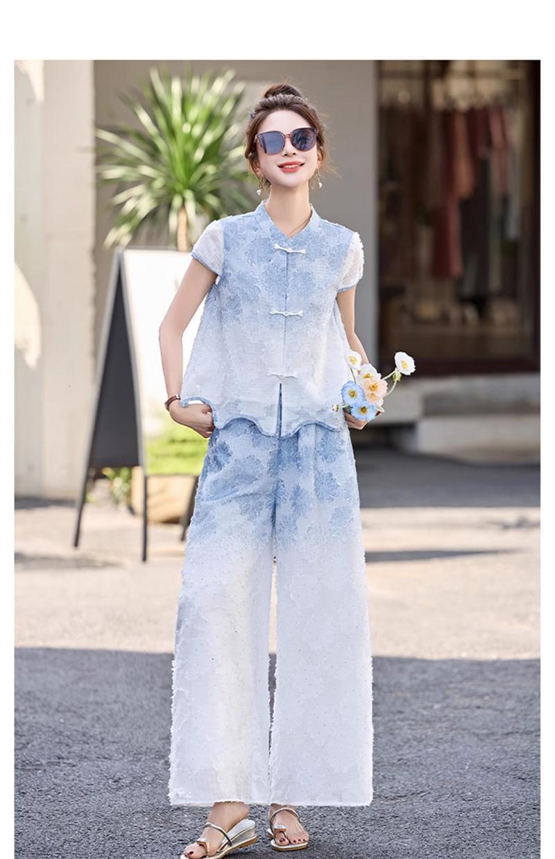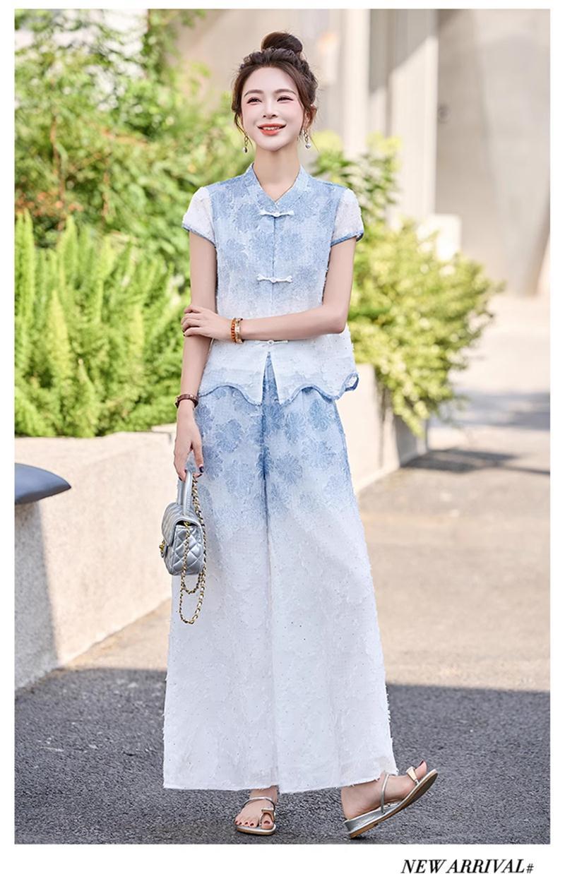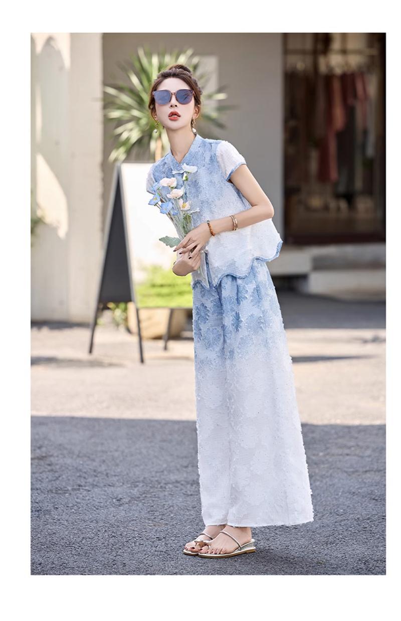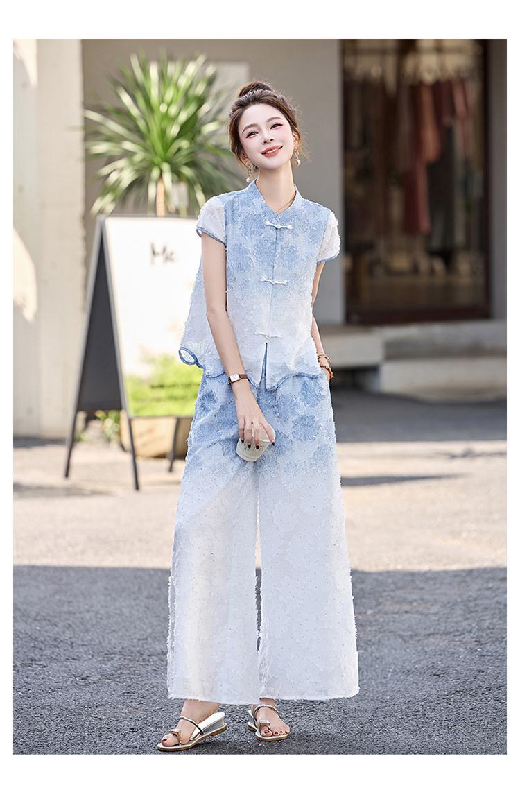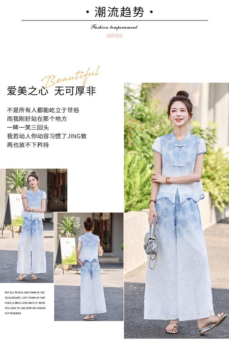 ZYI99902Q夏日绝美渐变套装女2025夏新款新中式国风提花气质阔腿裤两件套