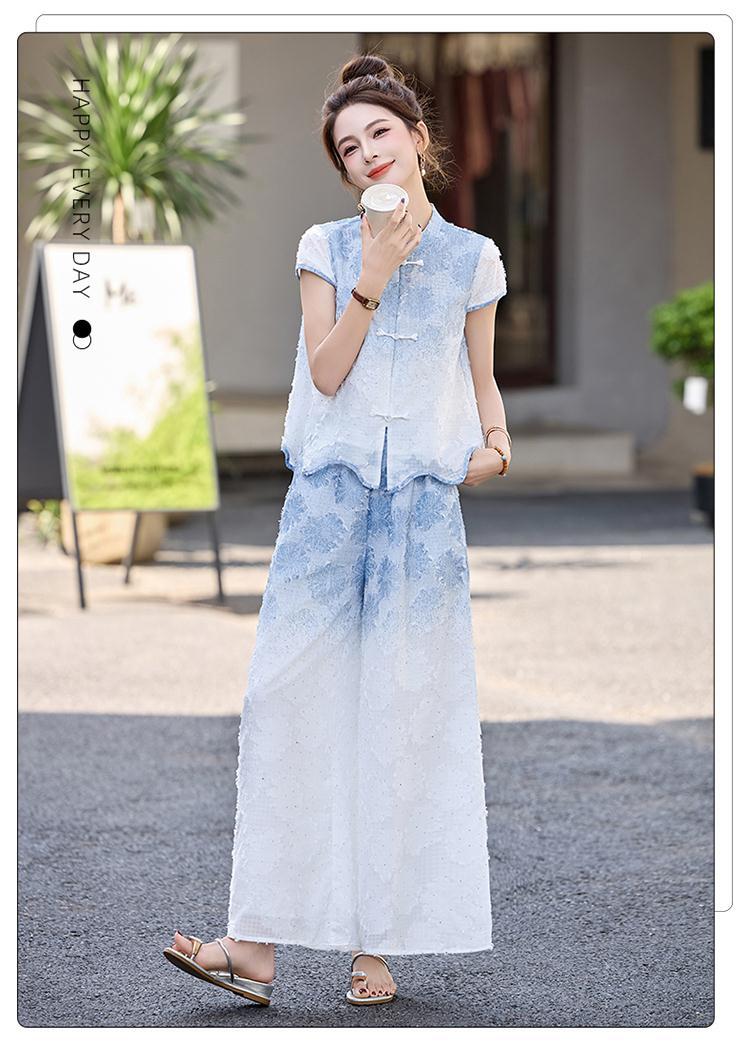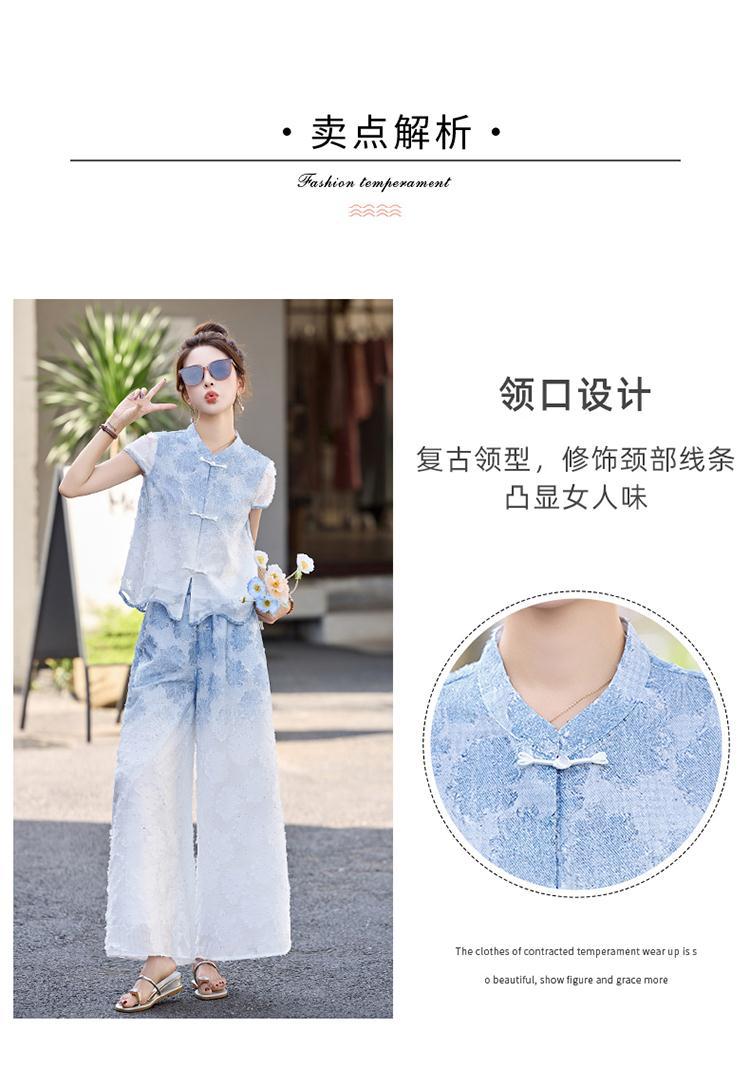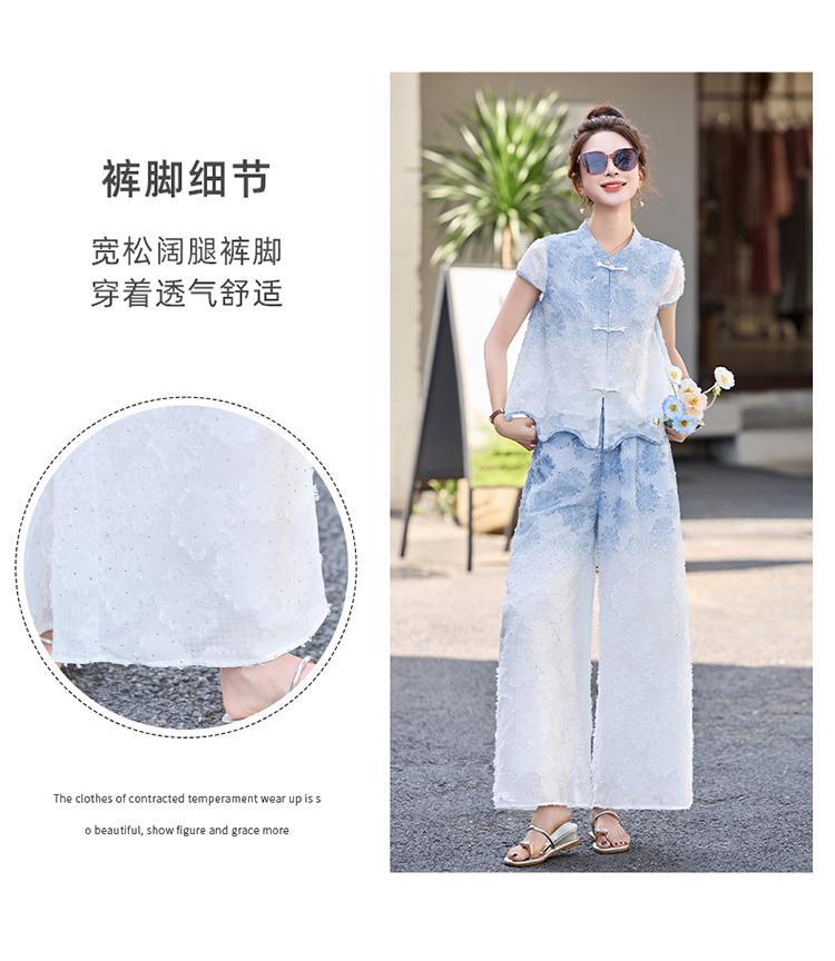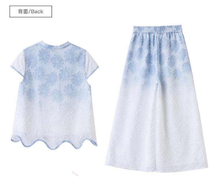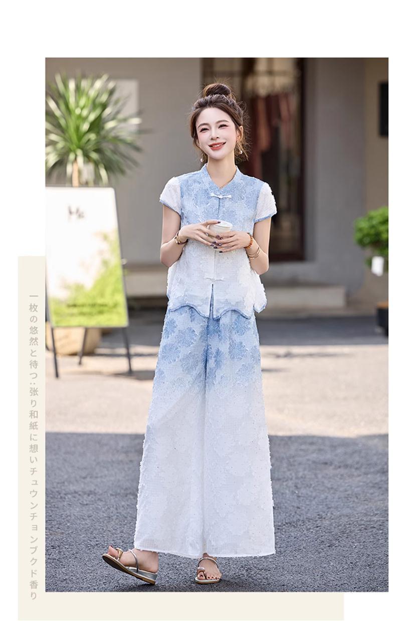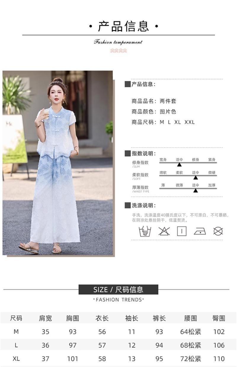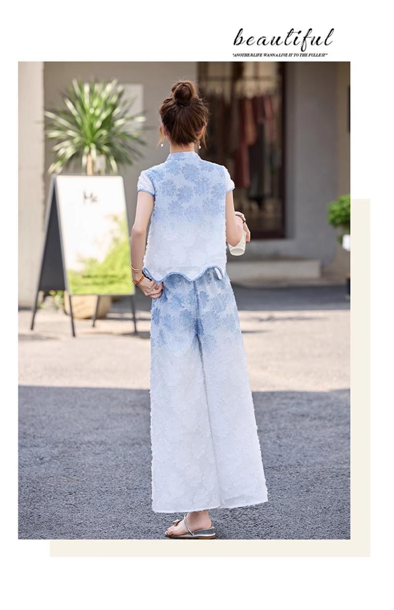 ZYI99902Q夏日绝美渐变套装女2025夏新款新中式国风提花气质阔腿裤两件套