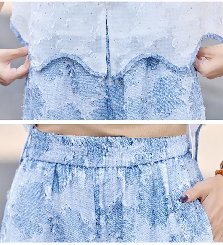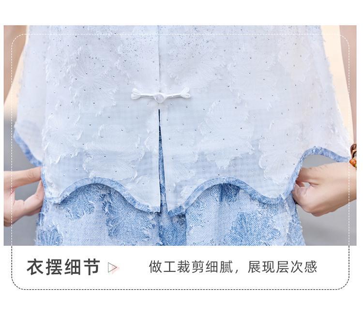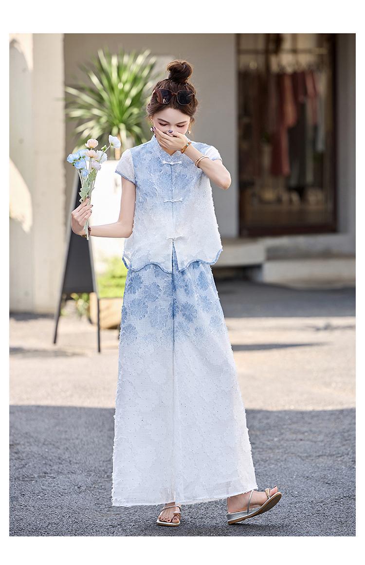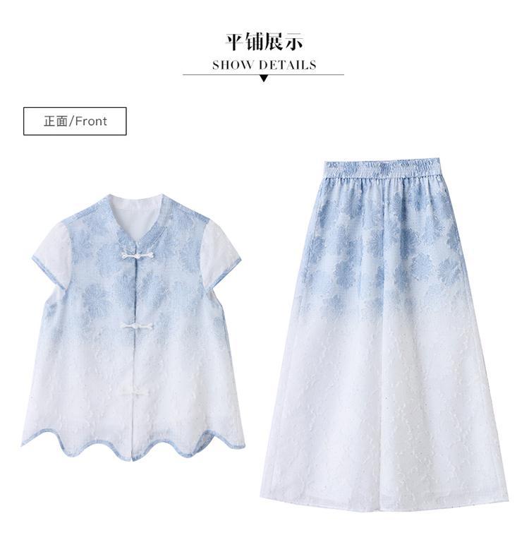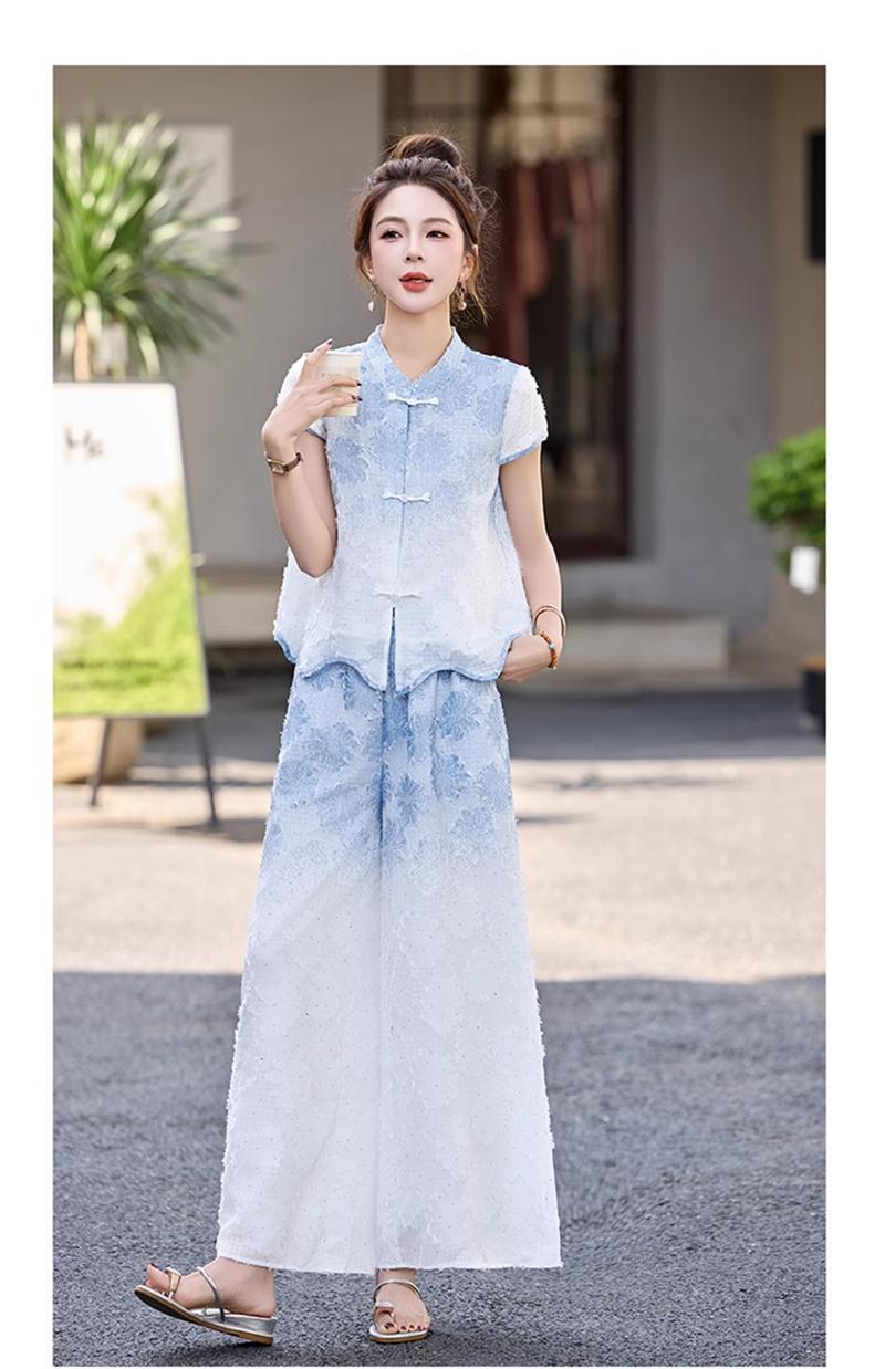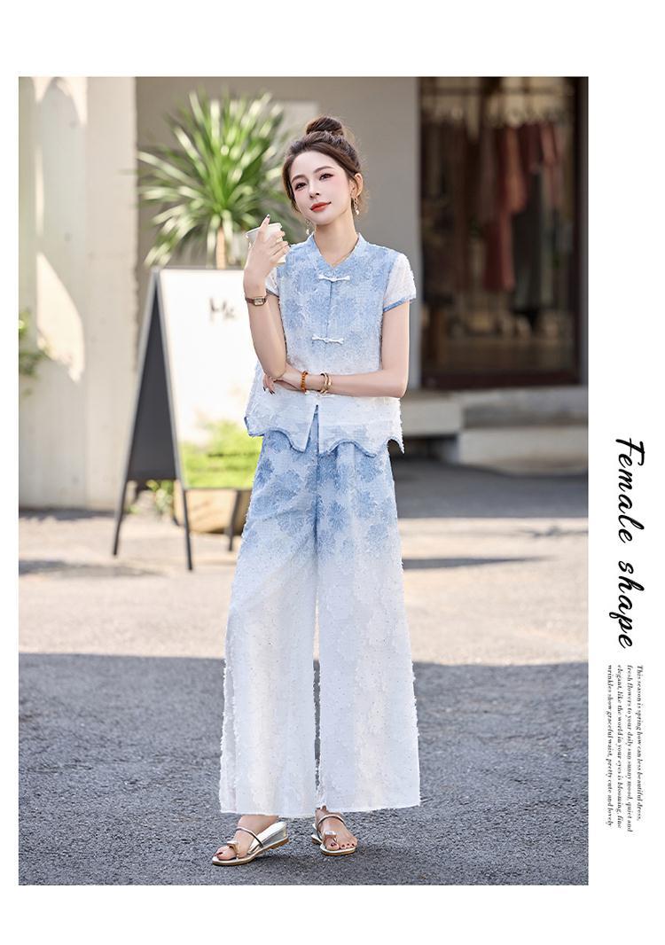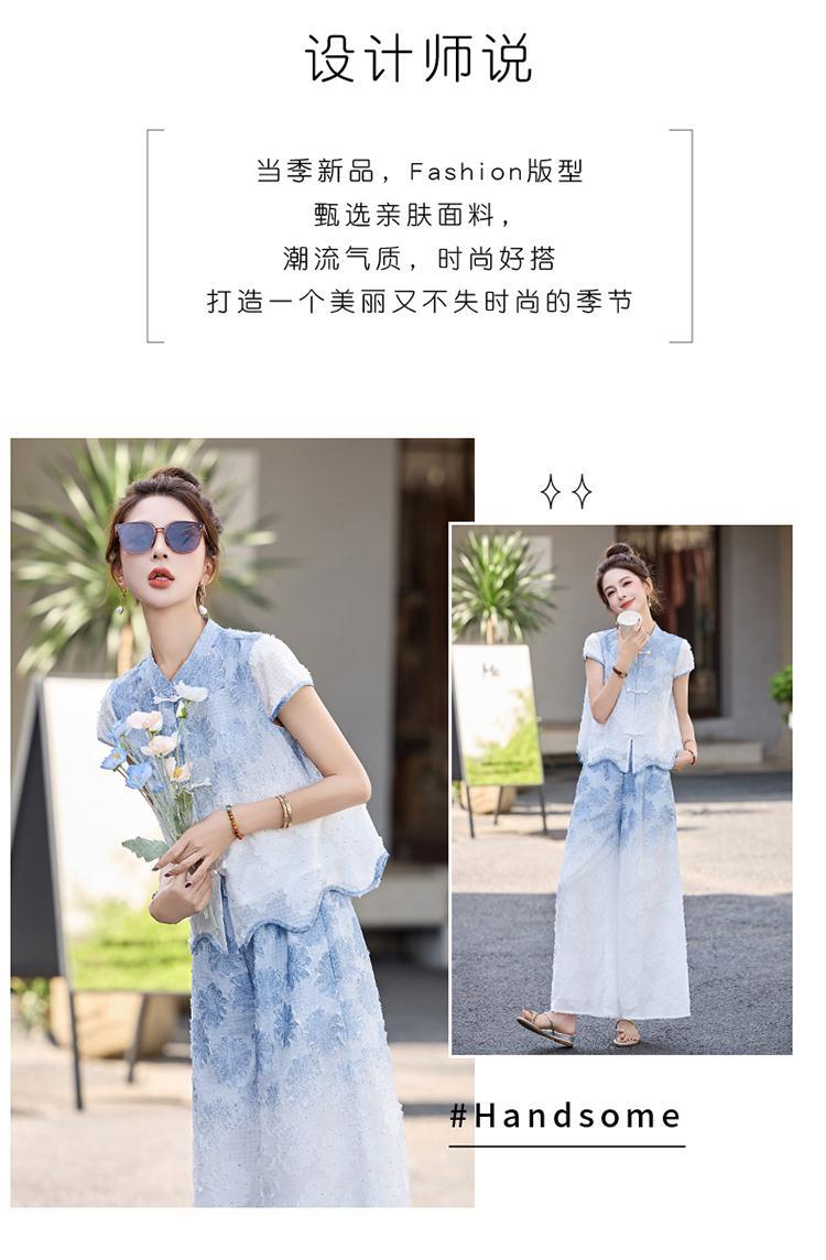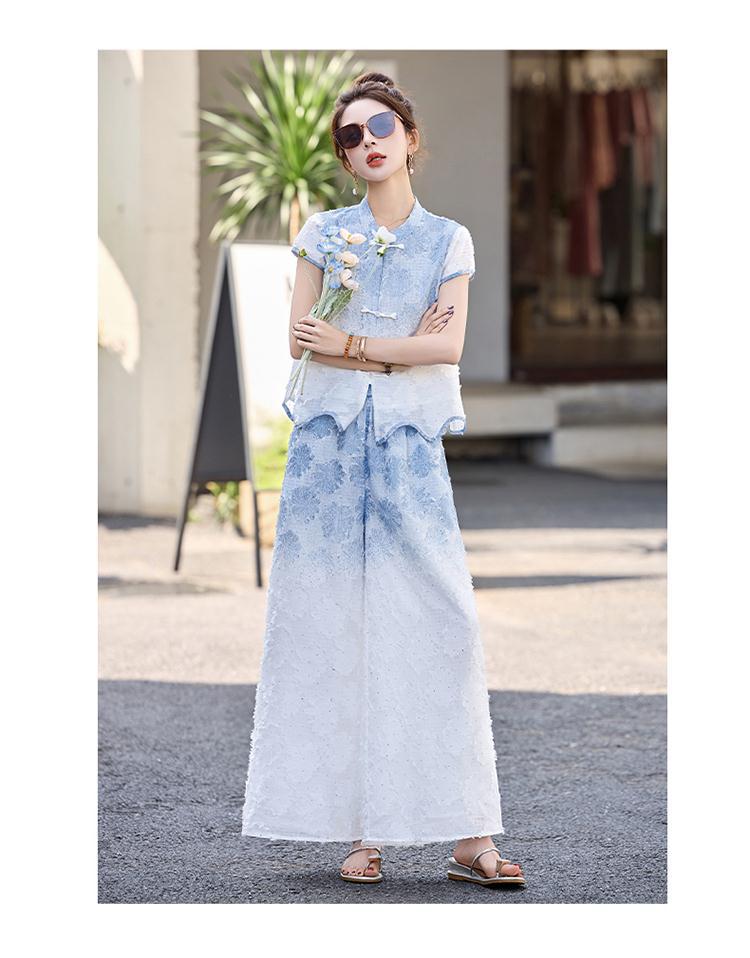 ZYI99902Q夏日绝美渐变套装女2025夏新款新中式国风提花气质阔腿裤两件套