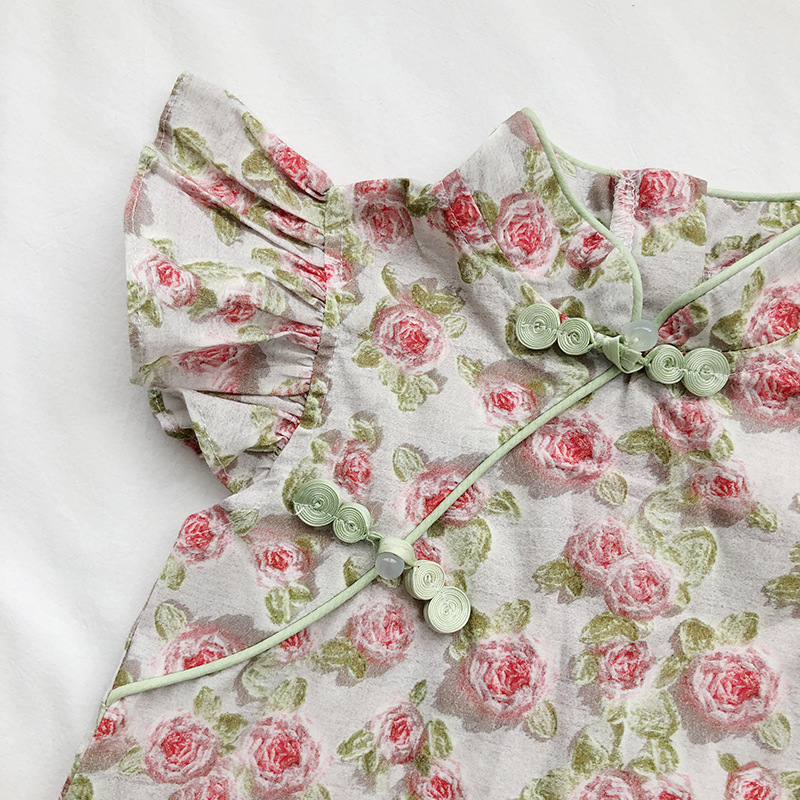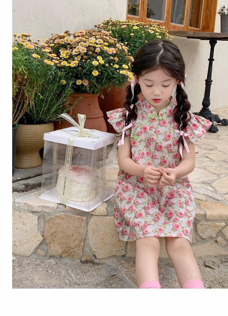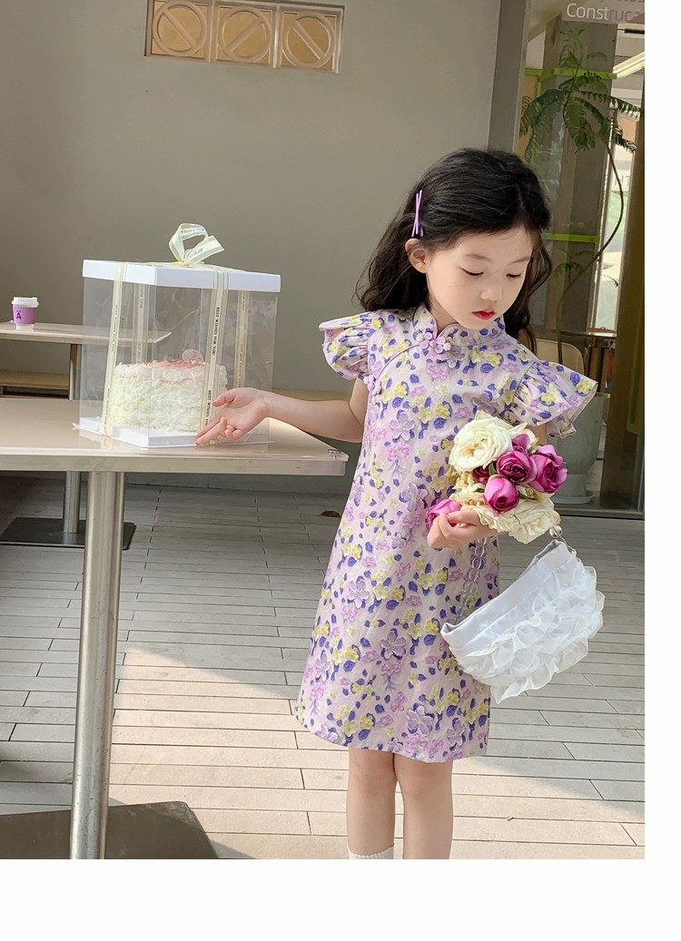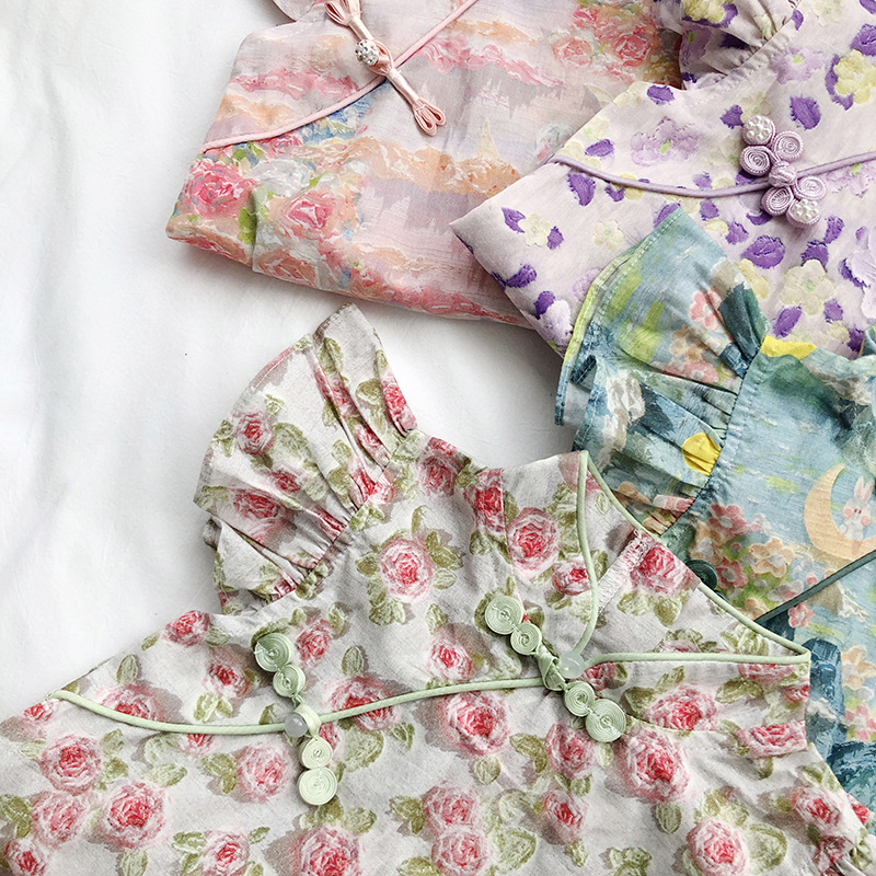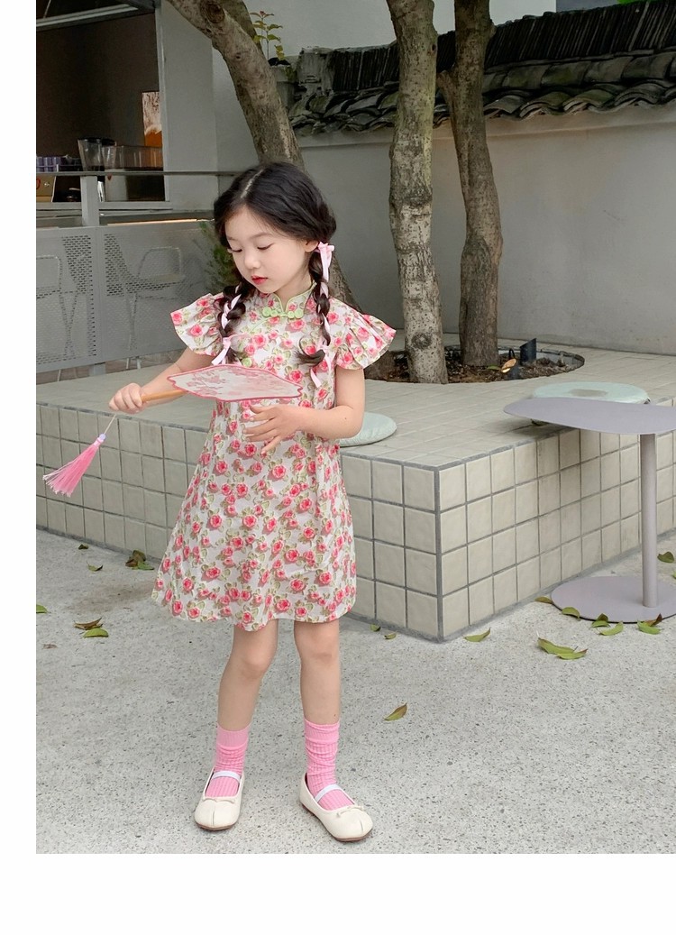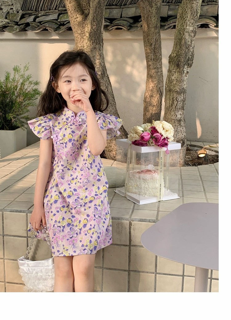 【童装儿童旗袍2023夏季新款】女童中国风纯棉印花飞袖连衣裙,舒适透气不变形起球,时尚复古好穿搭,复古经典小清新风-SH