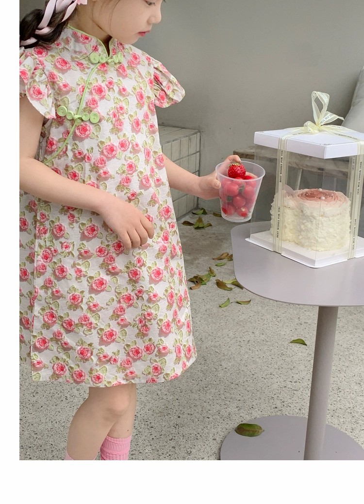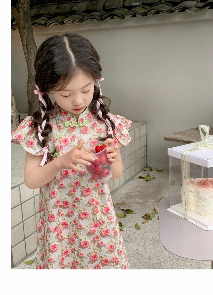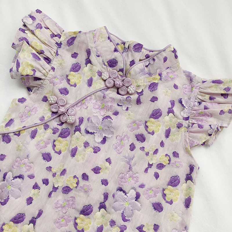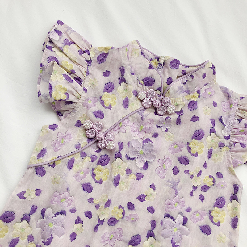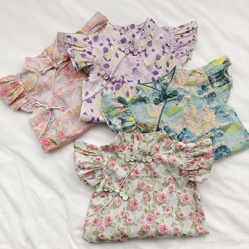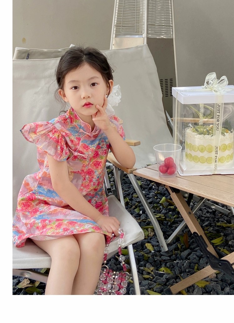 【童装儿童旗袍2023夏季新款】女童中国风纯棉印花飞袖连衣裙,舒适透气不变形起球,时尚复古好穿搭,复古经典小清新风-SH