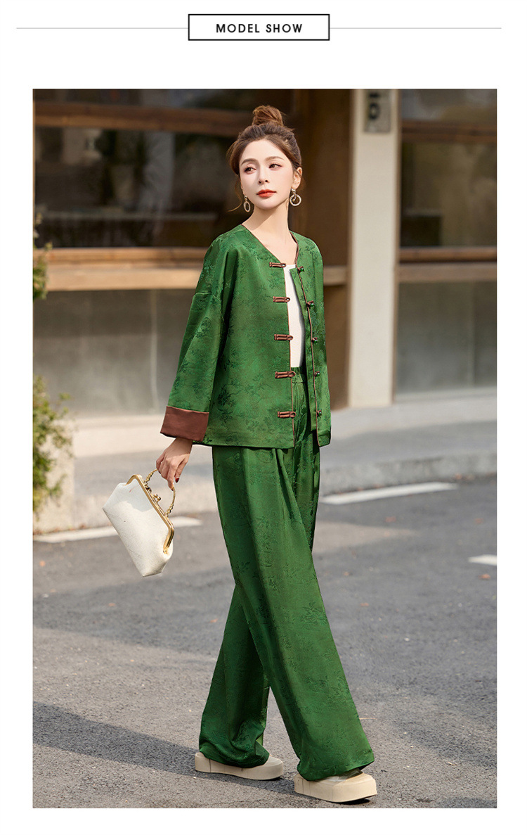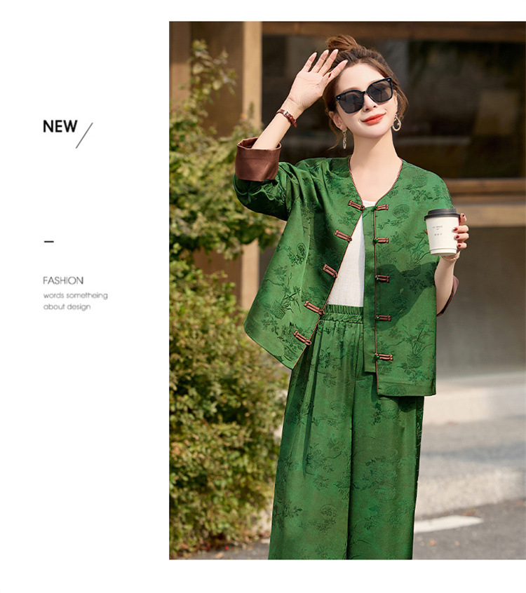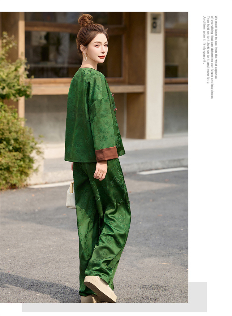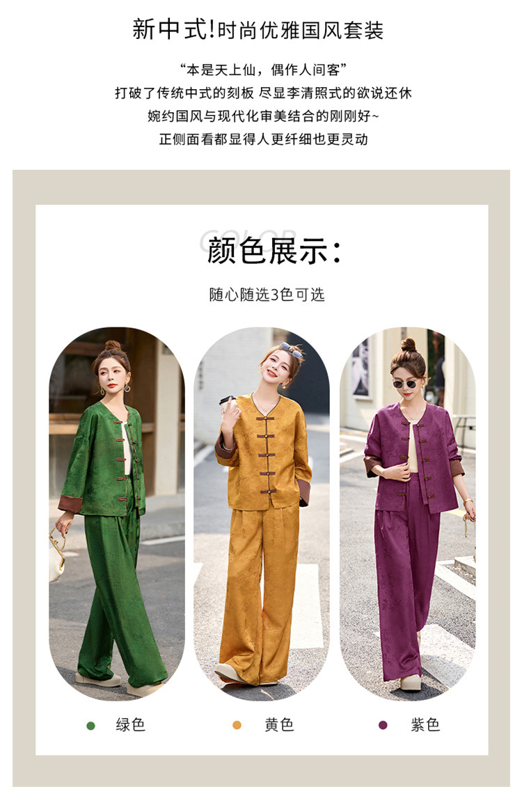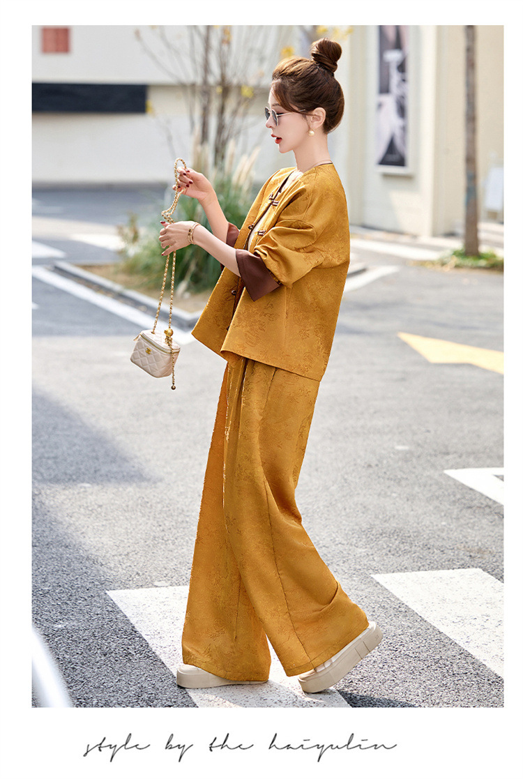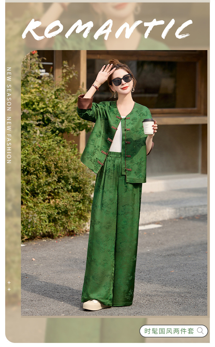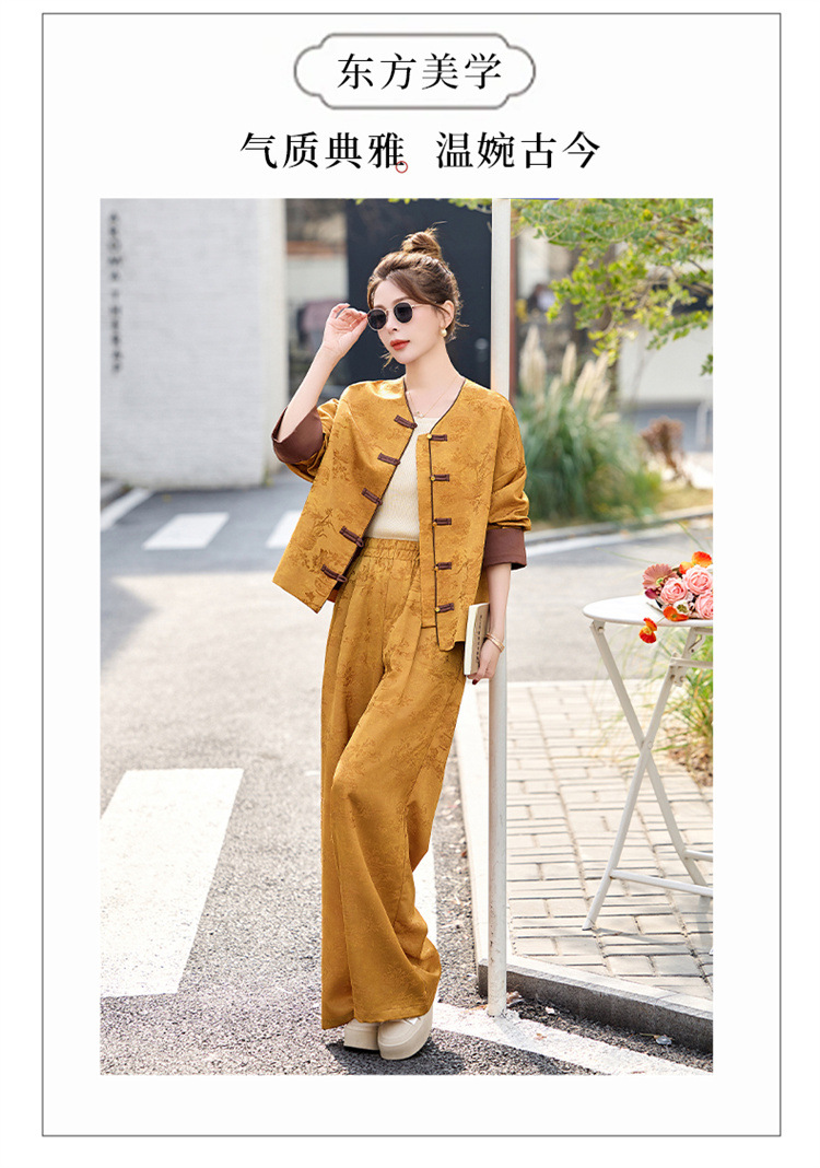 HR-GJC2512新中式两件套裤春季2025新款女装国风盘扣提花复古时尚休闲套装