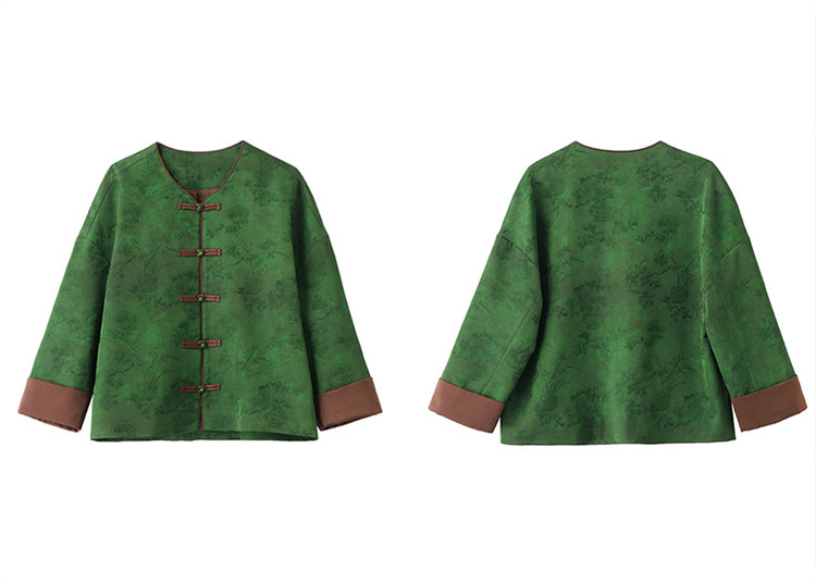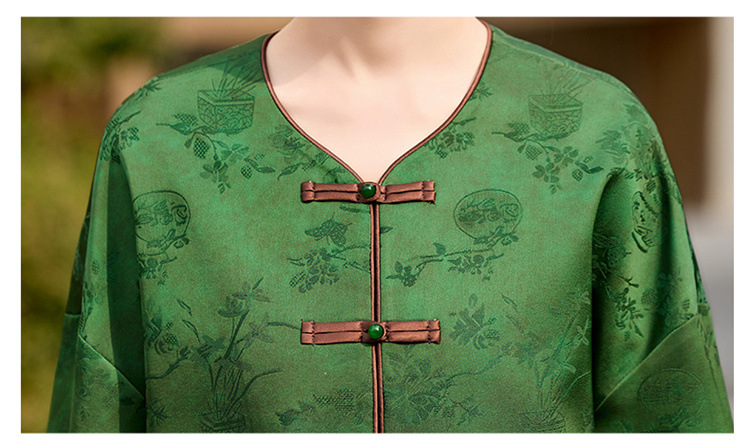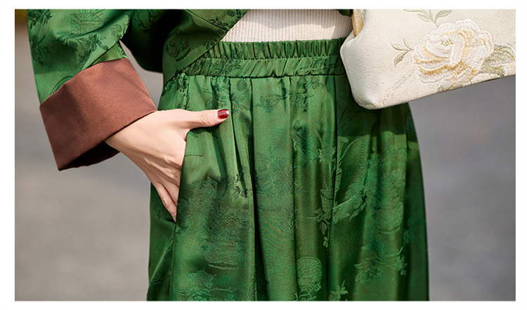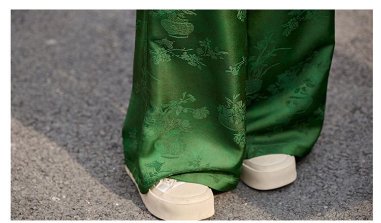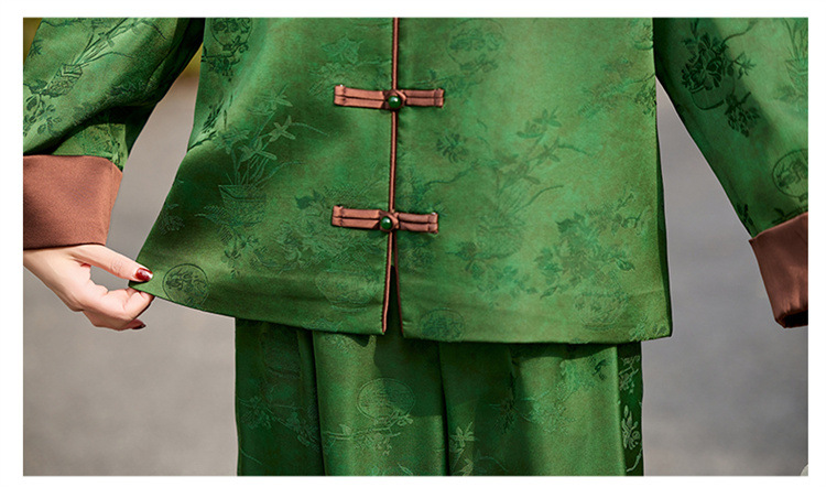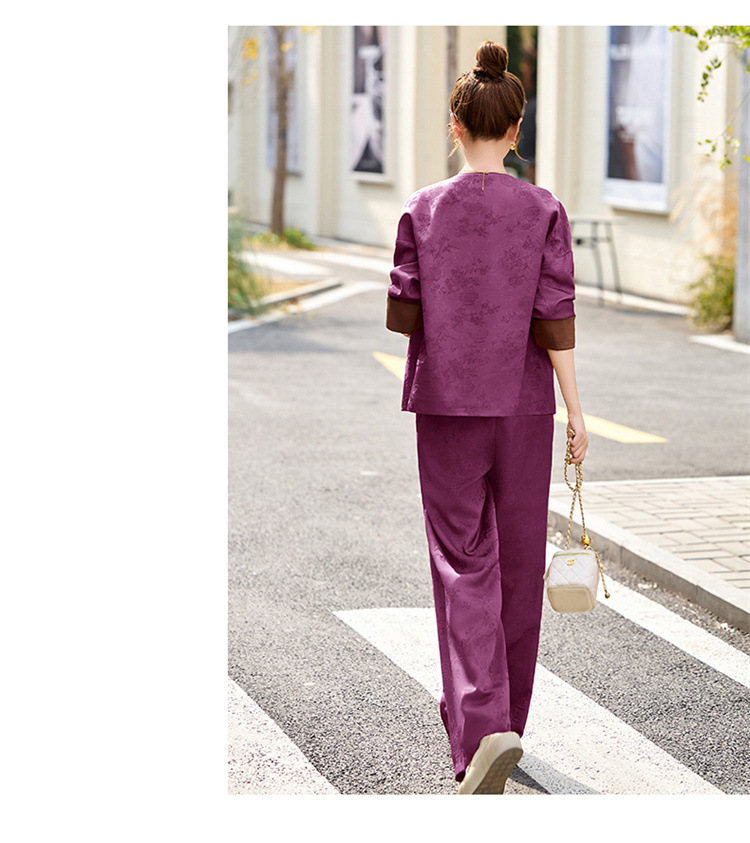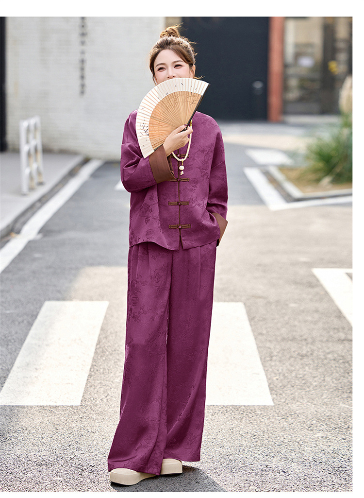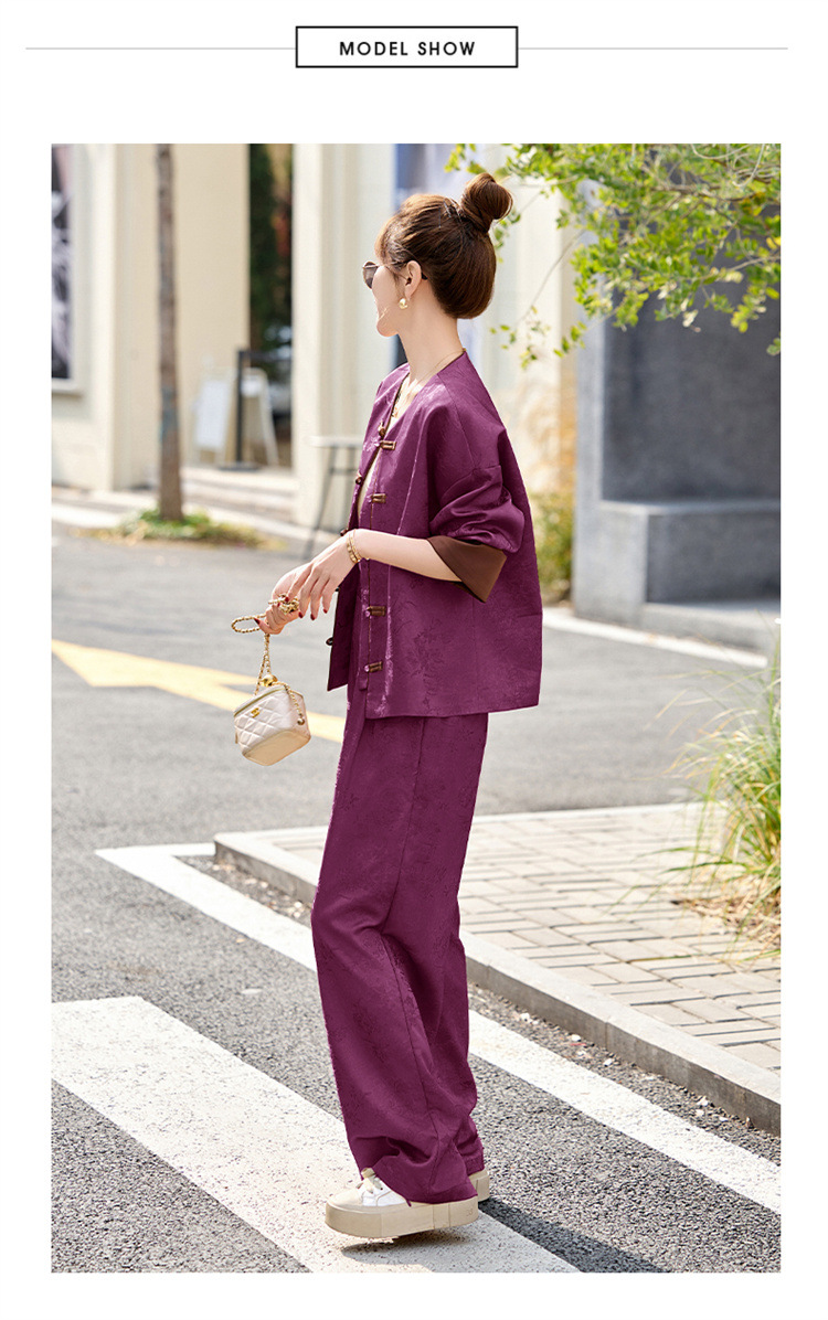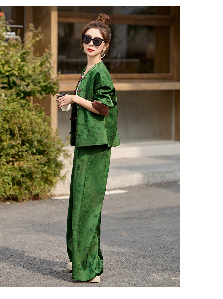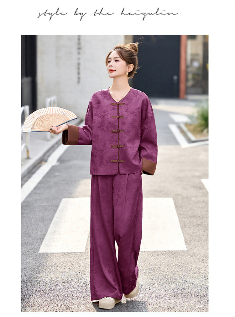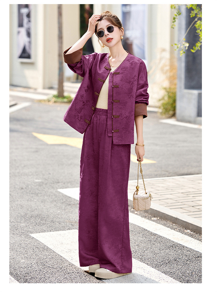 HR-GJC2512新中式两件套裤春季2025新款女装国风盘扣提花复古时尚休闲套装