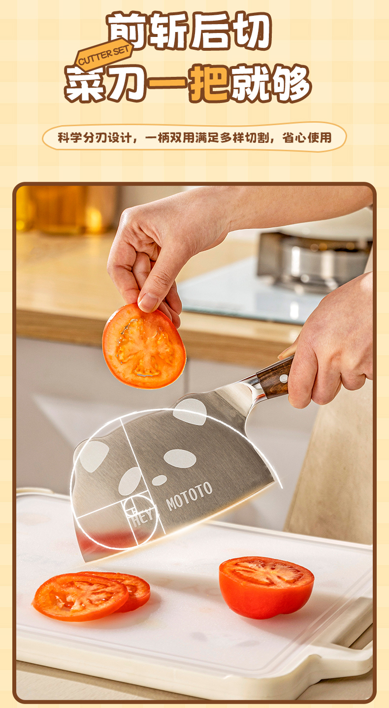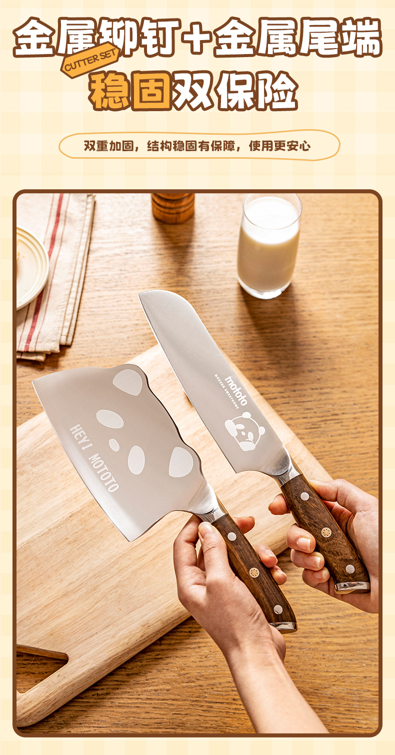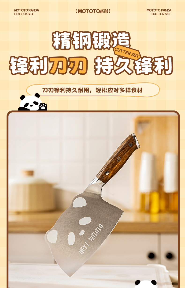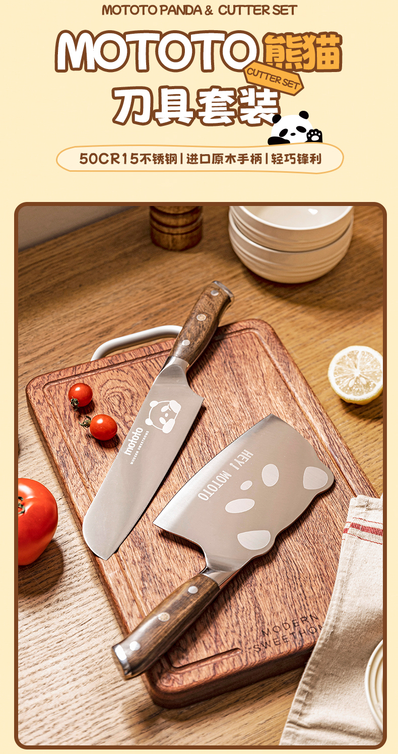 摩登主妇mototo熊猫菜刀家用切菜刀切肉斩切刀三德刀辅食刀具套装