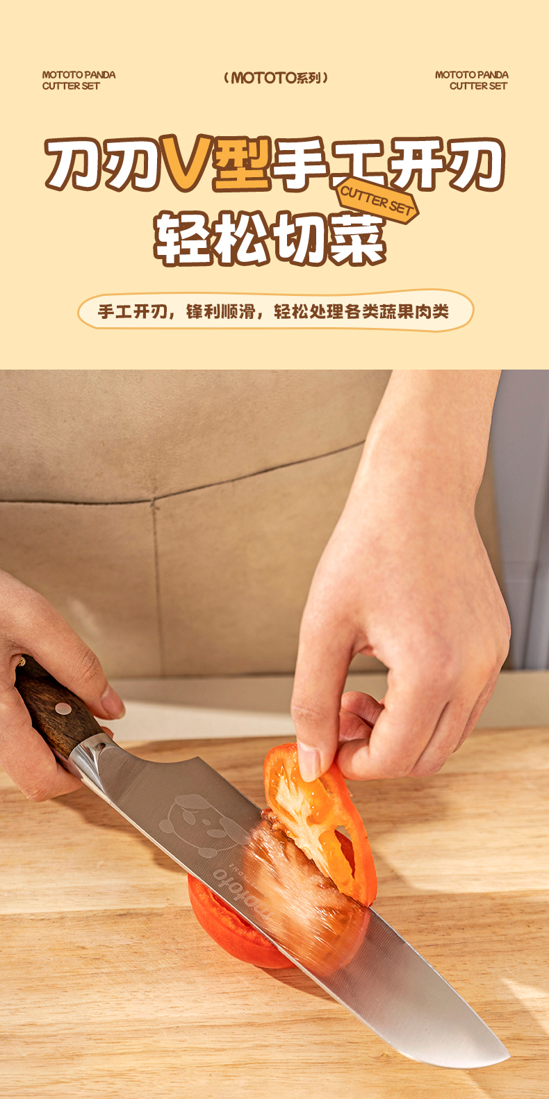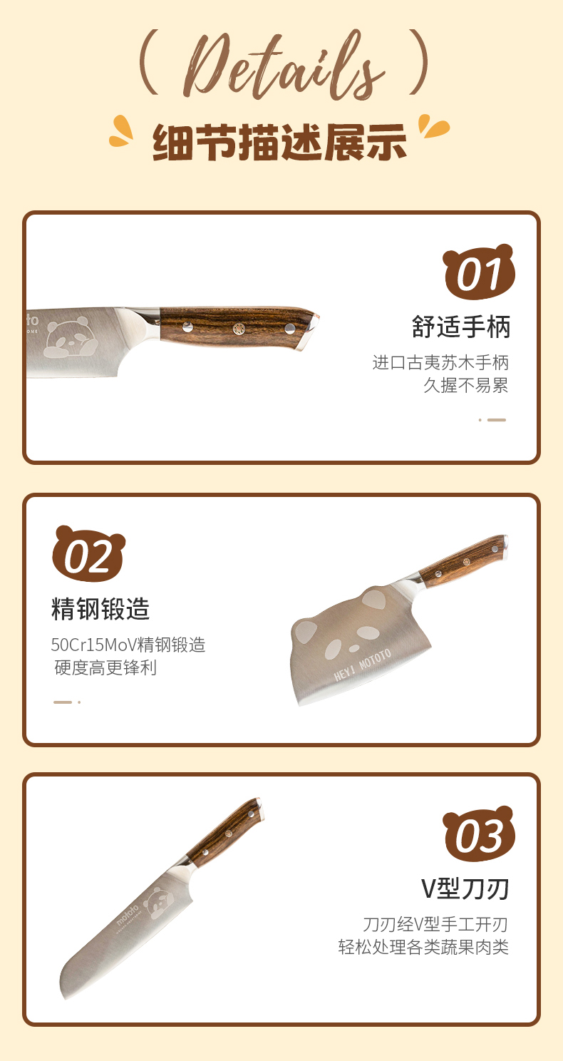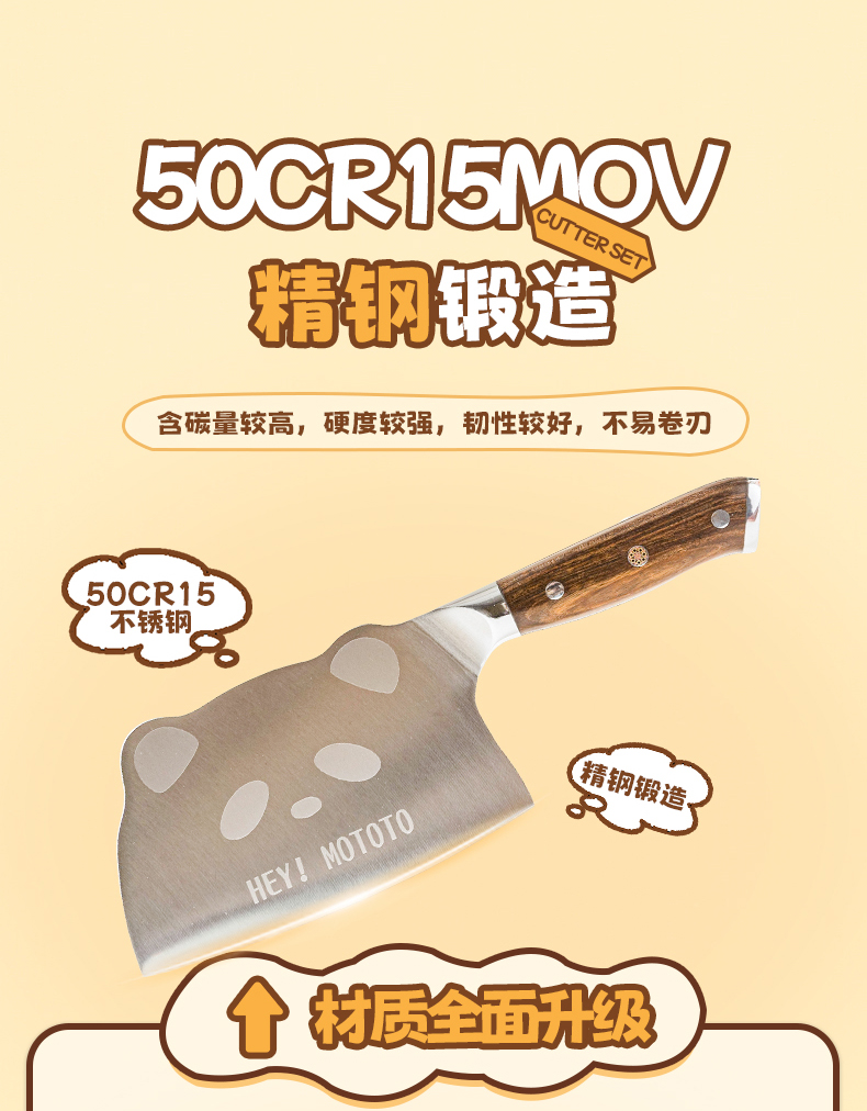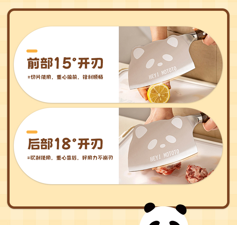 摩登主妇mototo熊猫菜刀家用切菜刀切肉斩切刀三德刀辅食刀具套装