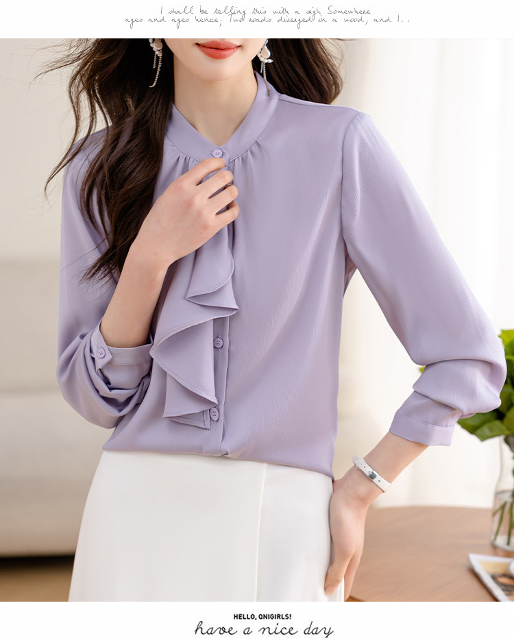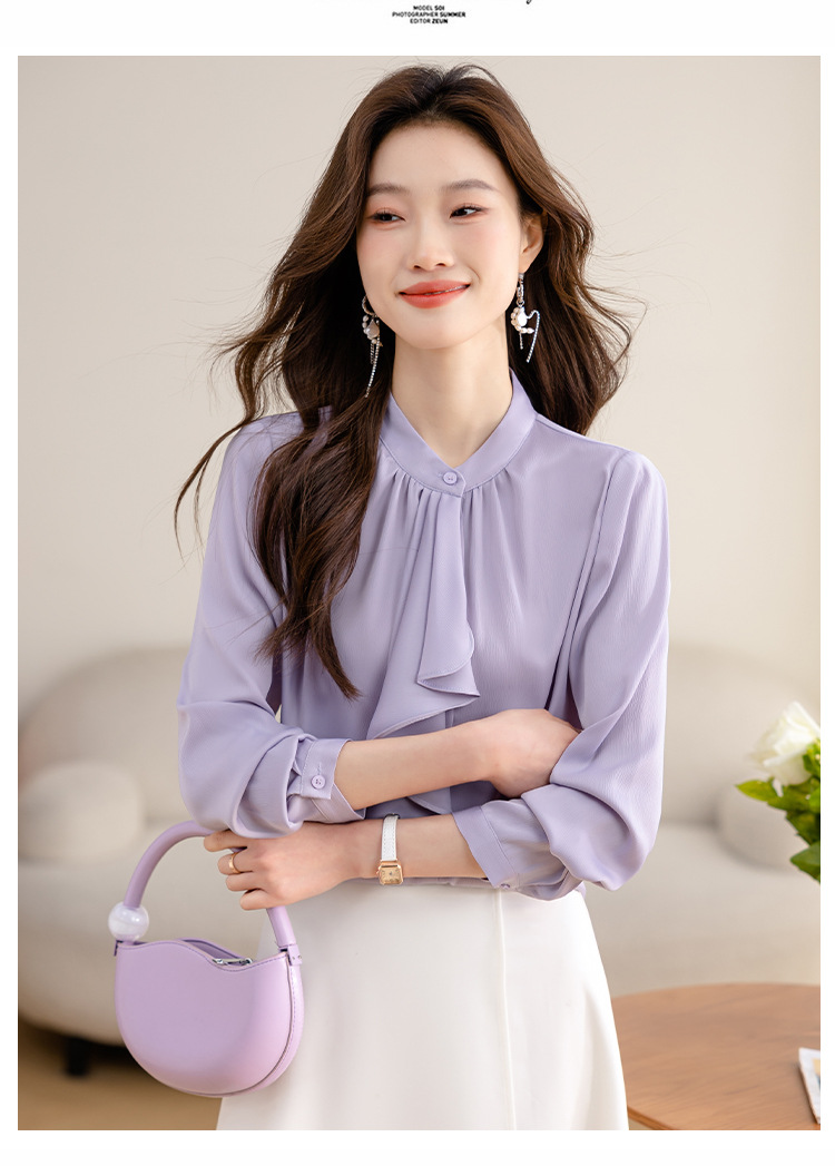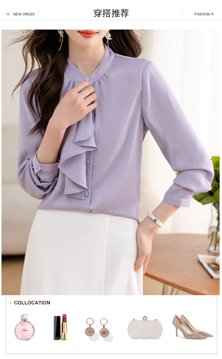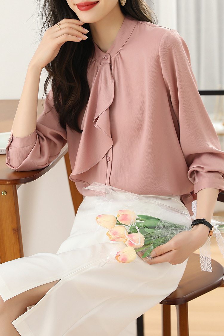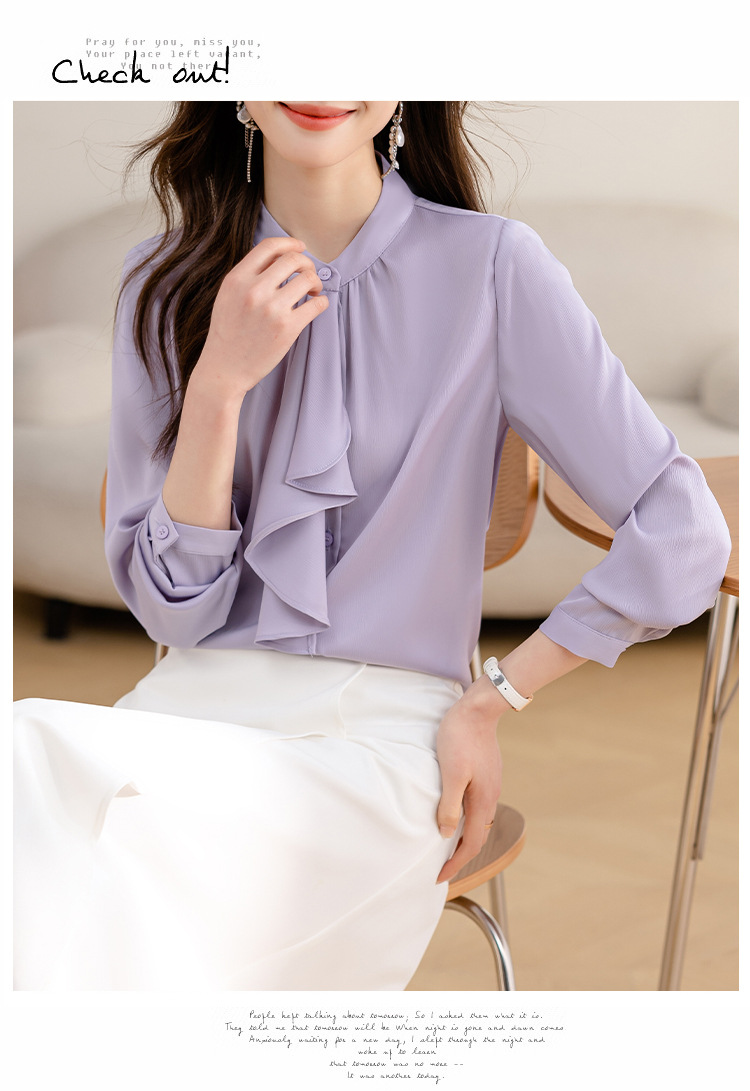 MZ14069法式优雅荷叶飘带衬气质通勤衬衣