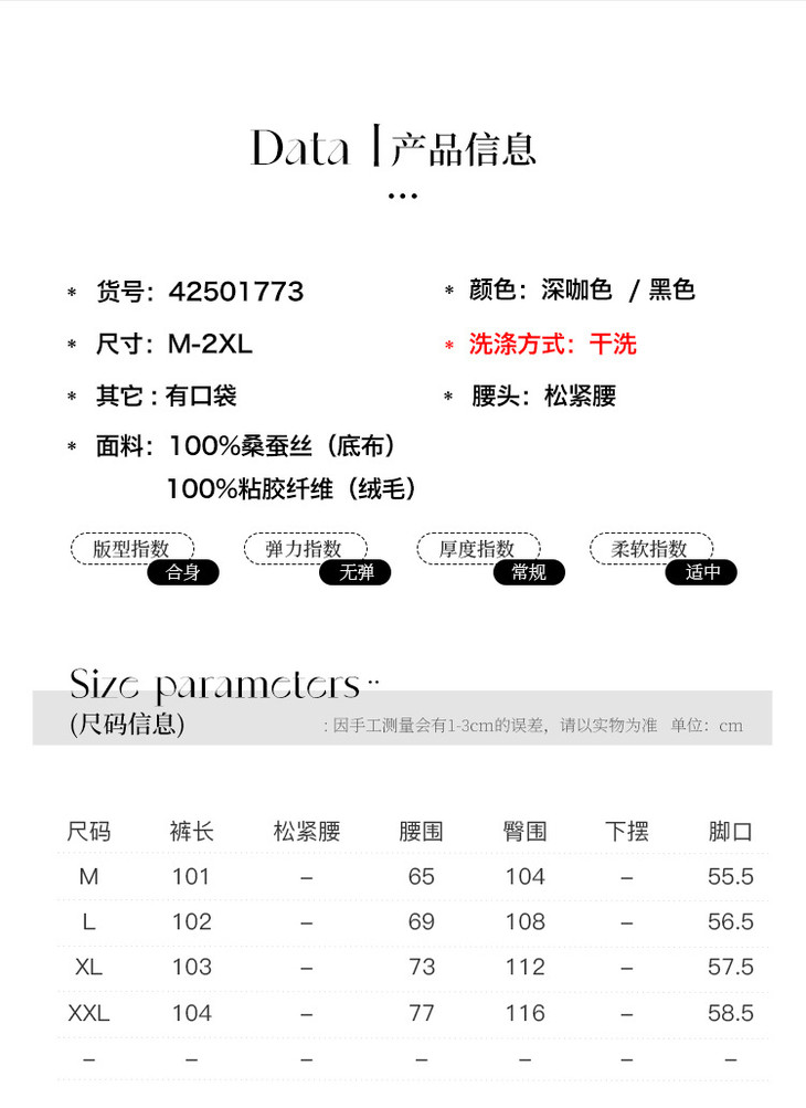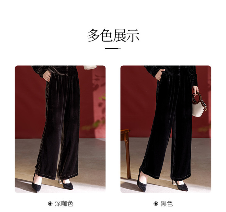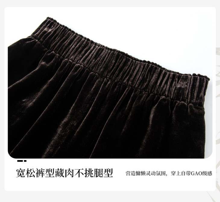 真丝丝绒阔腿裤,高腰垂感显瘦桑蚕丝直筒休闲裤SM-42501773