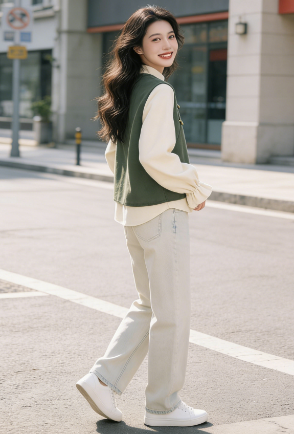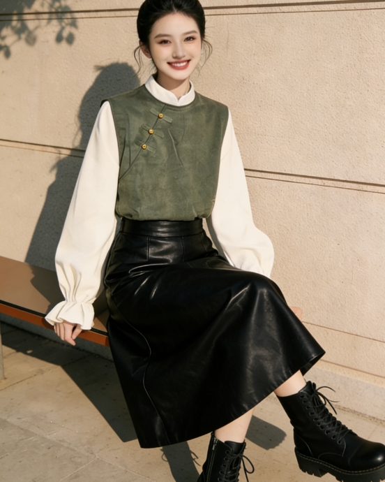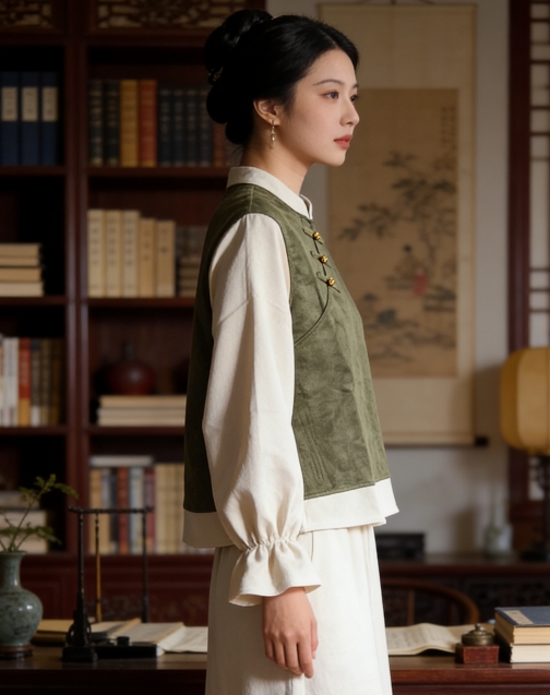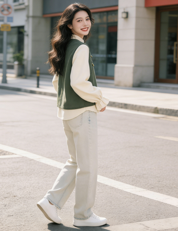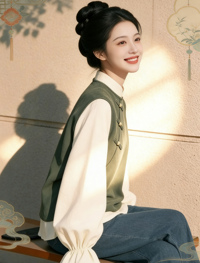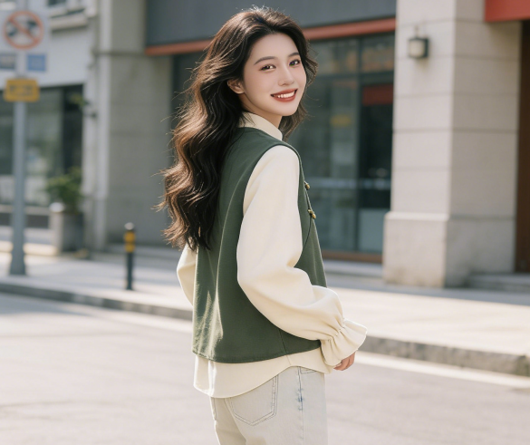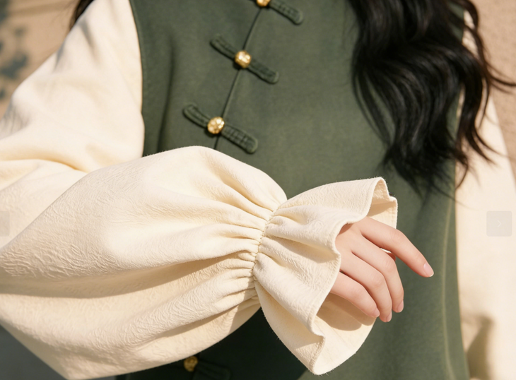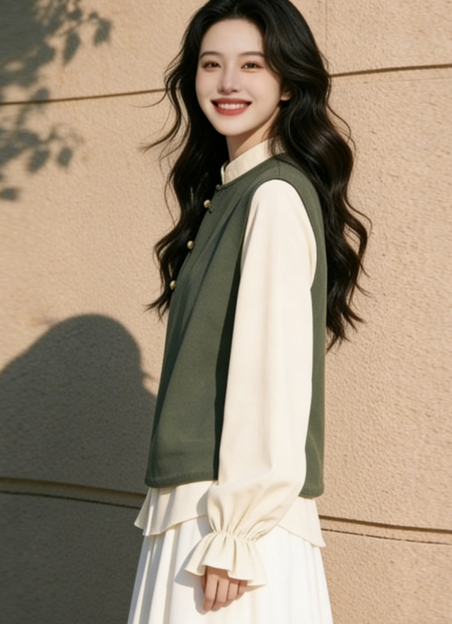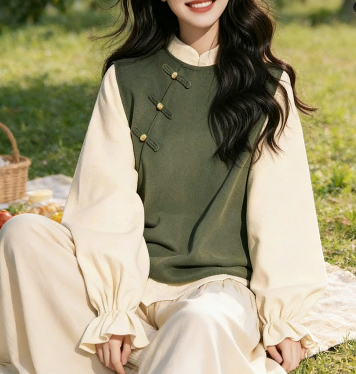 【春季新款新中式上衣】爆款时尚洋气 小个子韩系慵懒风 假两件绿色新中式卫衣