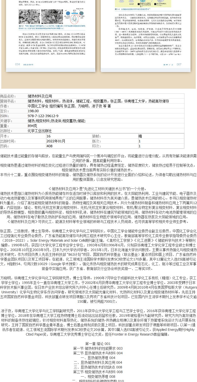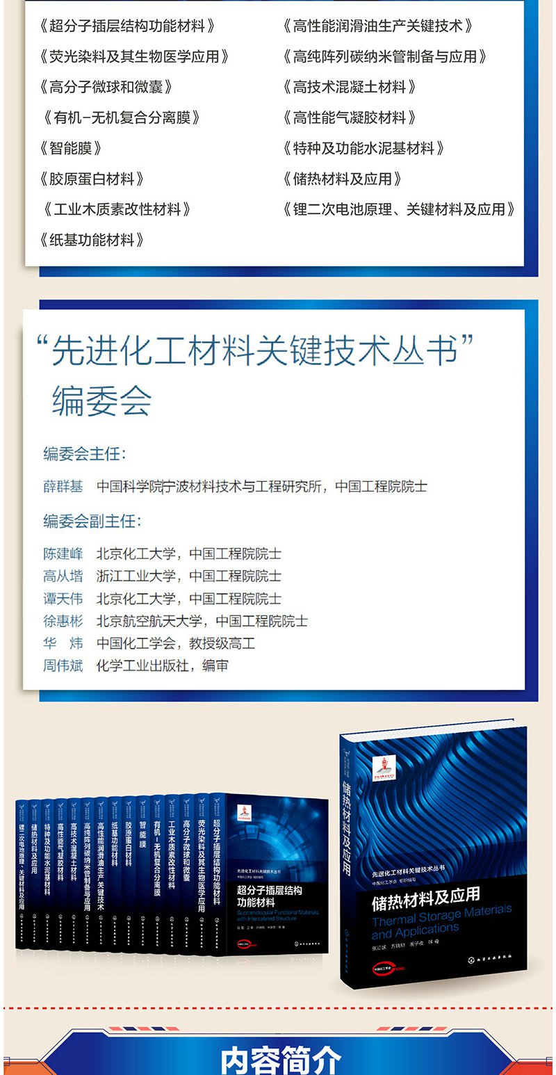 先进化工材料关键技术丛书 储热材料及应用 高性能相变储热材料制备 热物性调控及相关应用技术 化工能源及材料等专业应用技术书籍