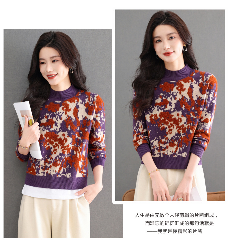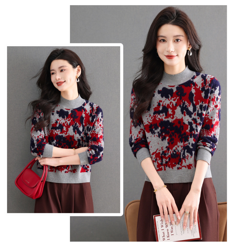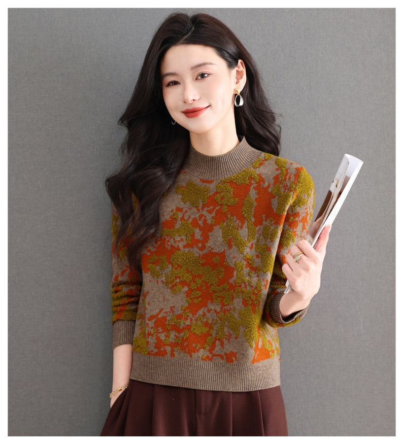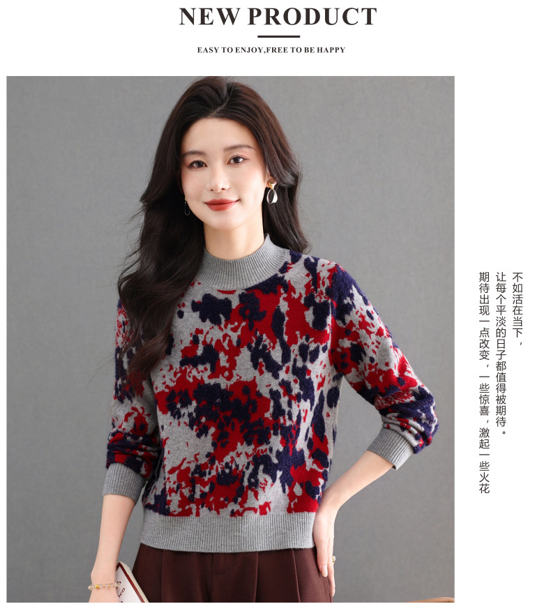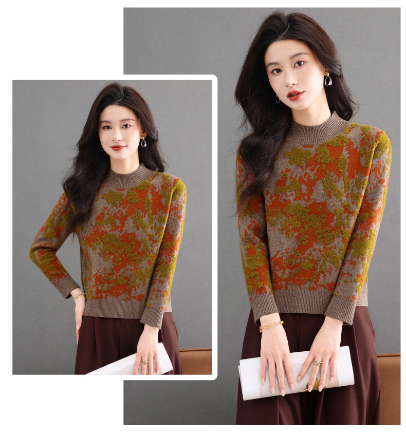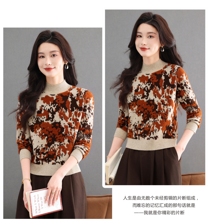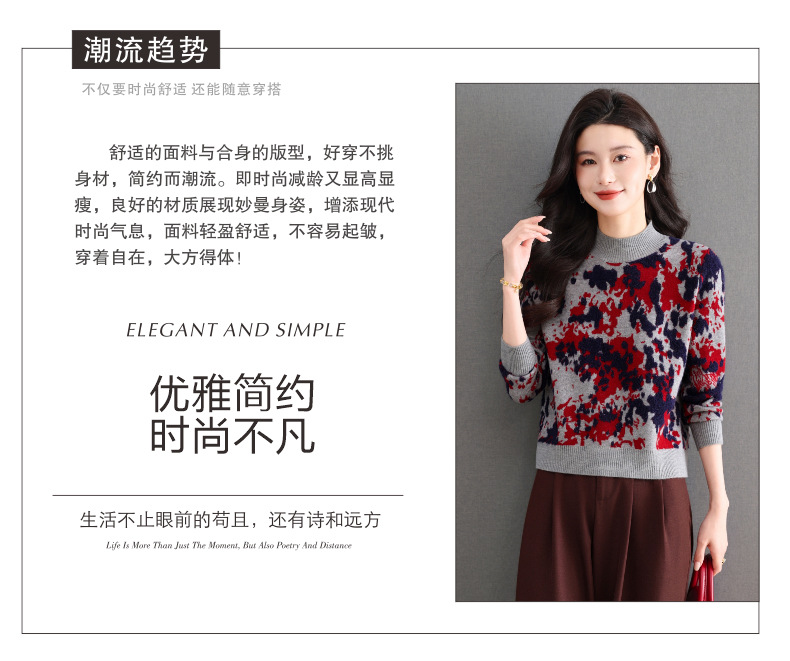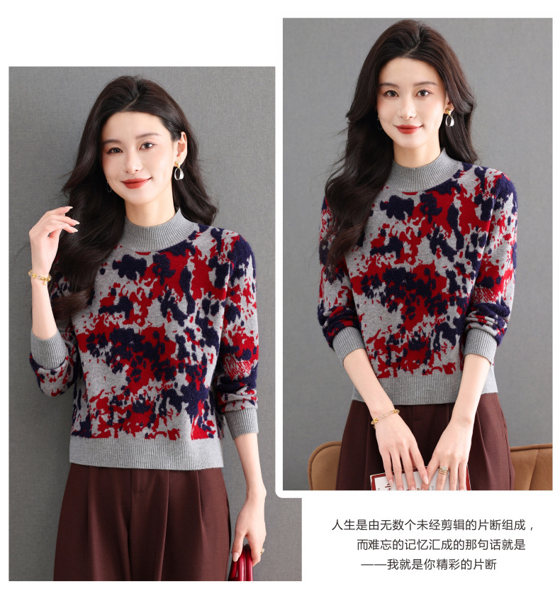 CC提花设计感毛衣女半高领套头百搭长袖针织衫秋冬打底衫保暖上衣