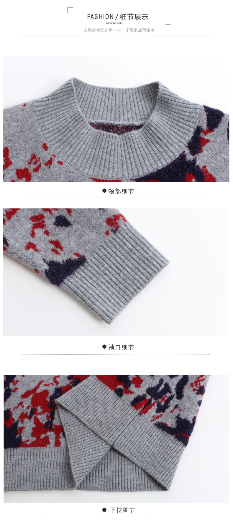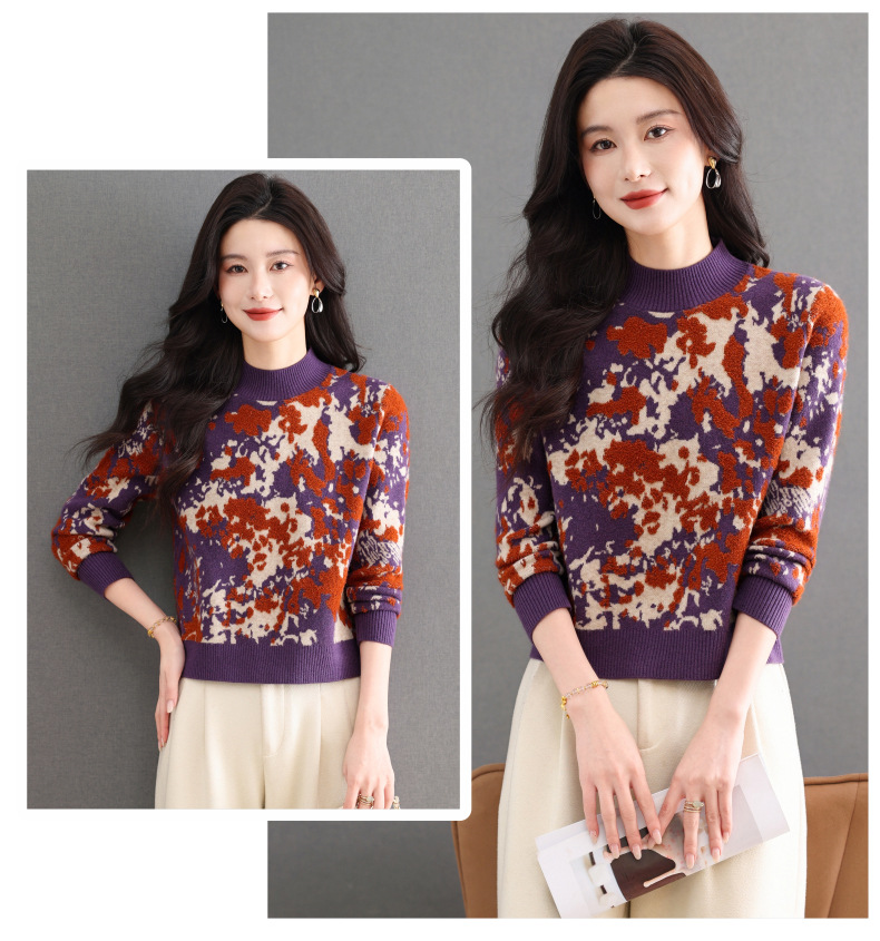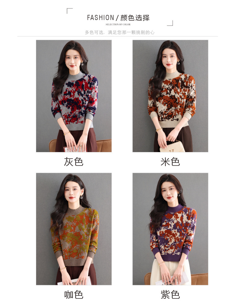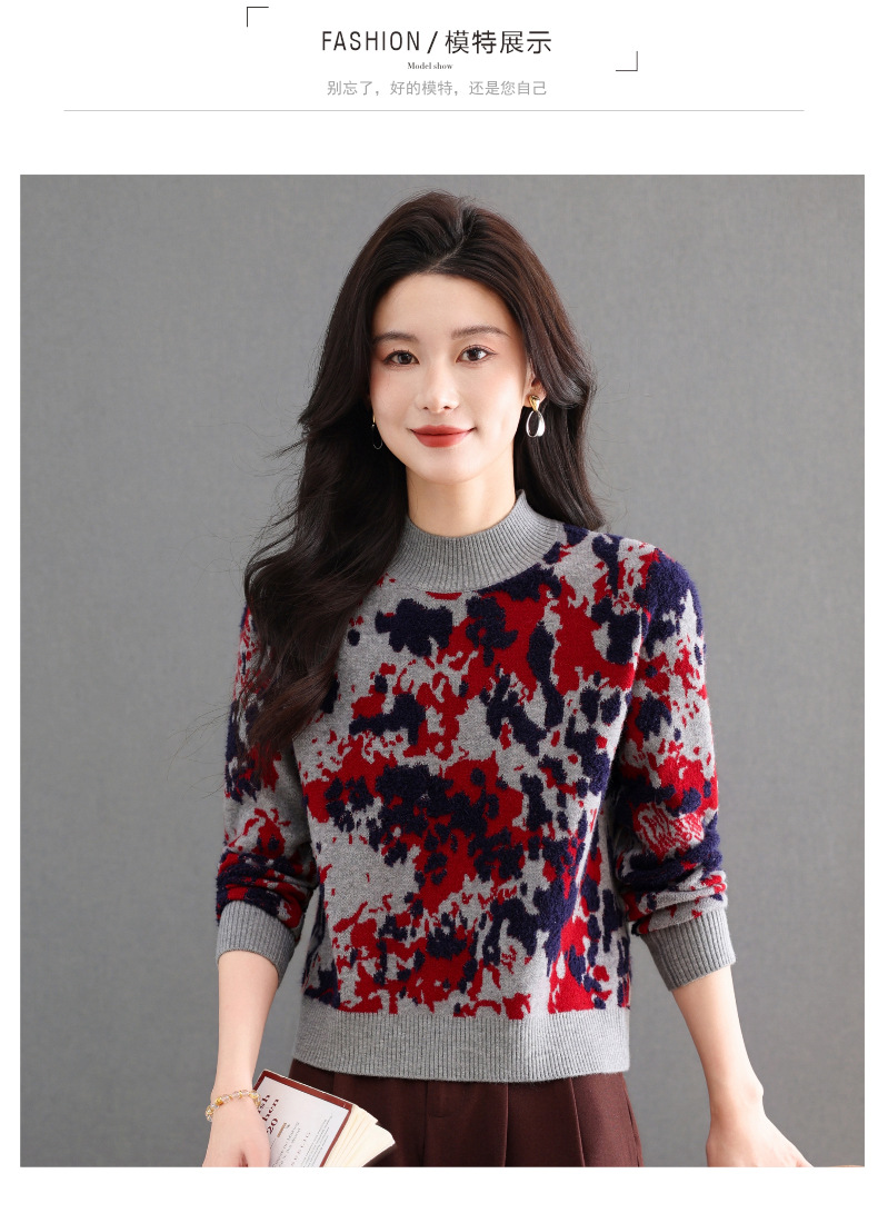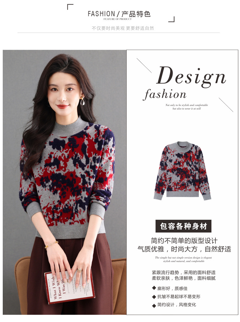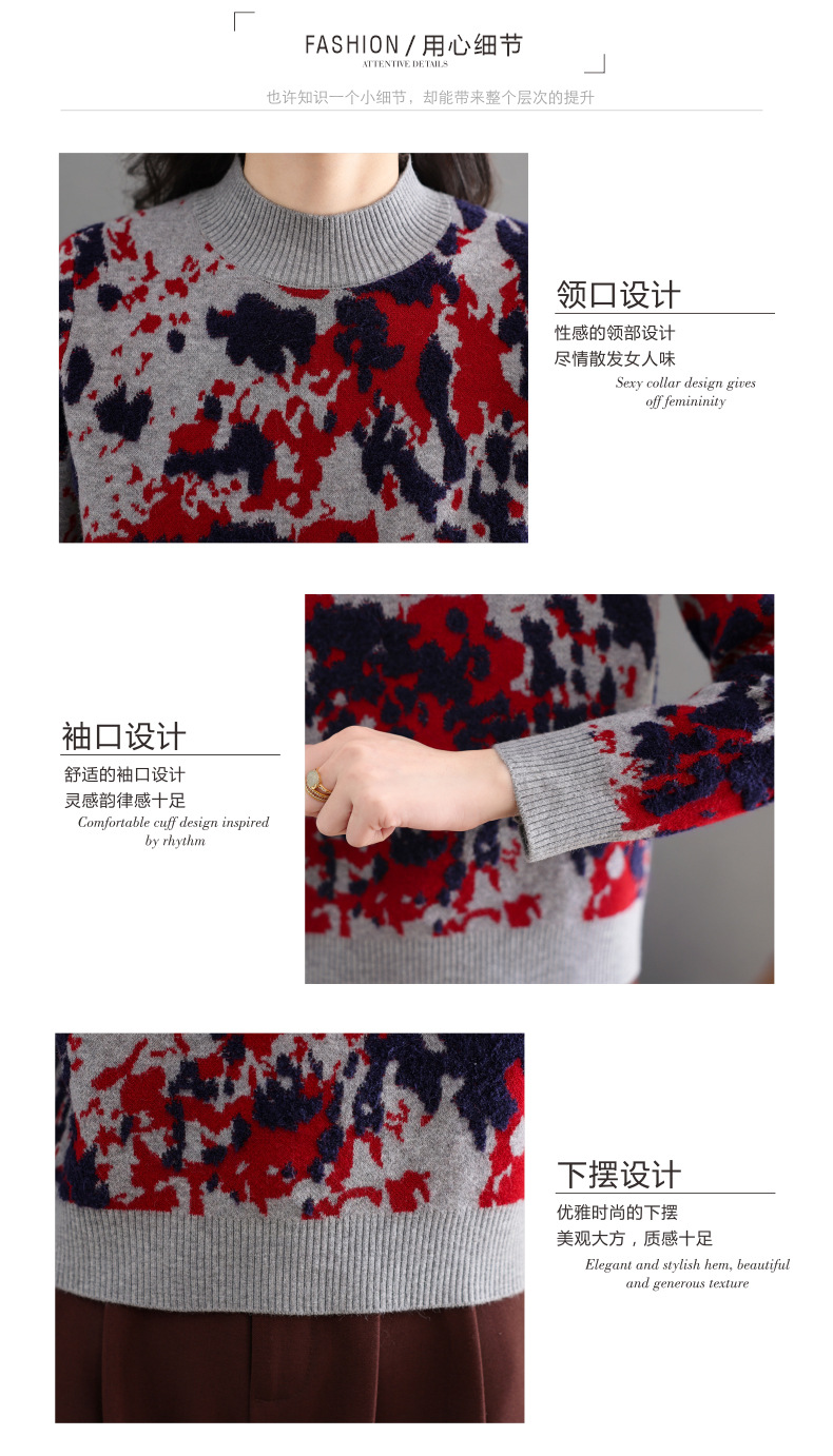 CC提花设计感毛衣女半高领套头百搭长袖针织衫秋冬打底衫保暖上衣
