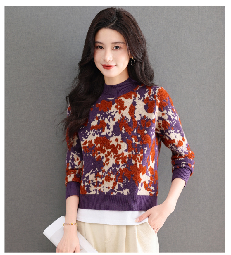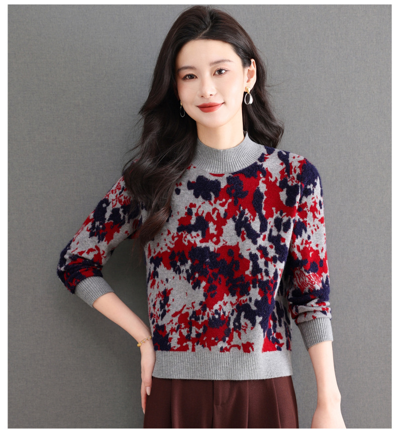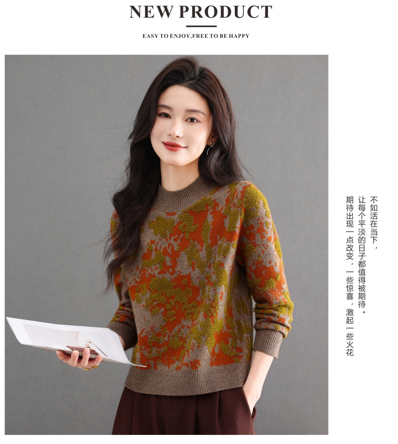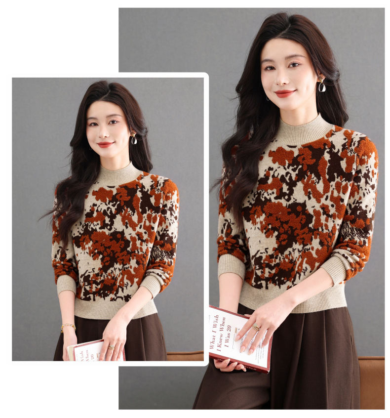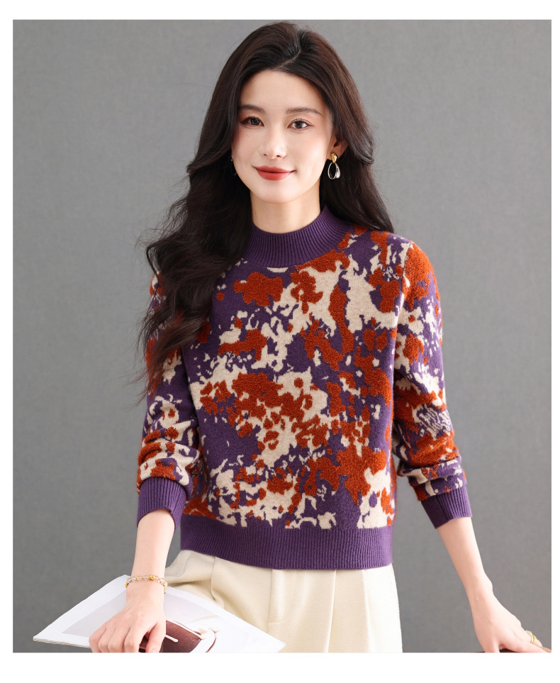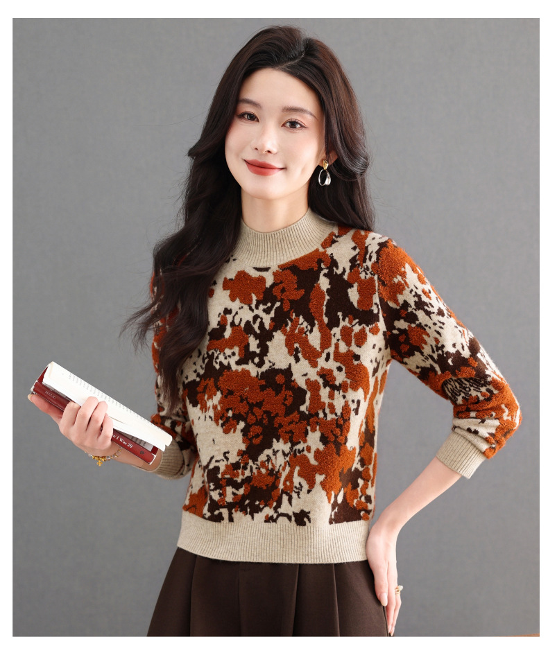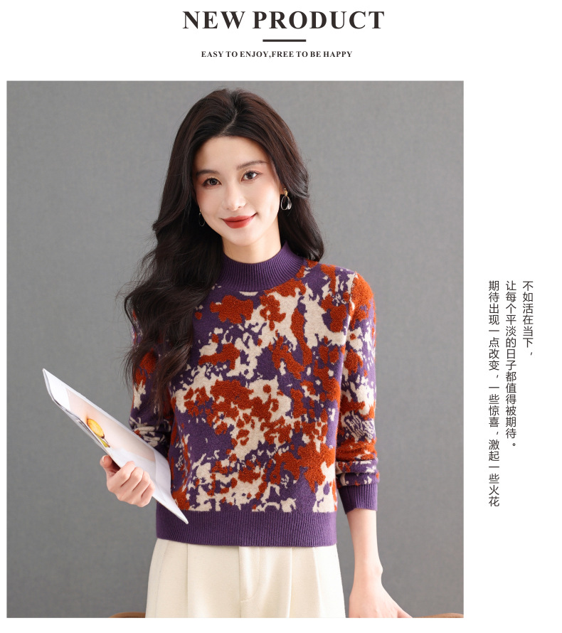 CC提花设计感毛衣女半高领套头百搭长袖针织衫秋冬打底衫保暖上衣
