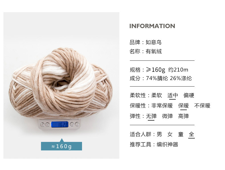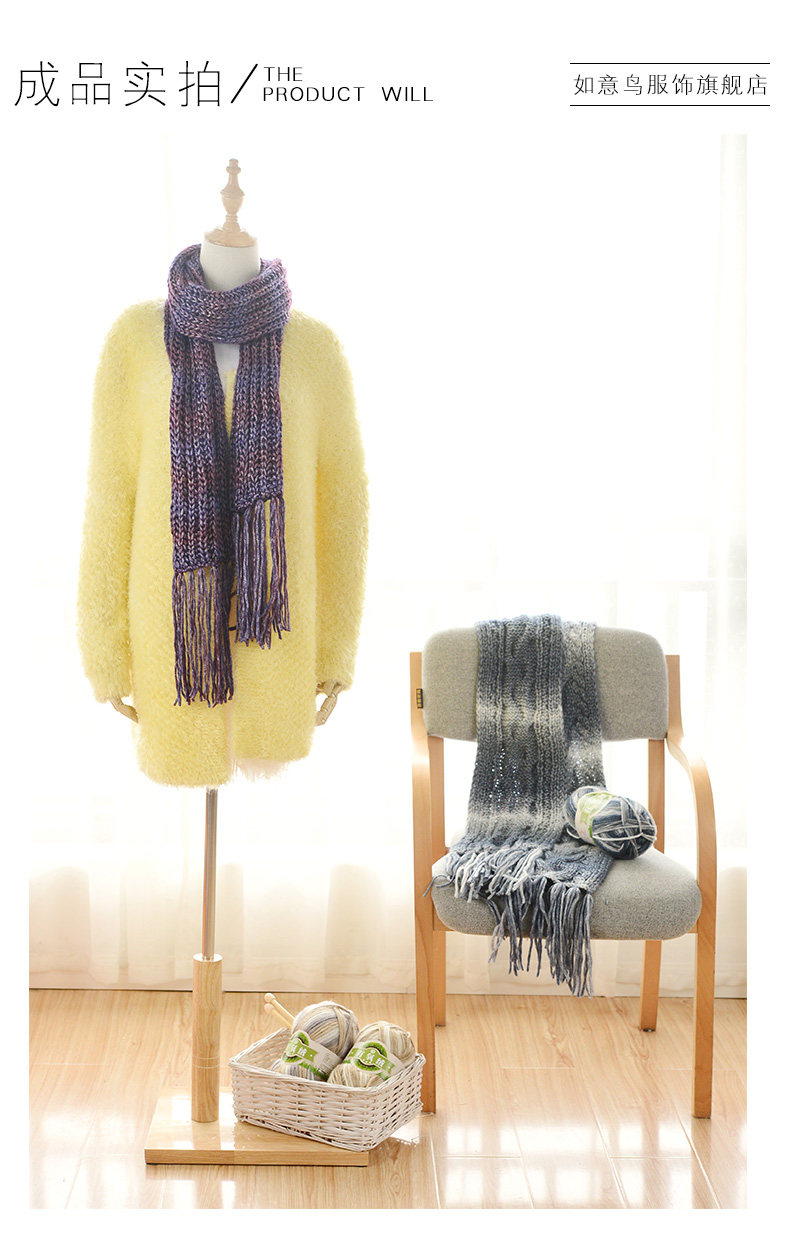 如意鸟 有氧绒围巾线粗毛线 男女棒针编织器织围巾