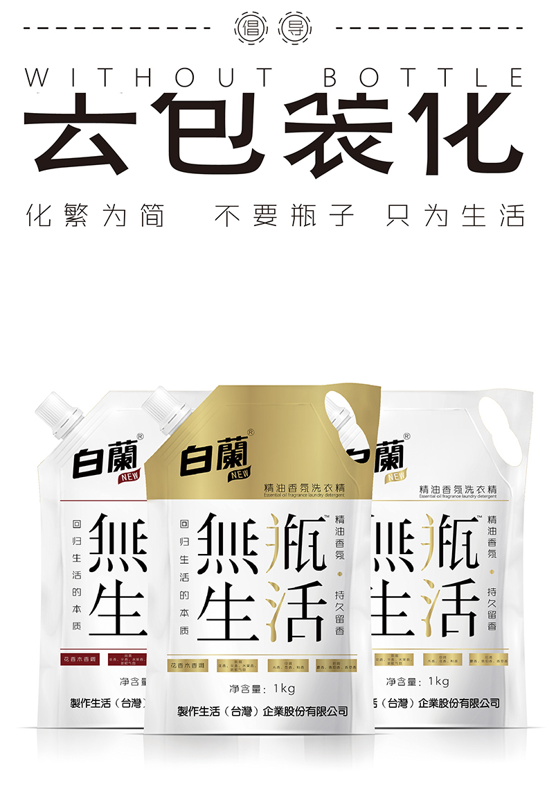 白蘭无瓶生活精油香氛洗衣精/1份(2kg*3袋)限用日期:28年8月