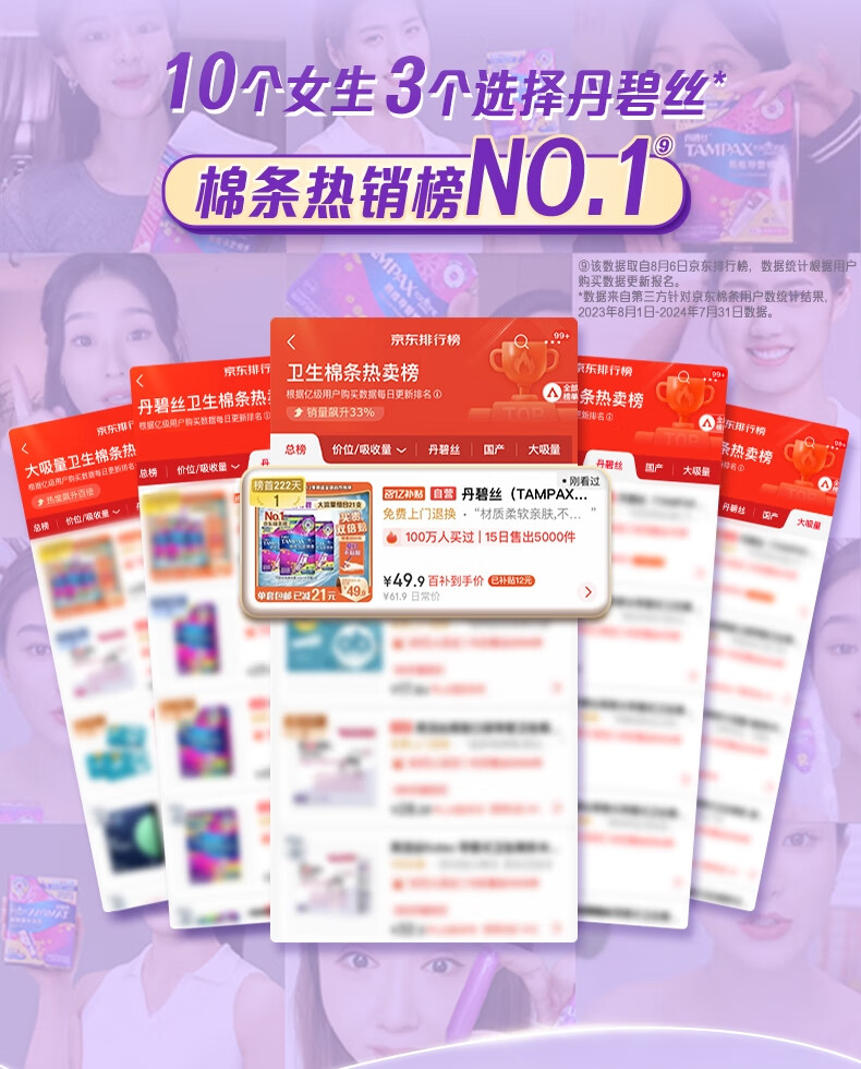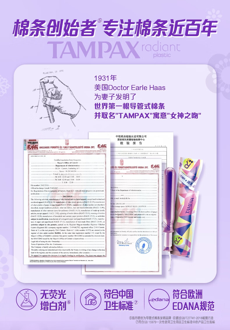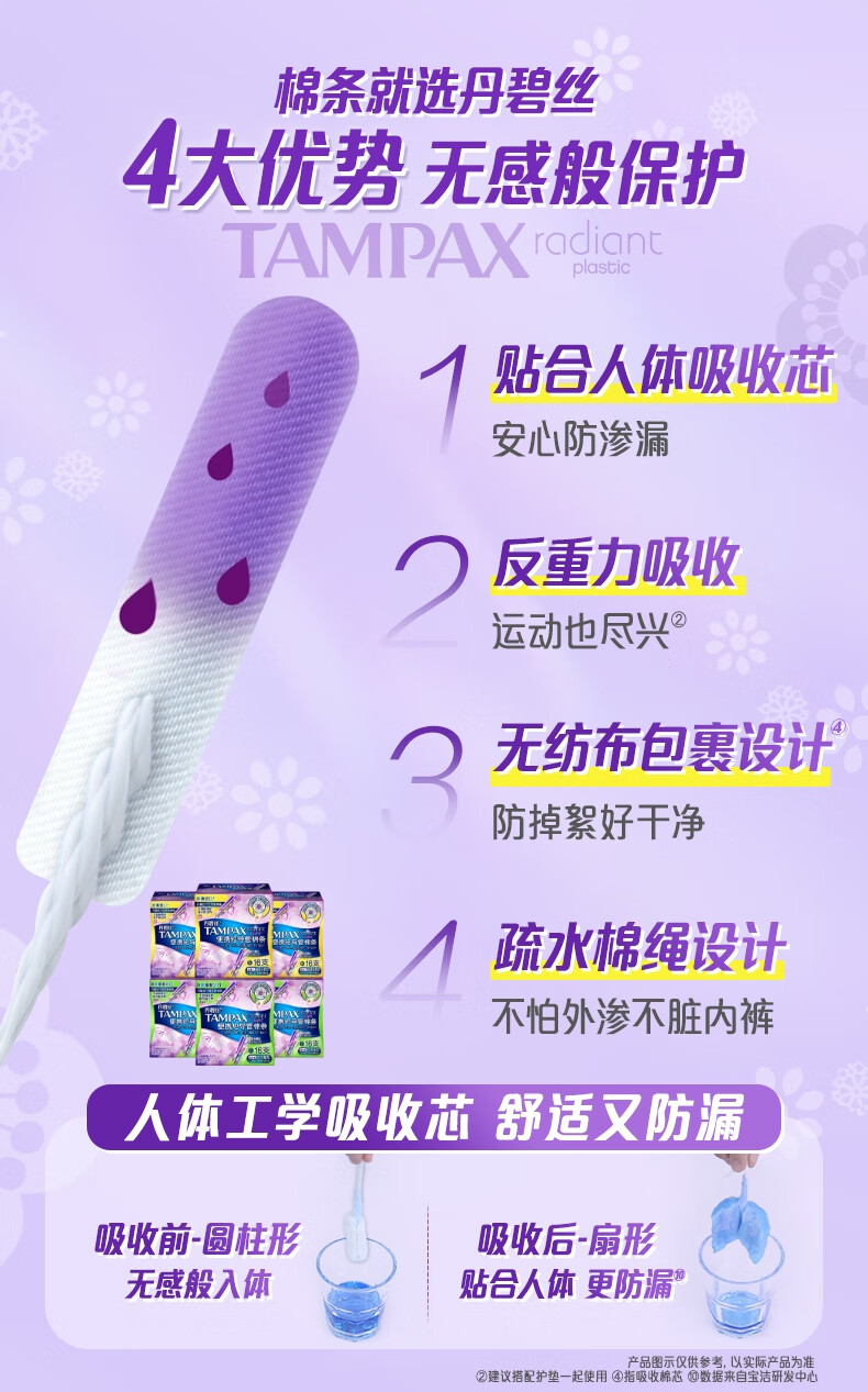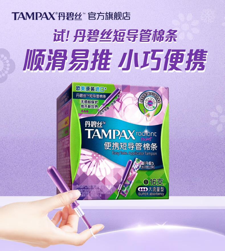 丹碧丝进口易推便携短导管式卫生棉条大流量16支装新手试用内置式卫生巾