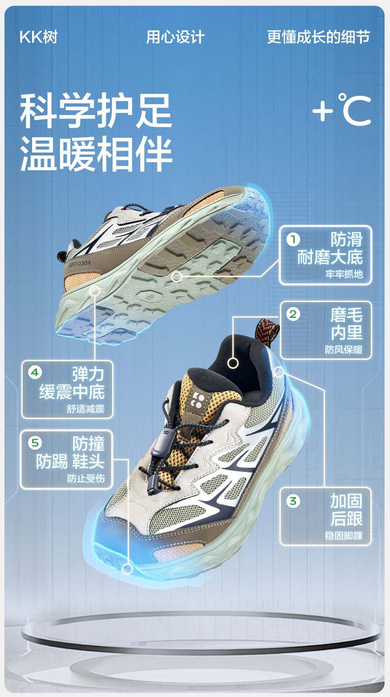 KK树儿童运动鞋男童女孩2025新款秋冬加厚登山鞋宝宝户外防滑耐磨北极光户外运动鞋