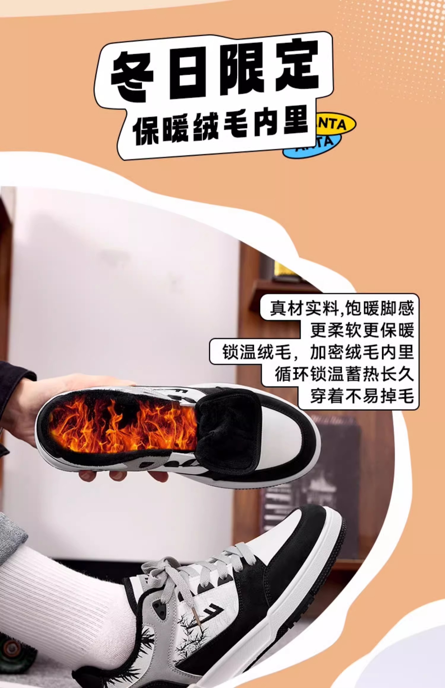 回力女鞋小白鞋2024冬季加绒小众百搭鞋子学生保暖情侣板鞋男鞋女