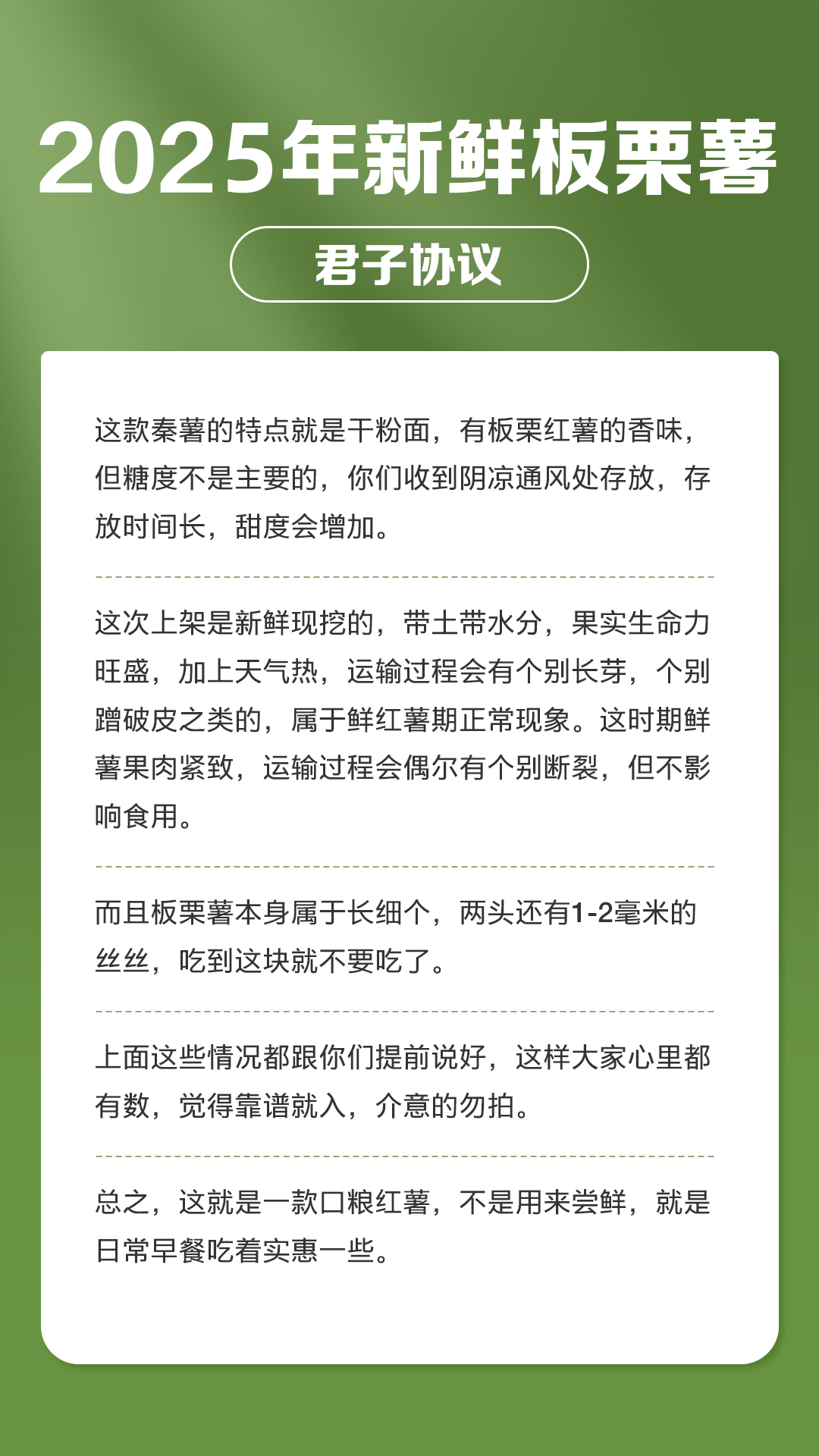 板栗薯这个品种会有少量纤维,但是吃起来几乎感觉不到,两头会有些,优点是粉糯香甜。现在天气比较热,可能收到被捂或者天热出现发芽的情况,红薯发芽是不影响食用的,收到后阴凉放着,不要捂或者湿着保存。